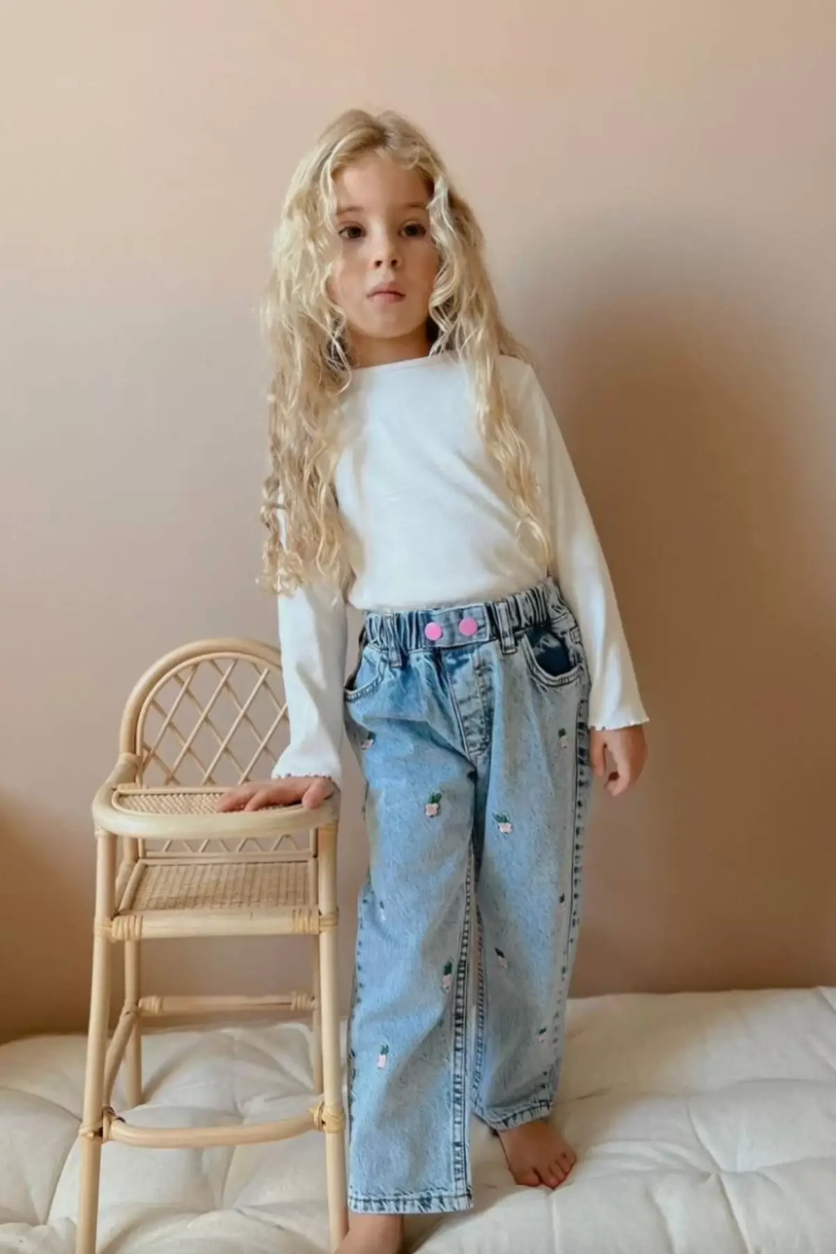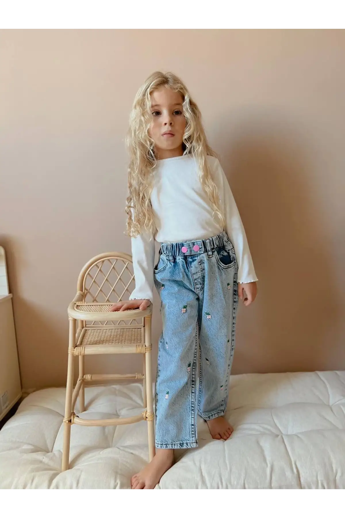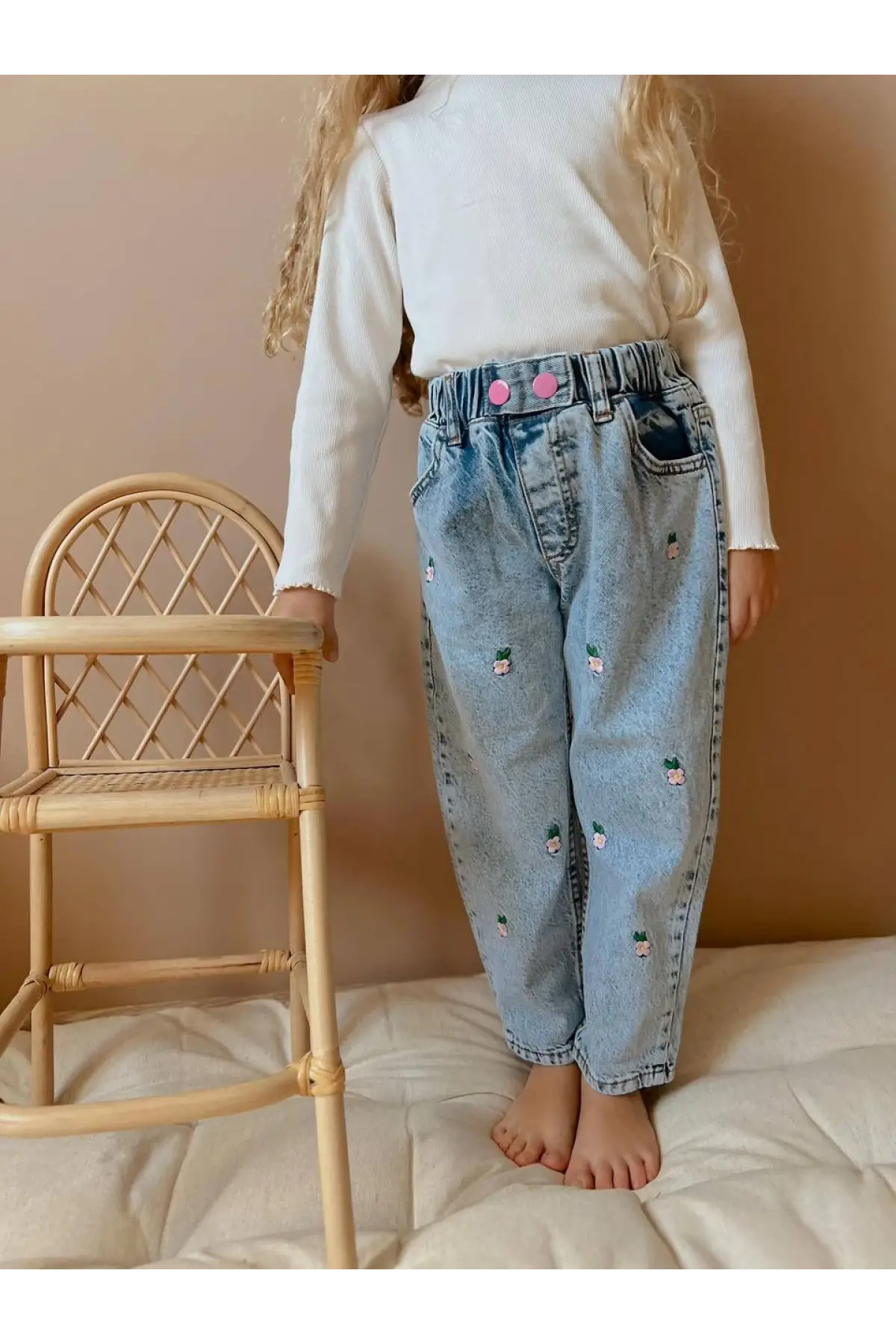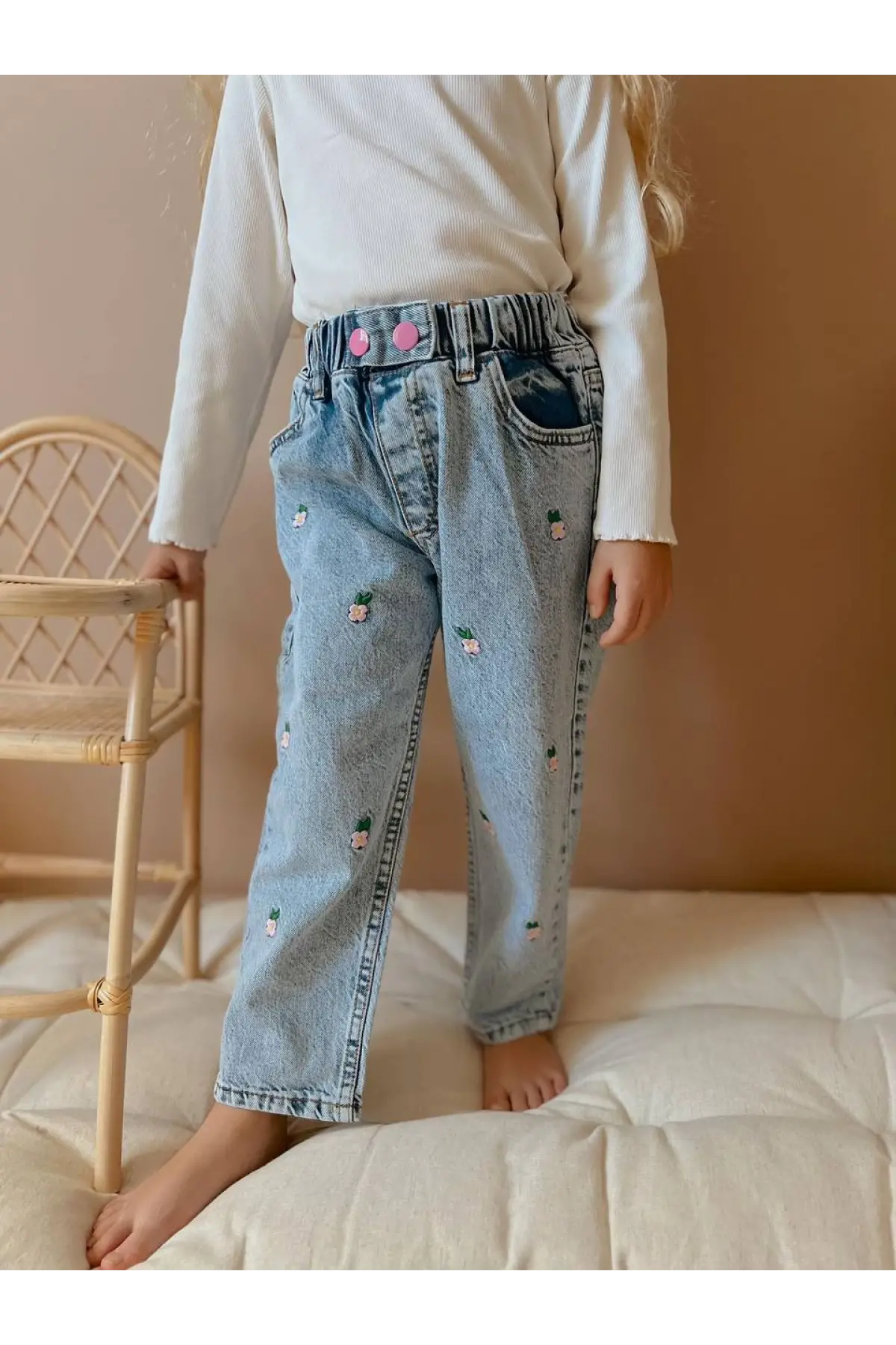 Kız Çocuk İşleme Detaylı Kot Pantolon