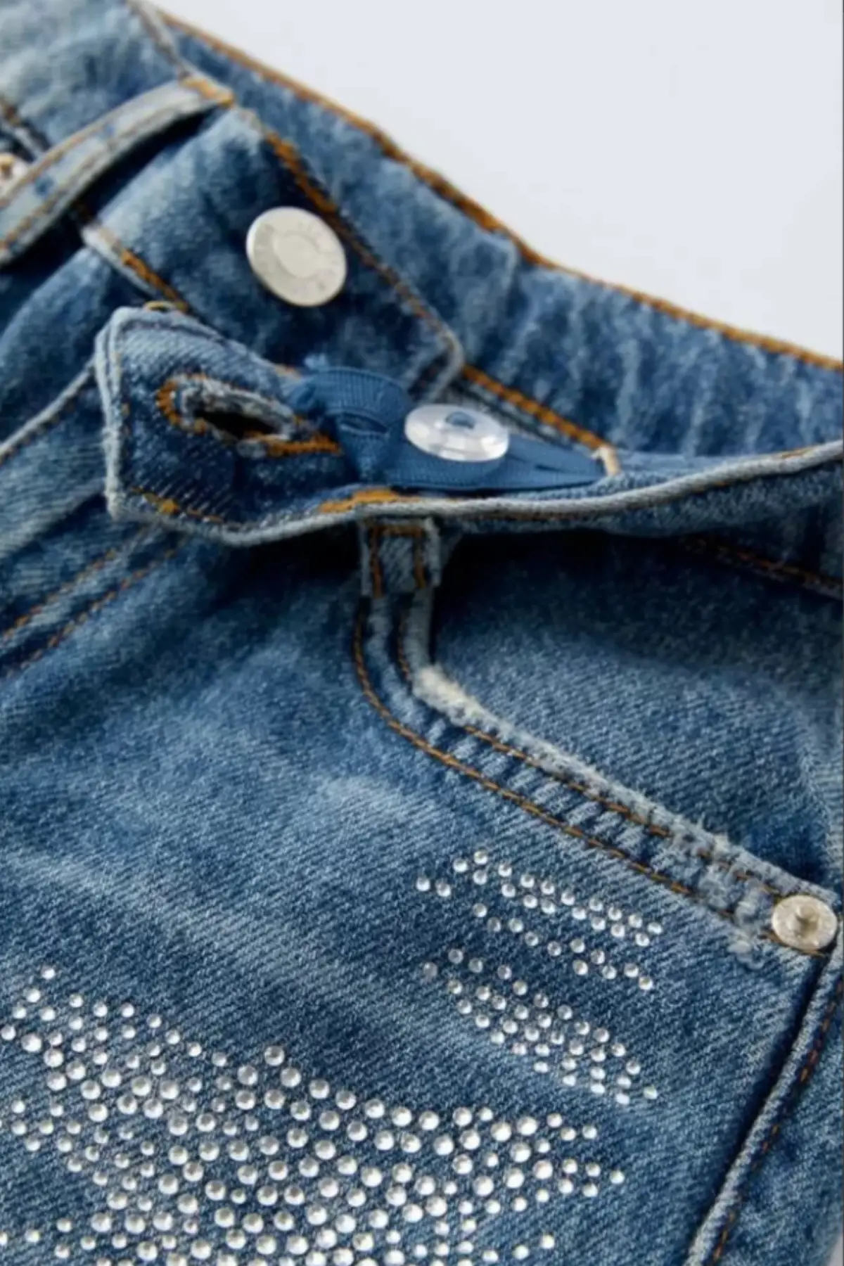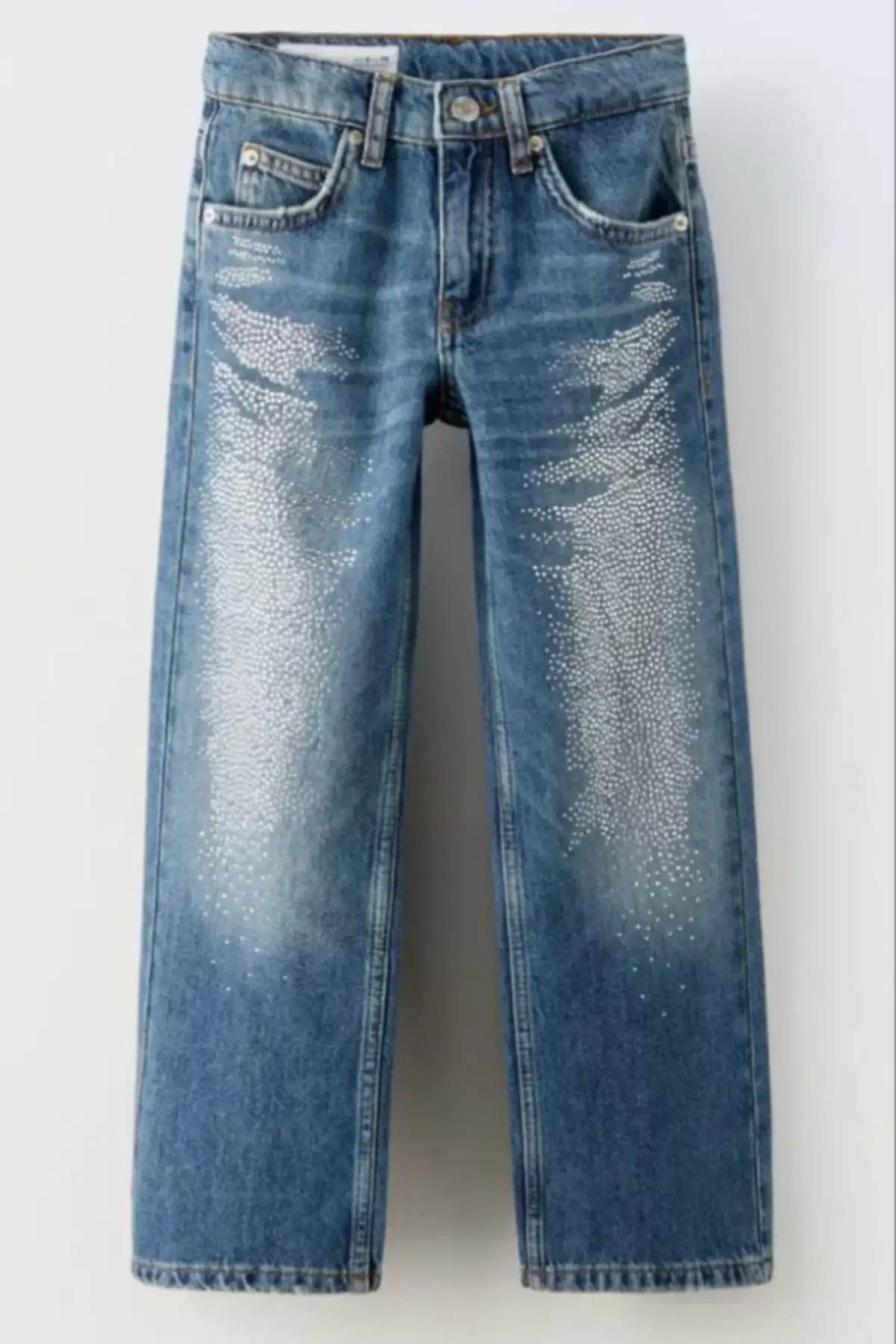Kız Çocuk Taş İşlemeli Kot Pantolon