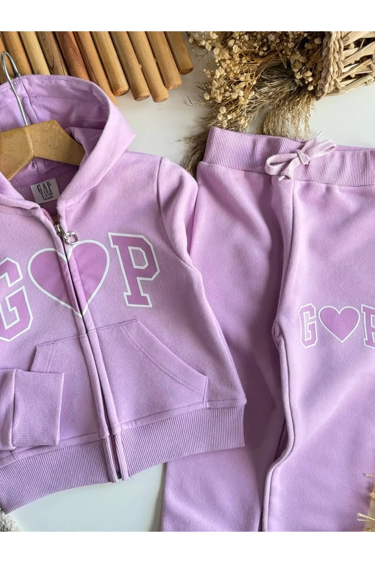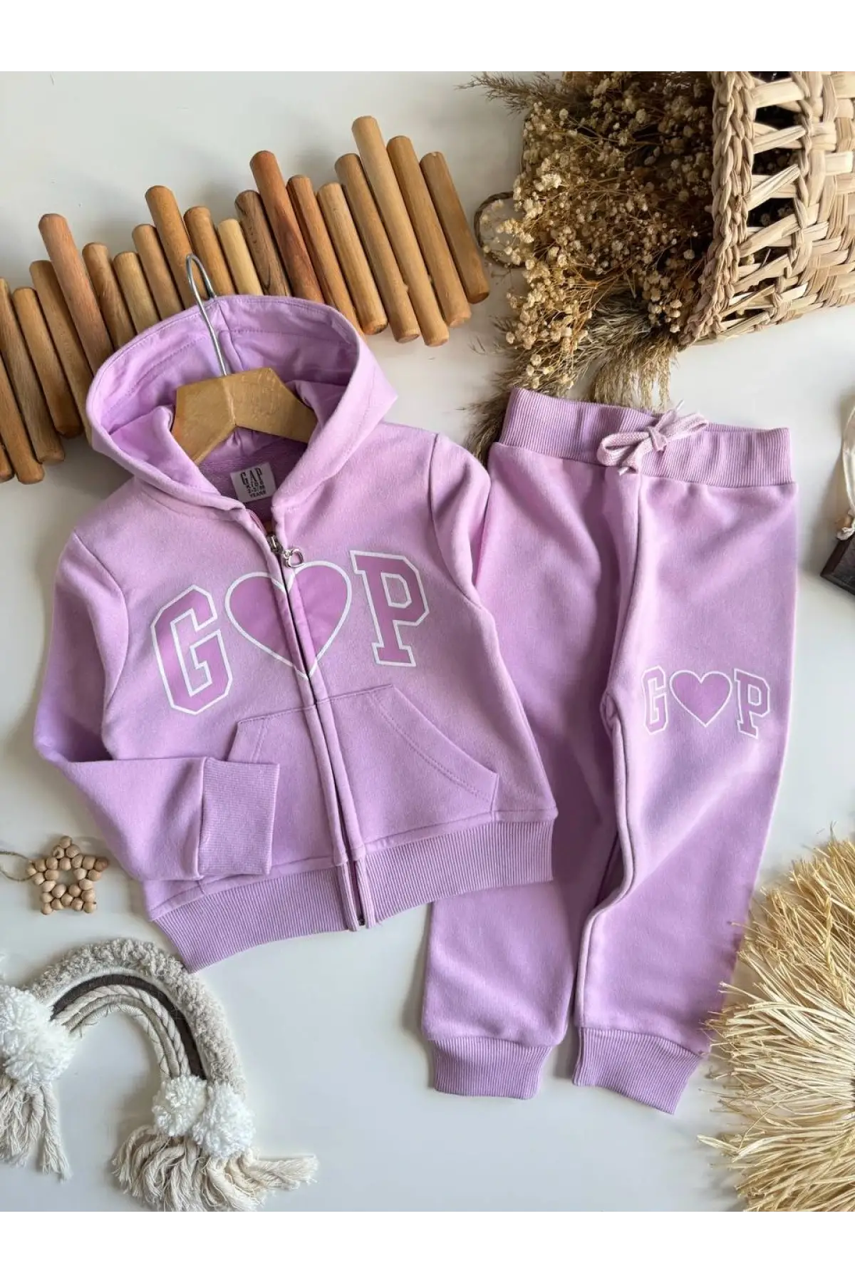 Kız Çocuk Kapüşonlu Kalp Detaylı Lila Alt Üst Takım