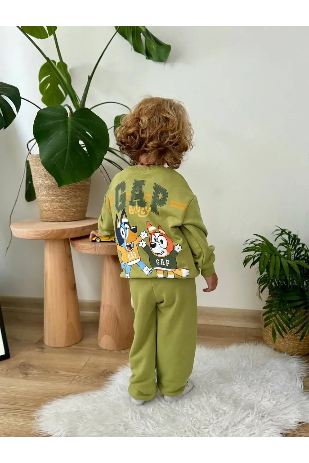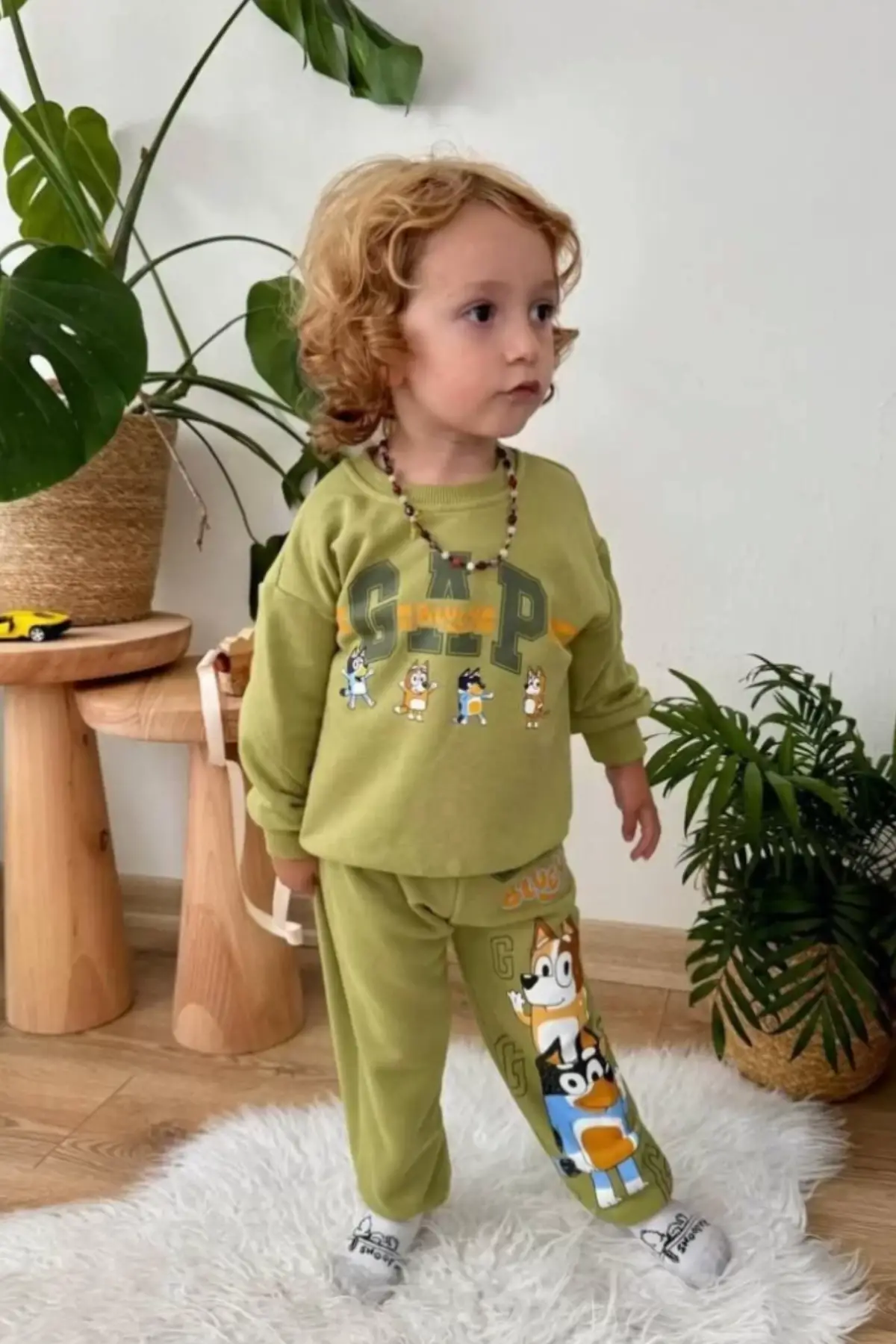 Erkek Çocuk Bluey Baskılı Yeşil Takım