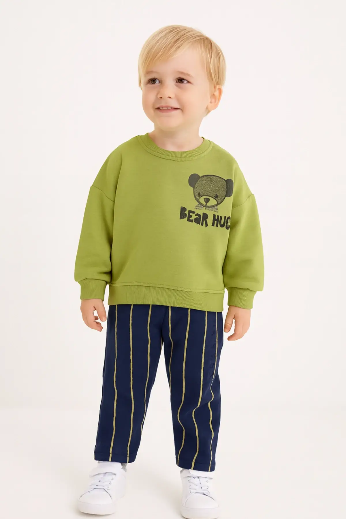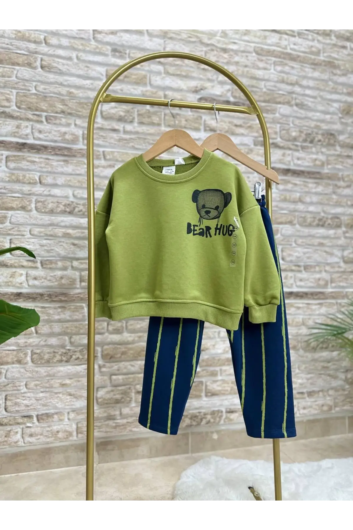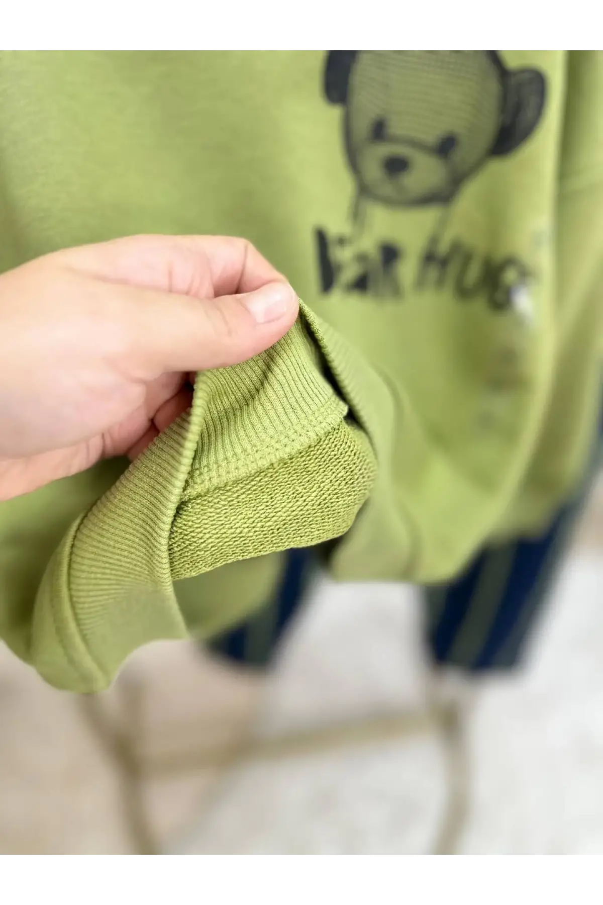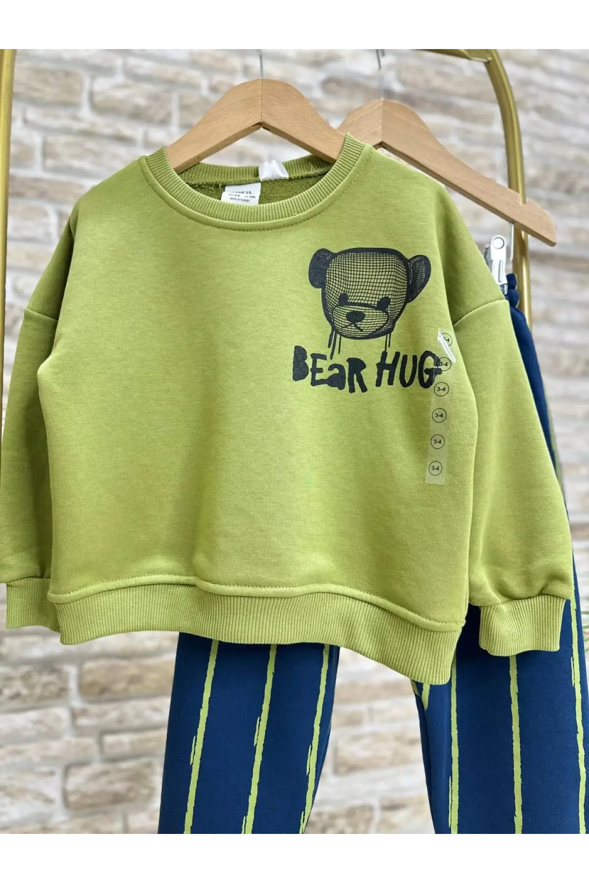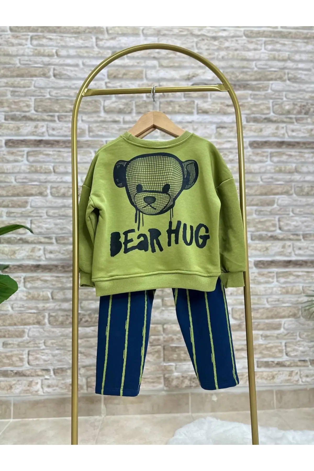 Erkek Çocuk Bear Hug Baskılı %100 Pamuk Alt Üst Takım