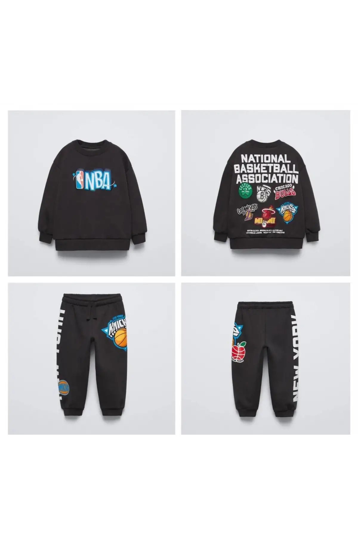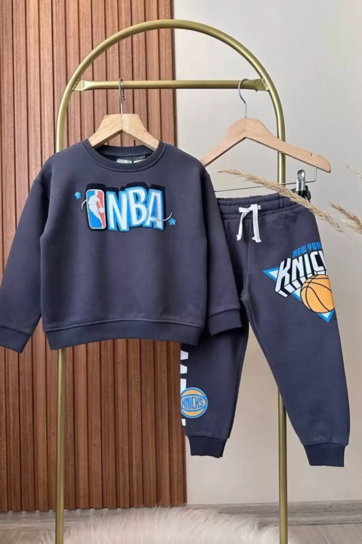 Erkek Çocuk NBA Knicks Baskılı %100 Pamuk Antrasit Takım