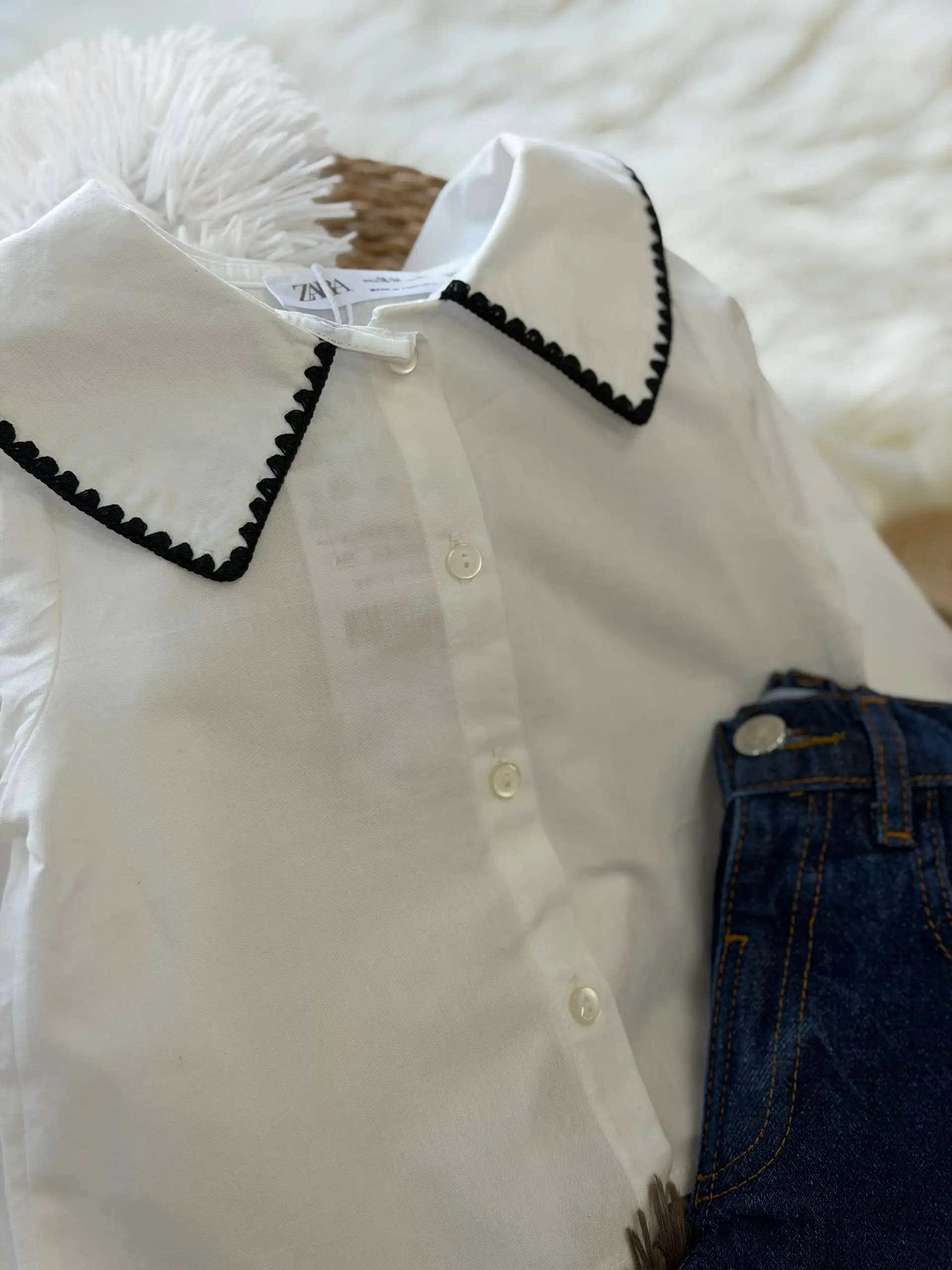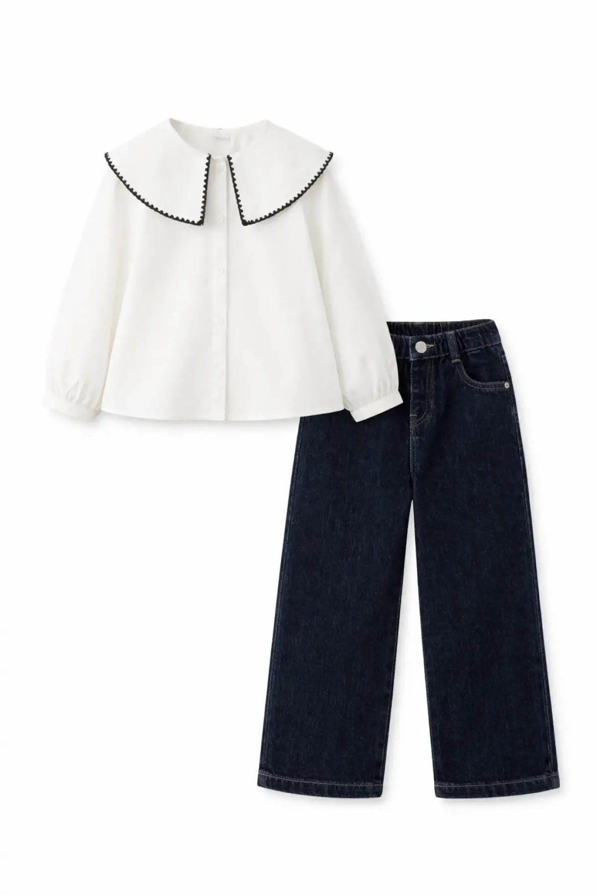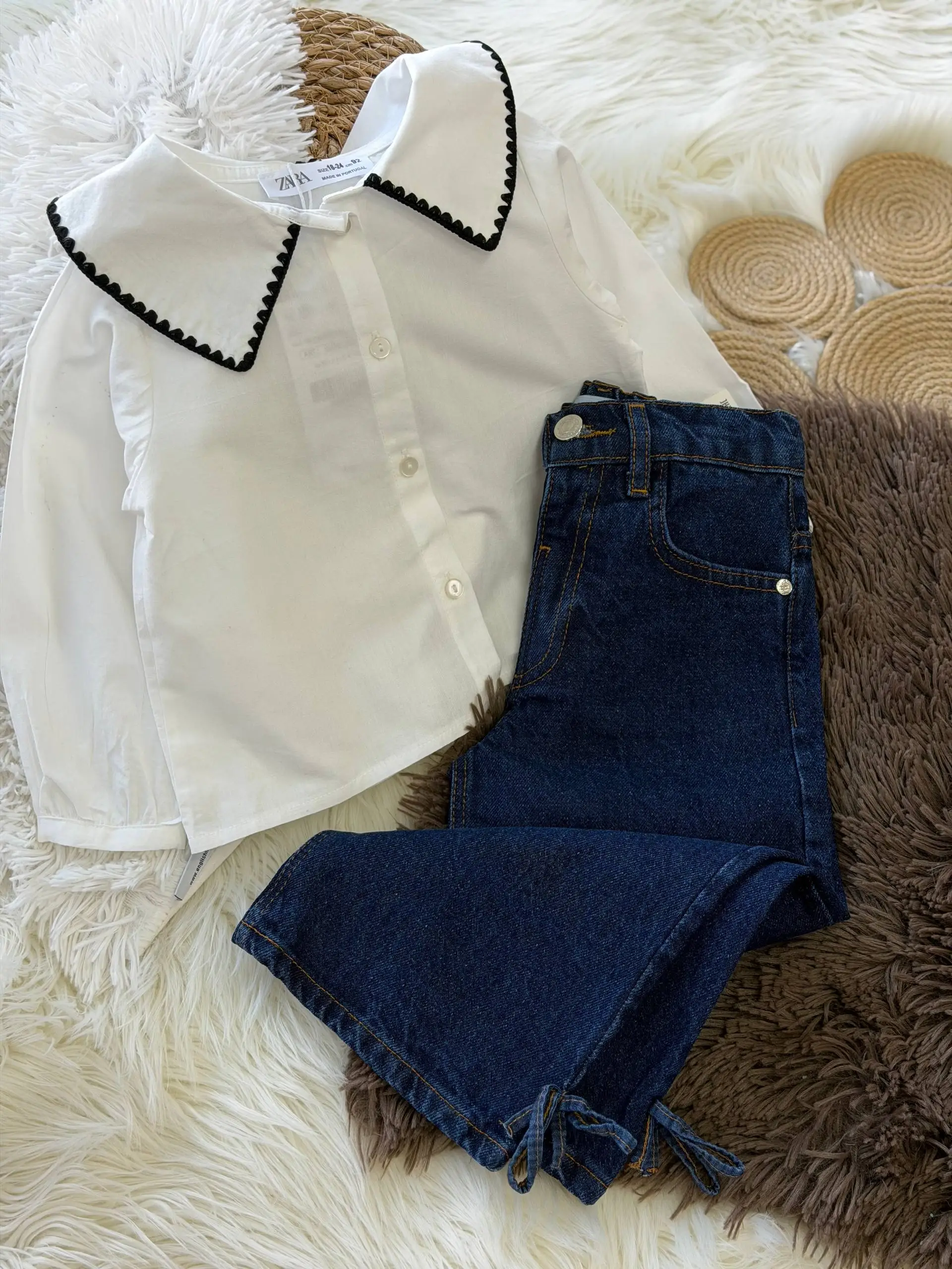Kız Çocuk Bebe Yaka Gömlek Kot Takım