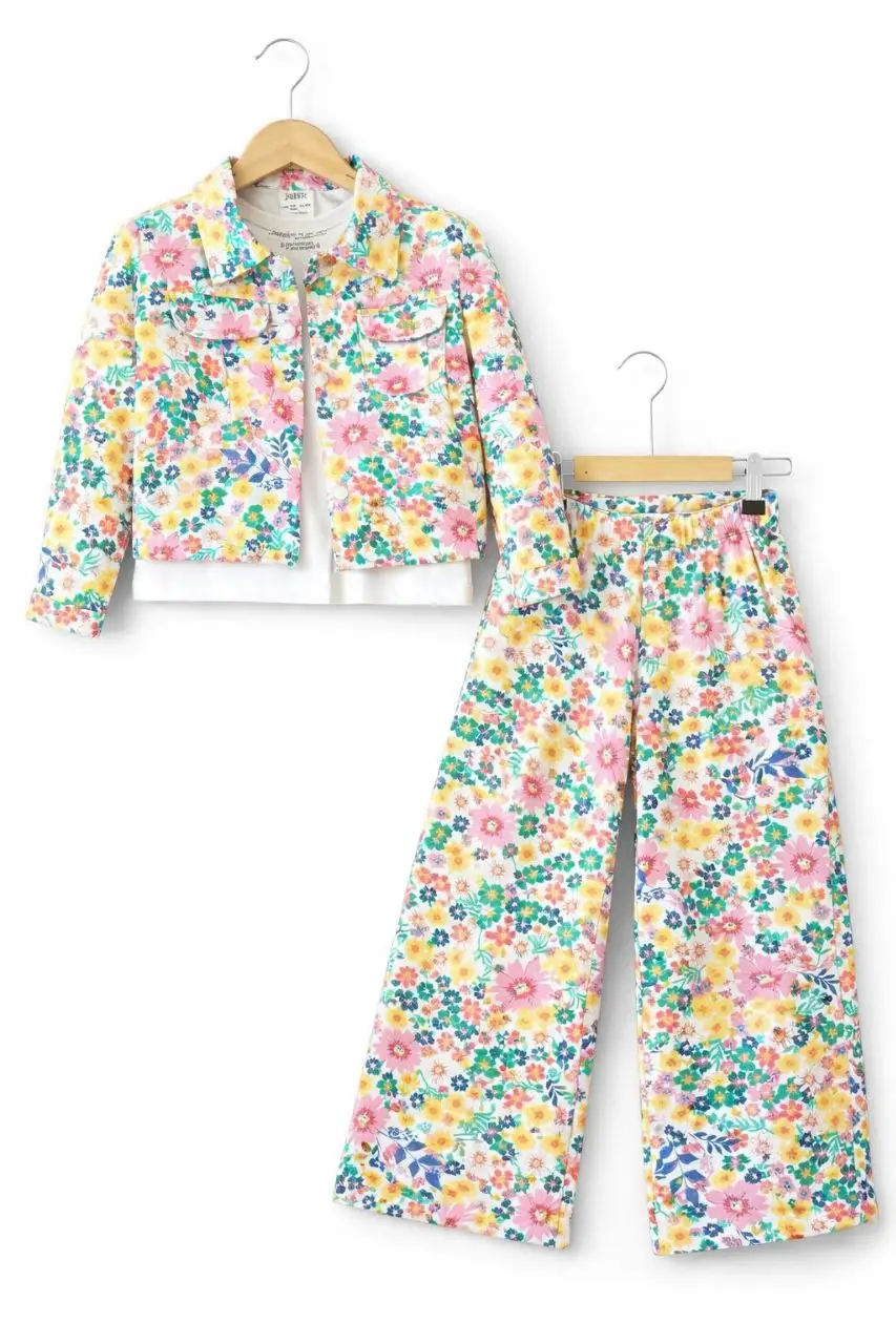 Kız Çocuk Çiçek Desenli Pantolon 3'lü Takım