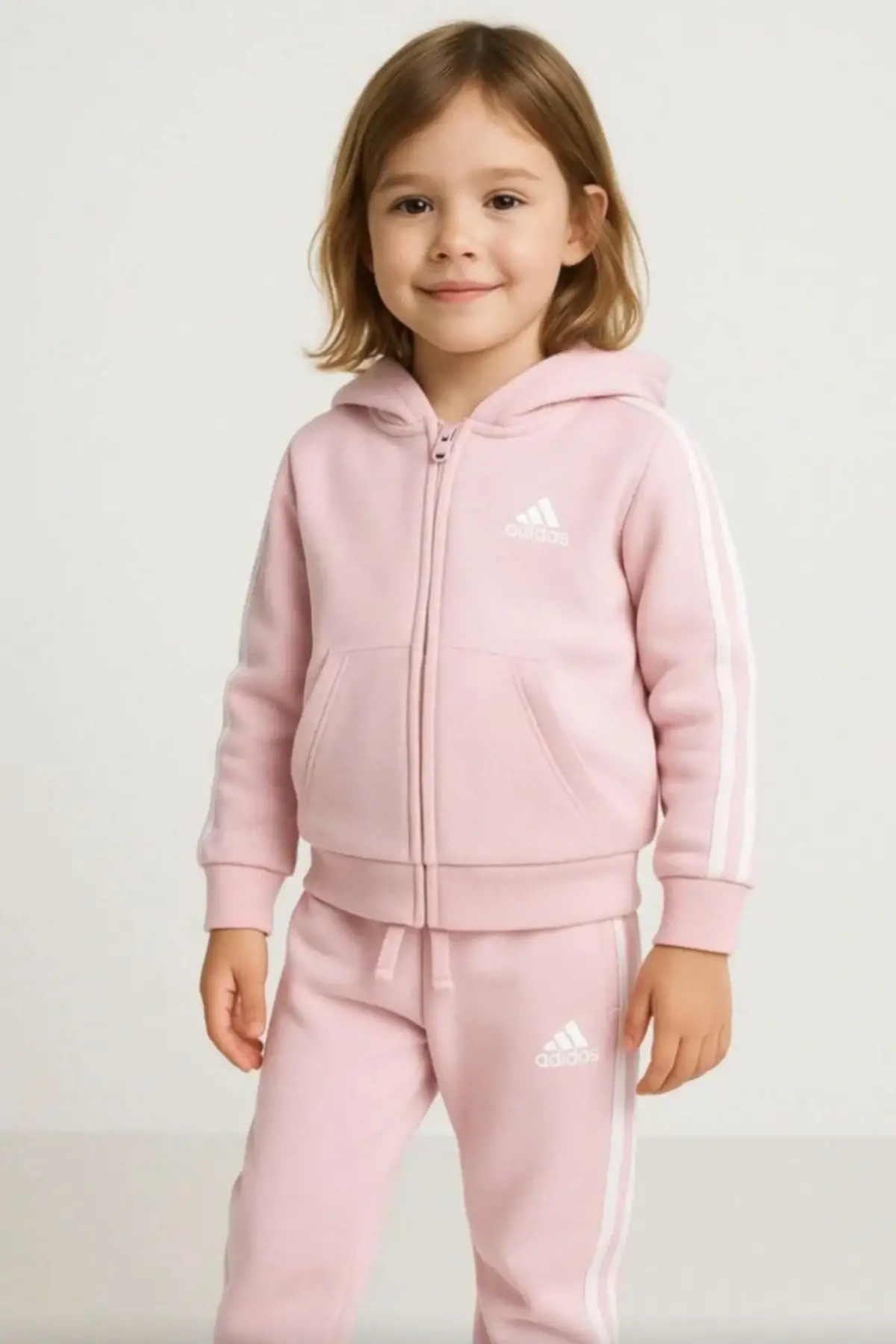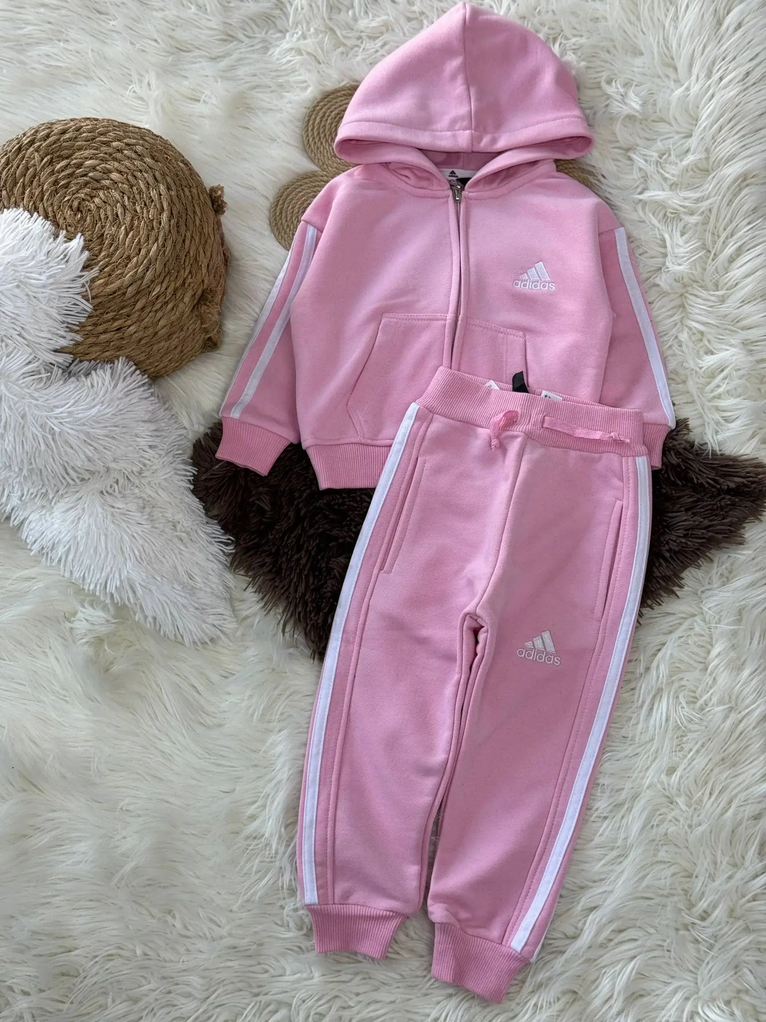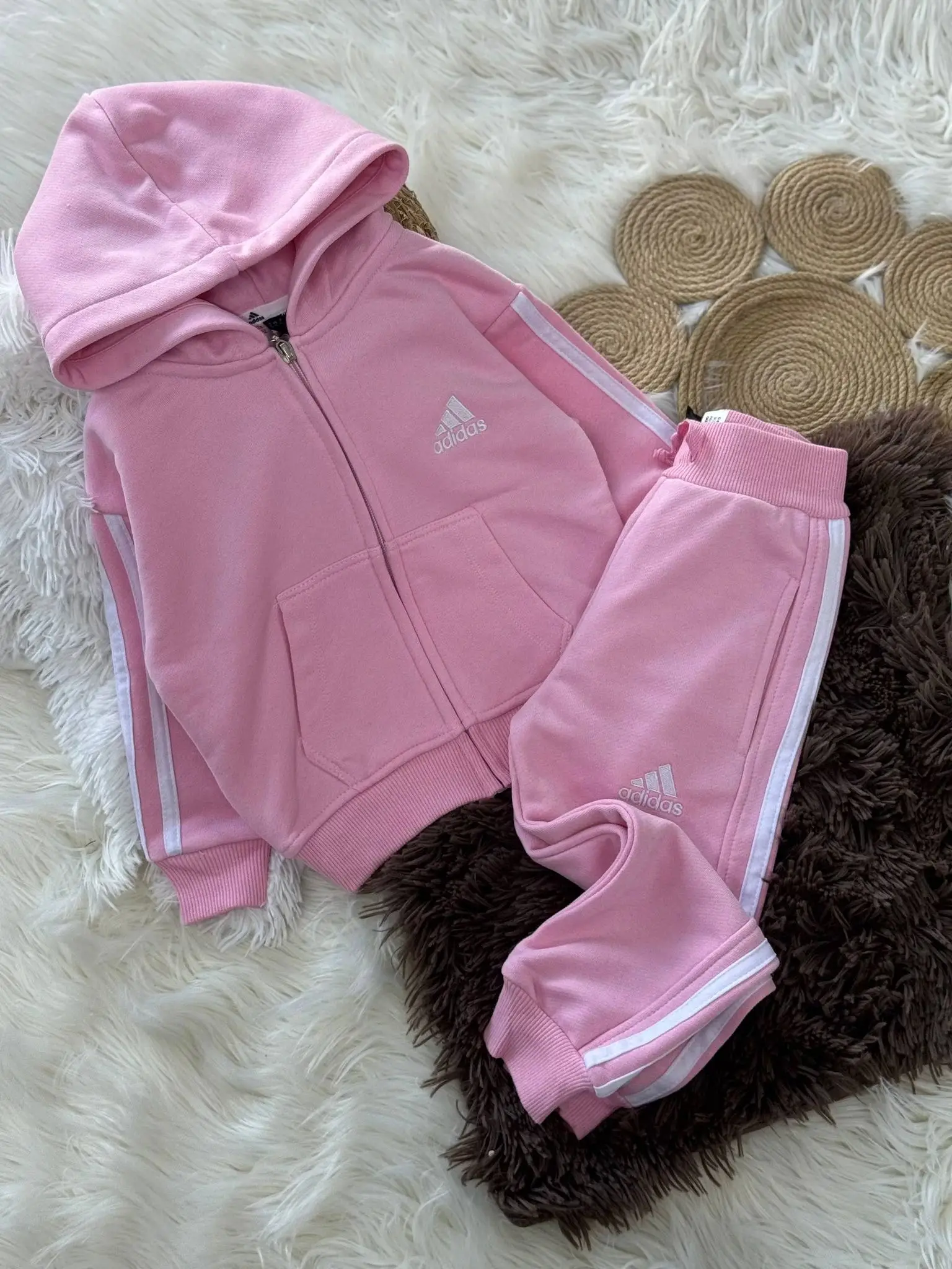 Kız Çocuk Fermuarlı Çizgili Pembe Takım