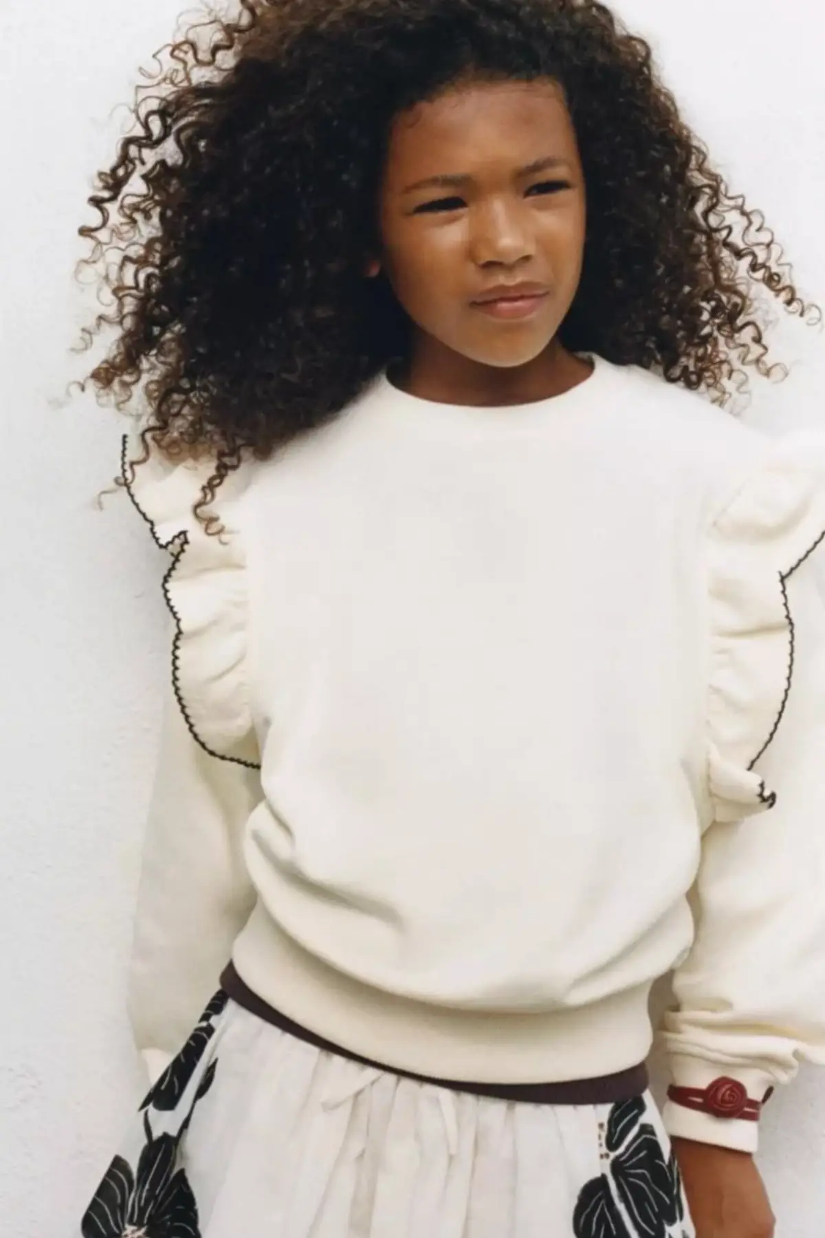 Kız Çocuk Fırfır Detaylı Krem Sweatshirt