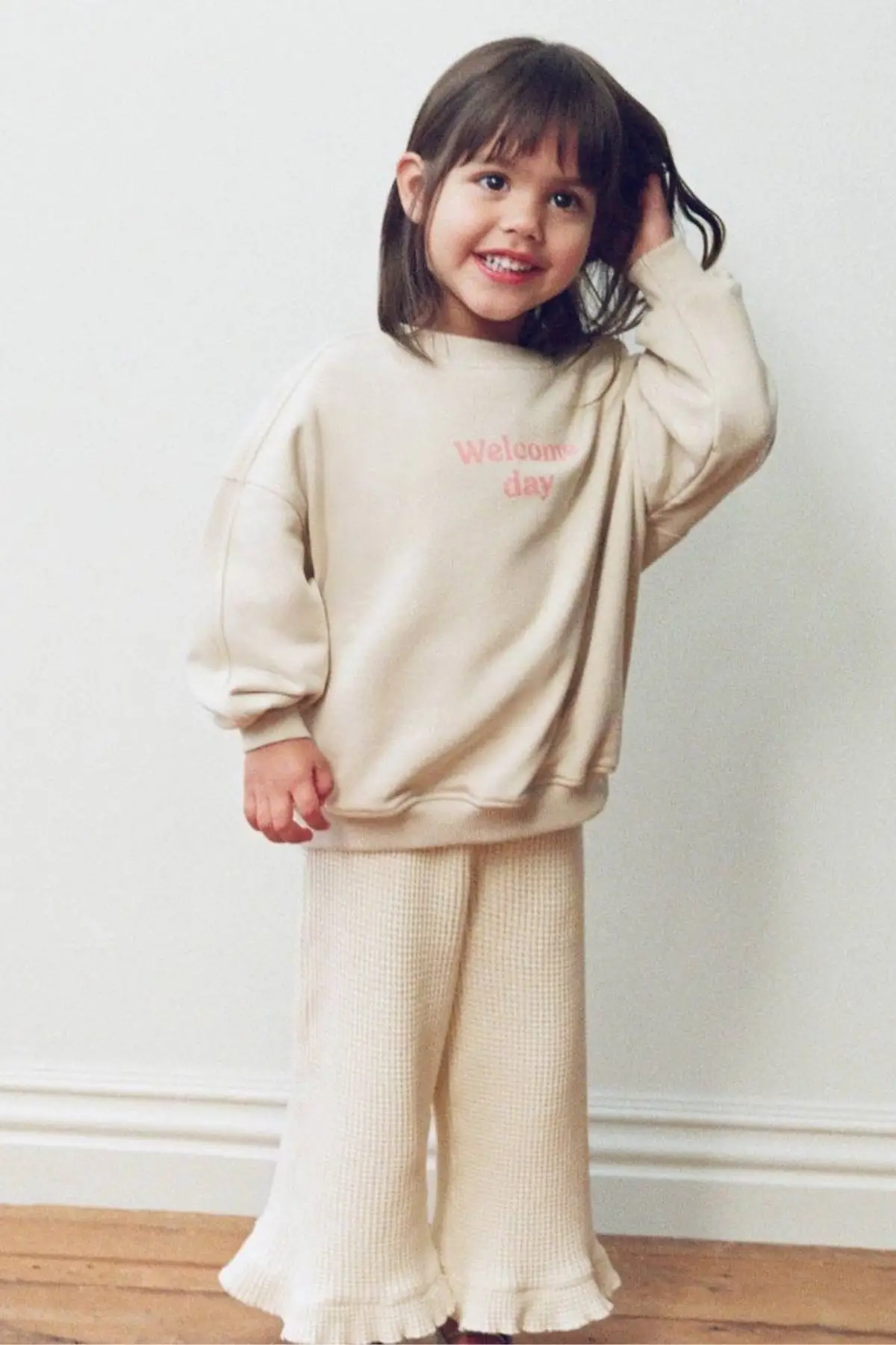 Kız Çocuk Fitilli Pantolon Sweatshirt %100 Pamuk Alt Üst Takım
