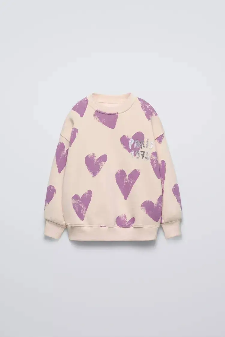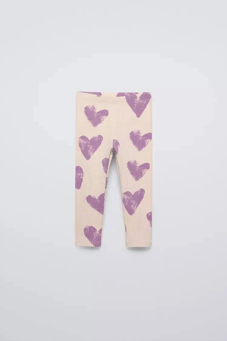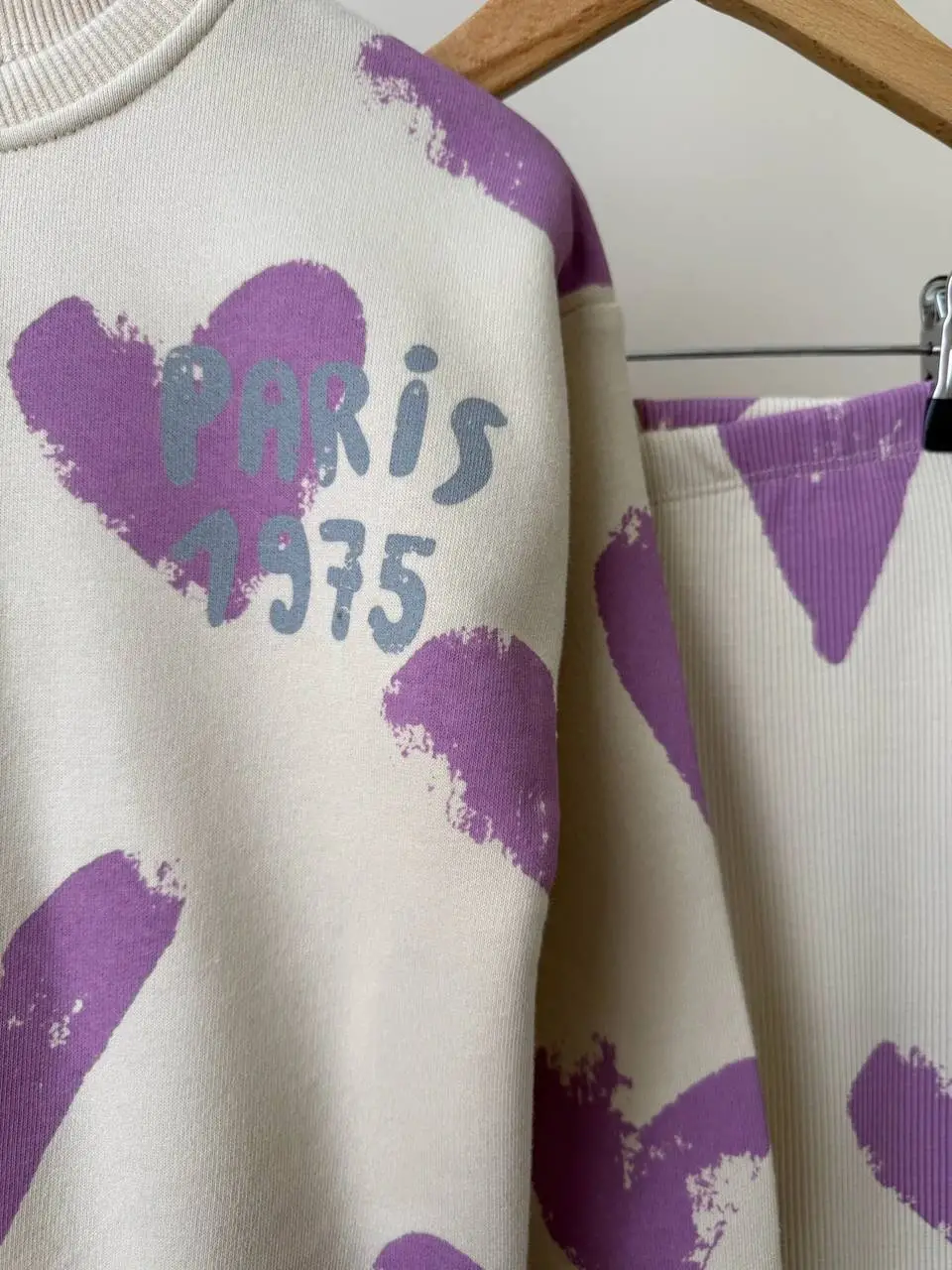 Kız Çocuk Kalp Baskılı %100 Pamuk Mor Taytlı Takım