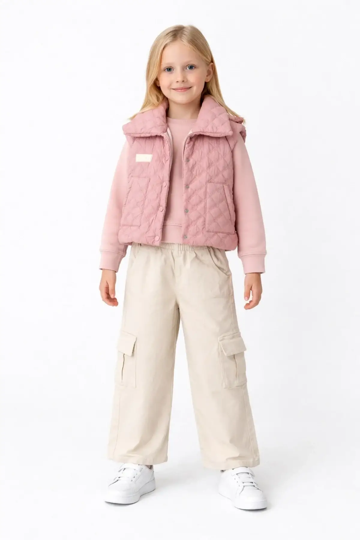 Kız Çocuk Kapitone Yelekli 3'lü Takım
