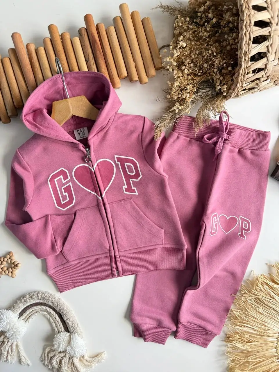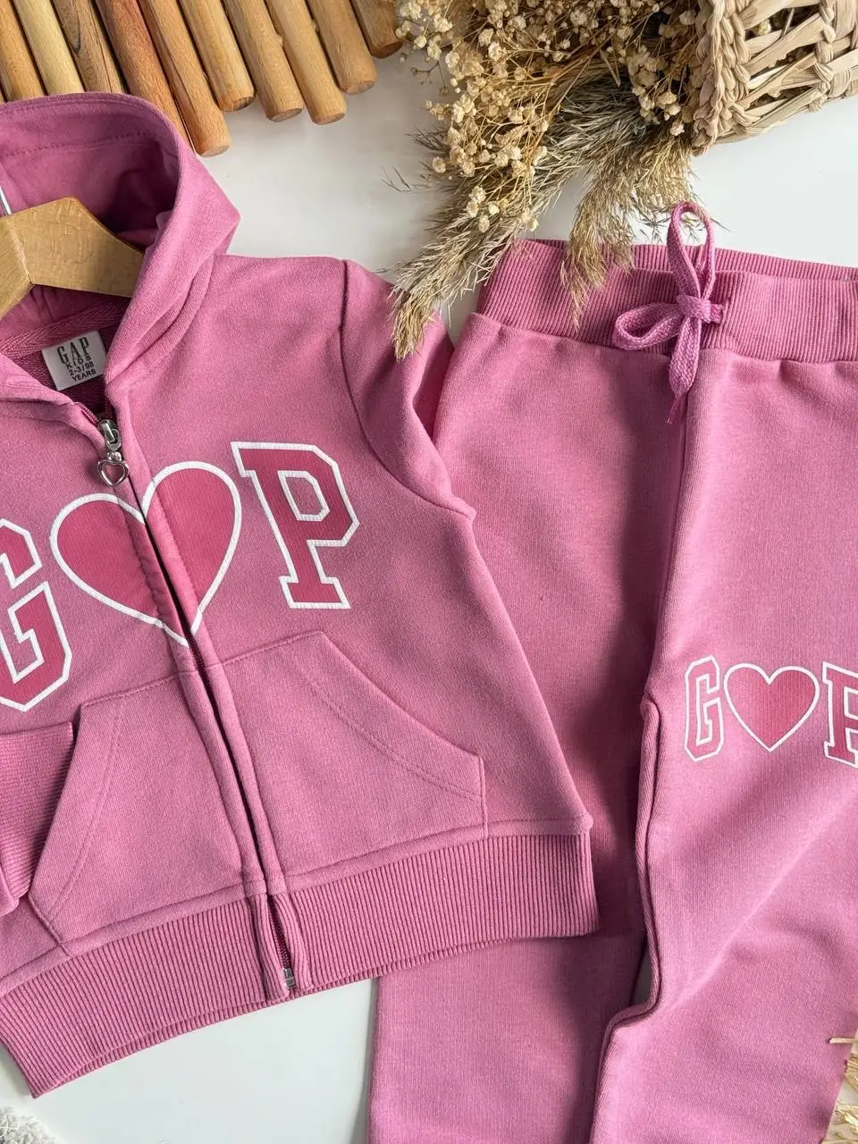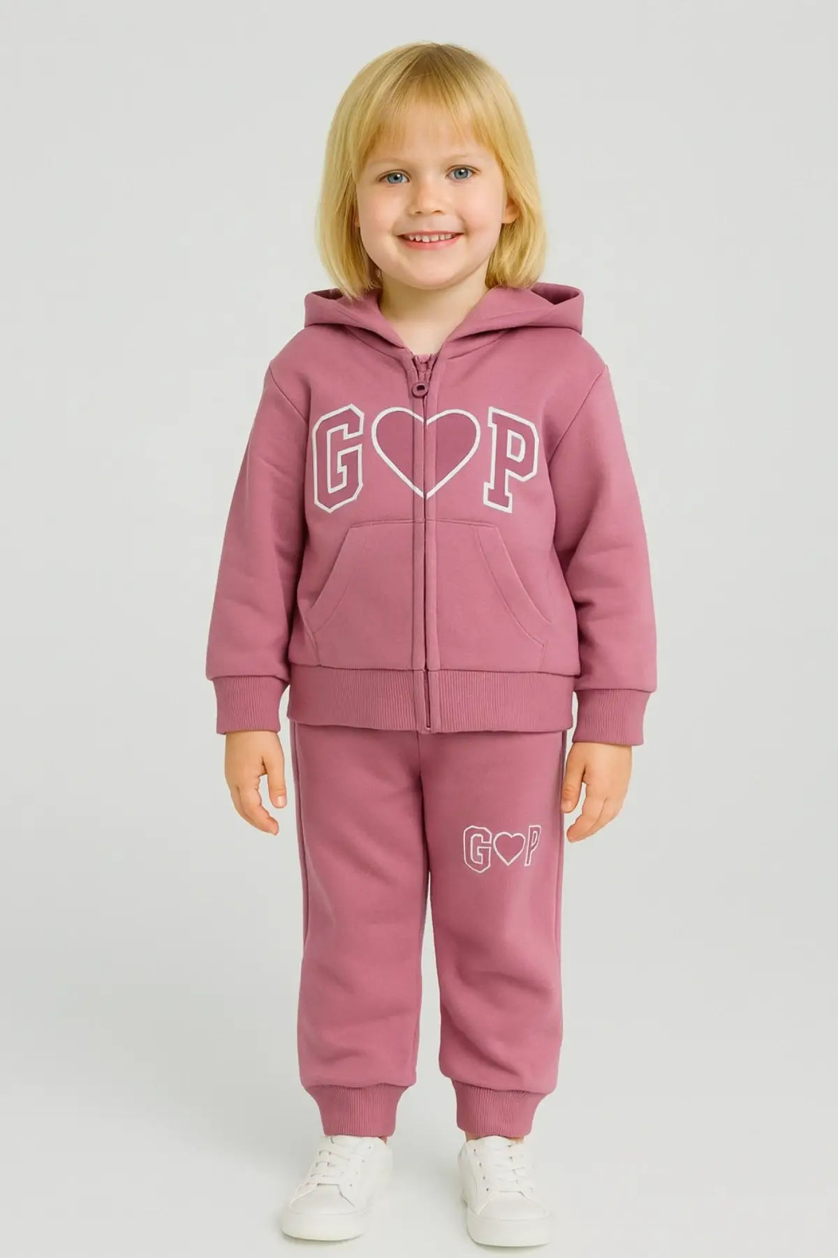 Kız Çocuk Kapüşonlu Kalp Detaylı Pembe Alt Üst Takım
