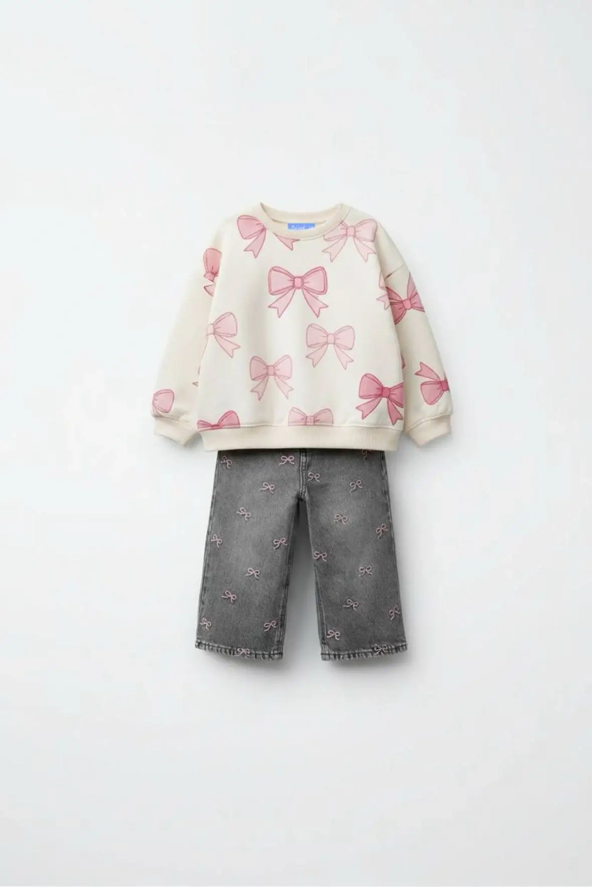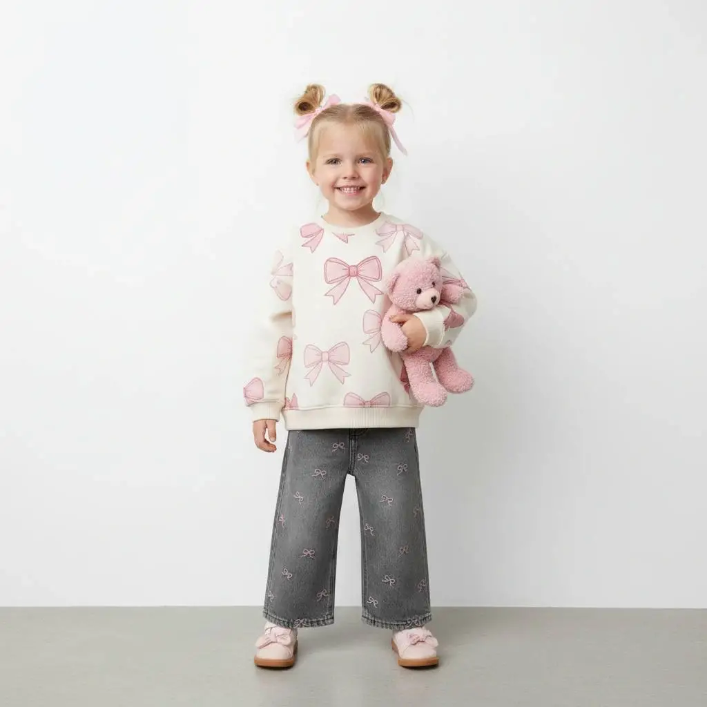 Kız Çocuk Kurdele Detaylı Kot Pantolon Takım