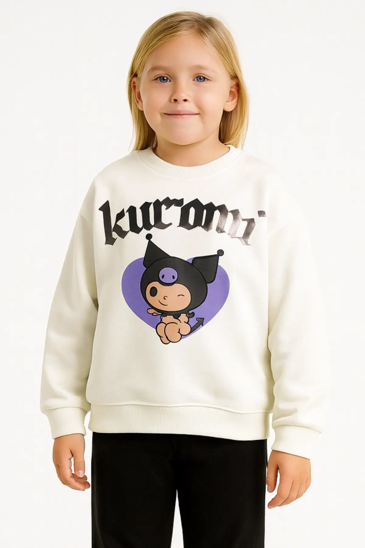 Kız Çocuk Kuromi Mor Kalp Baskılı Sweatshirt