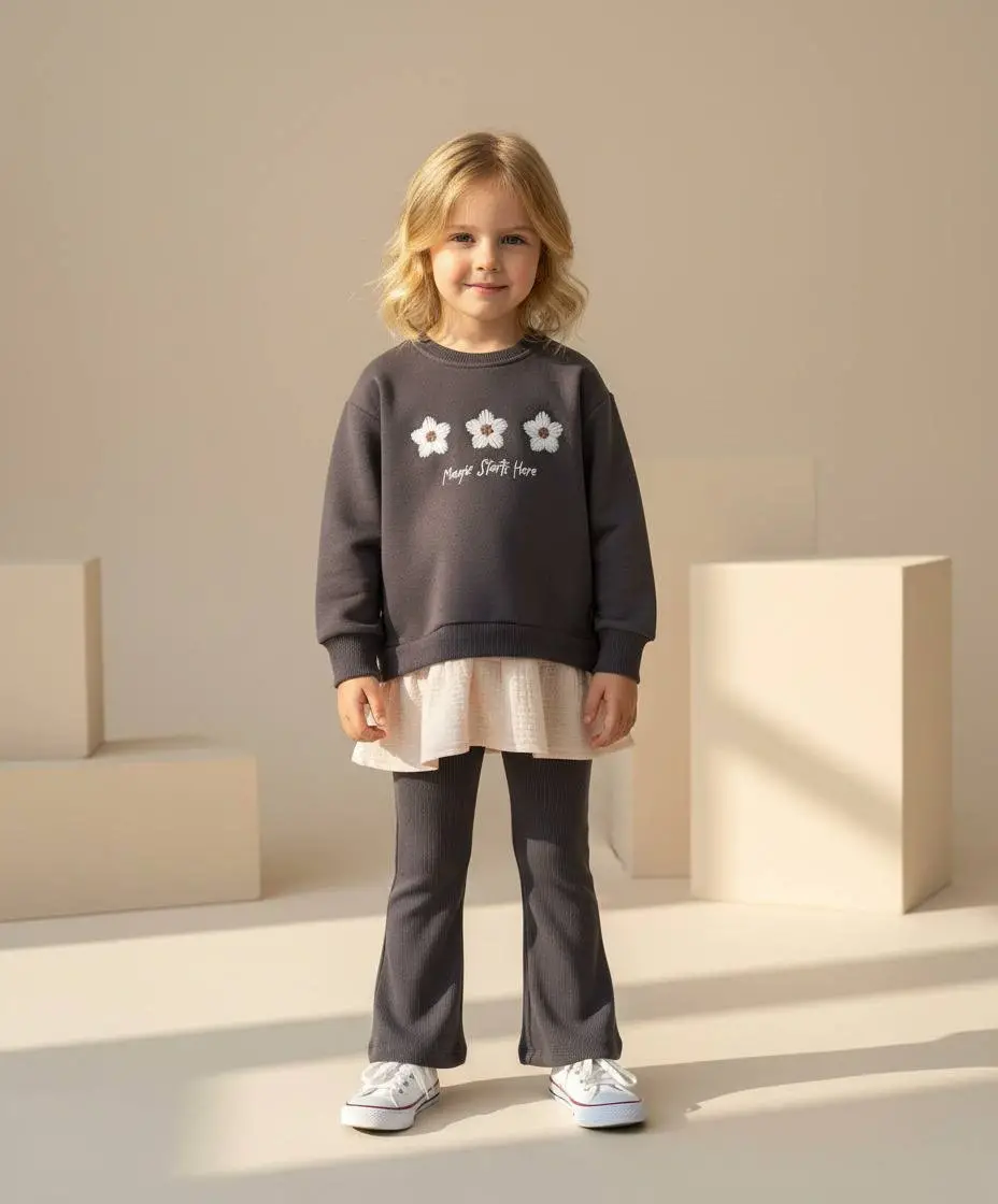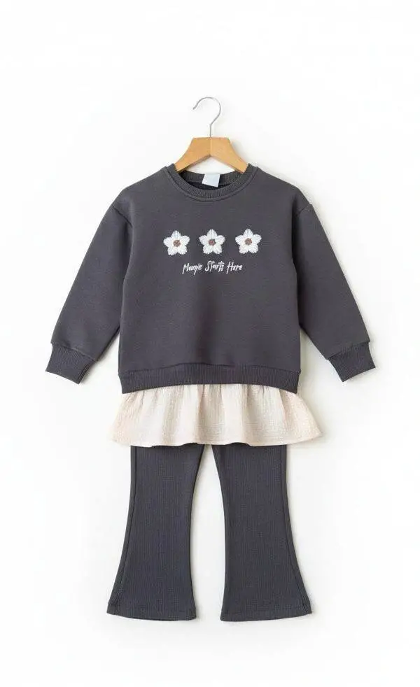 Kız Çocuk Papatya Detaylı Alt-Üst Takım