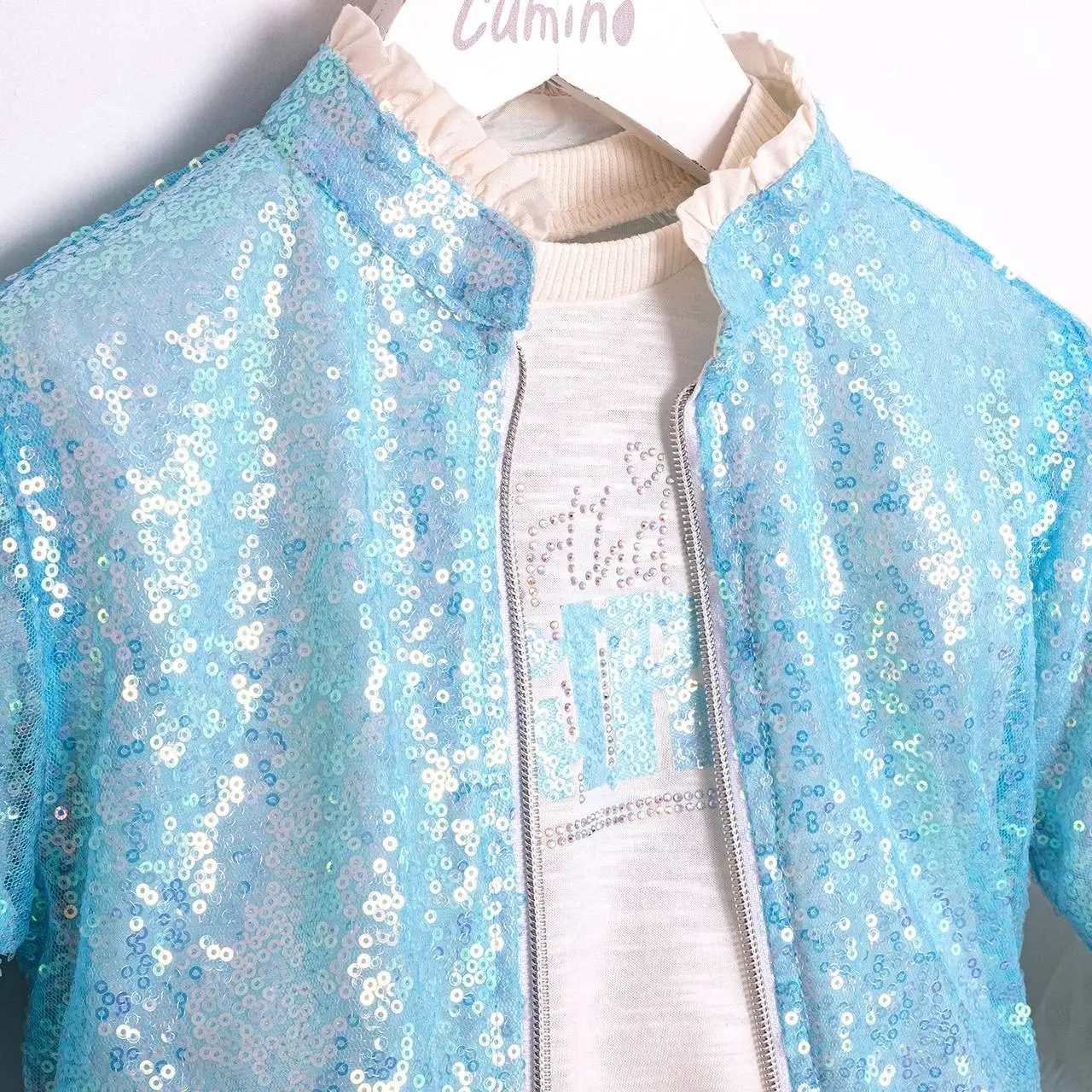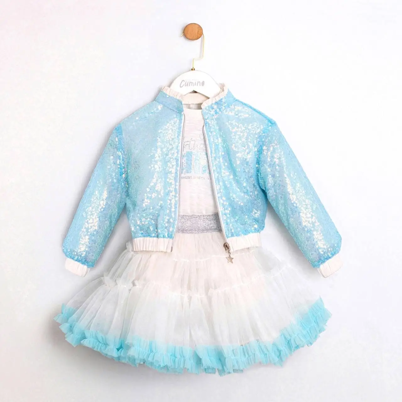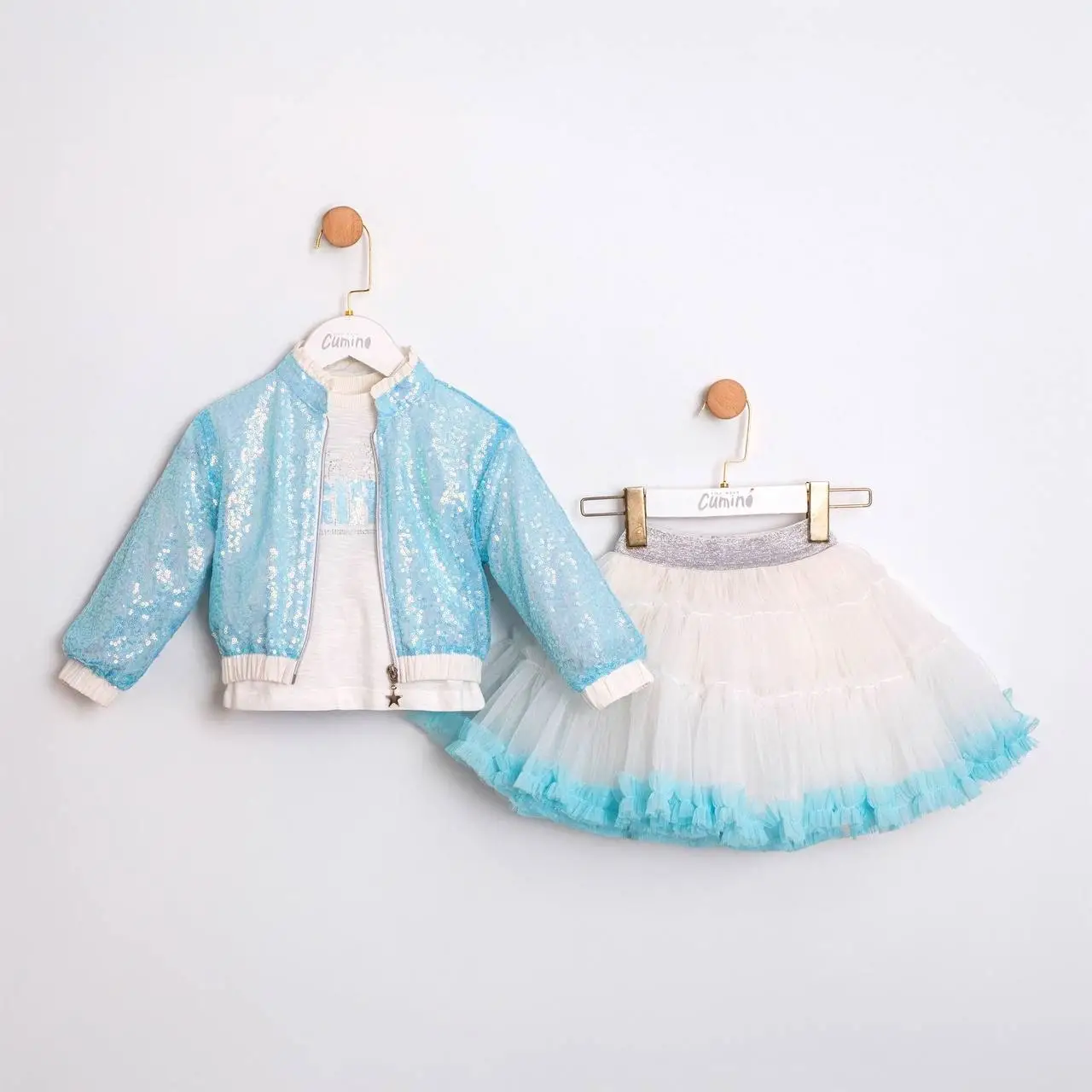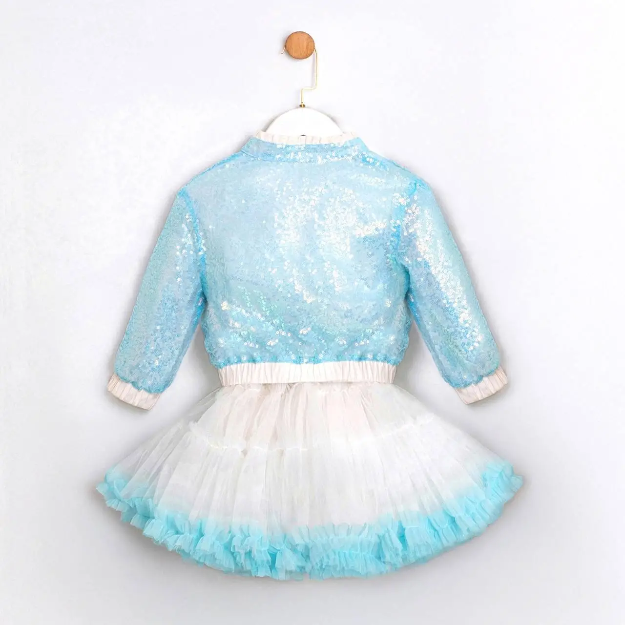 Kız Çocuk Parlak Ceketli Tütü Etekli Mavi Takım