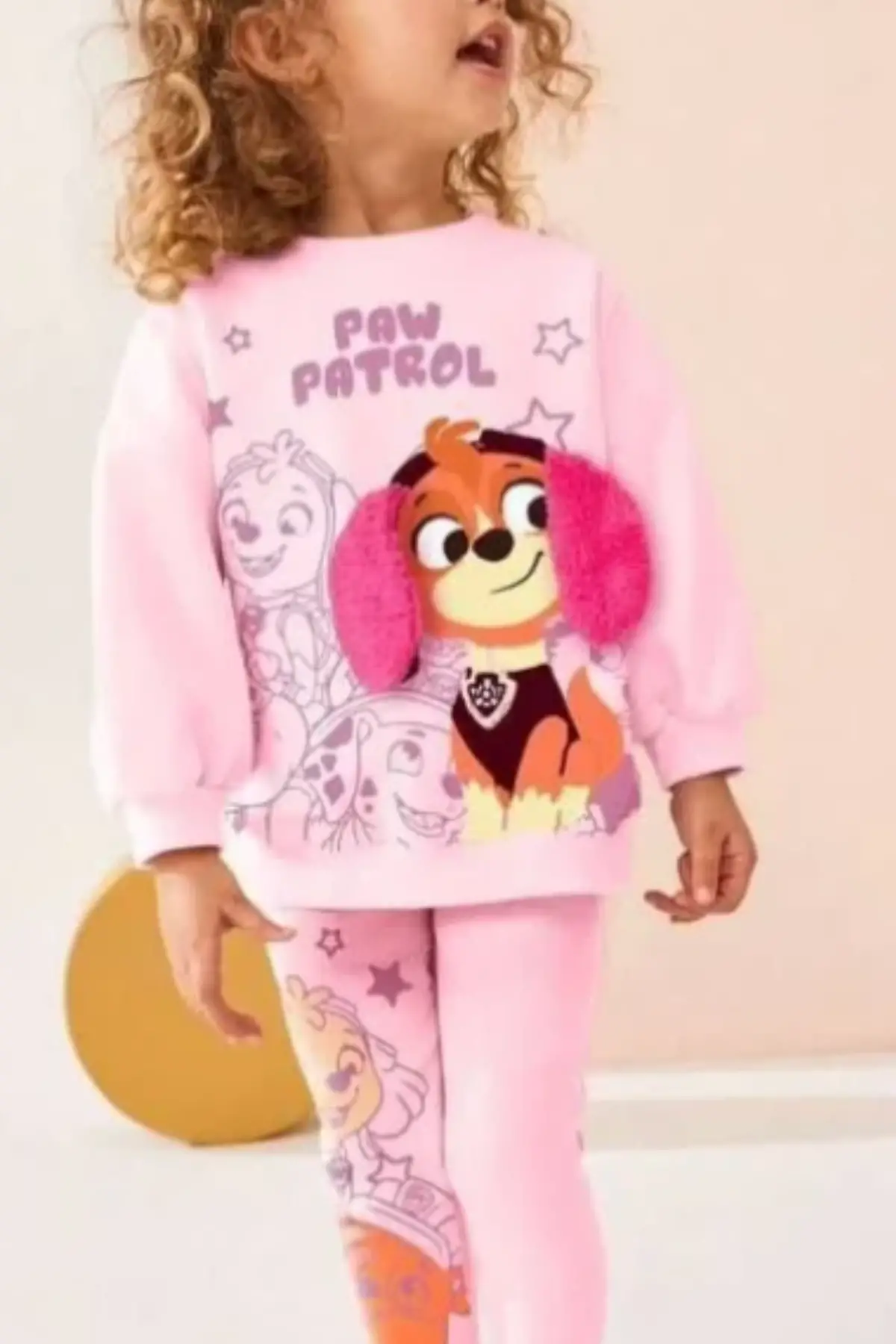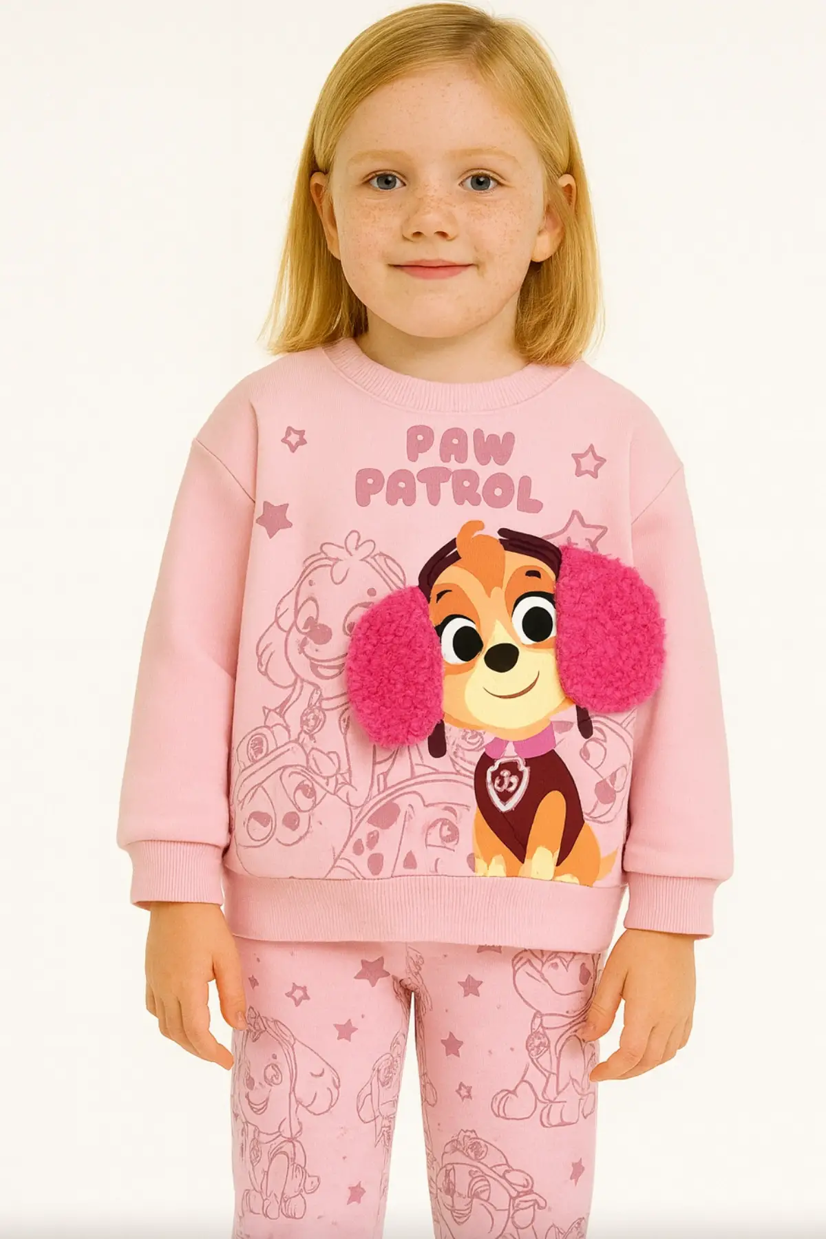 Kız Çocuk Paw Patrol Peluş Kulaklı %100 Pamuk Pembe Takım