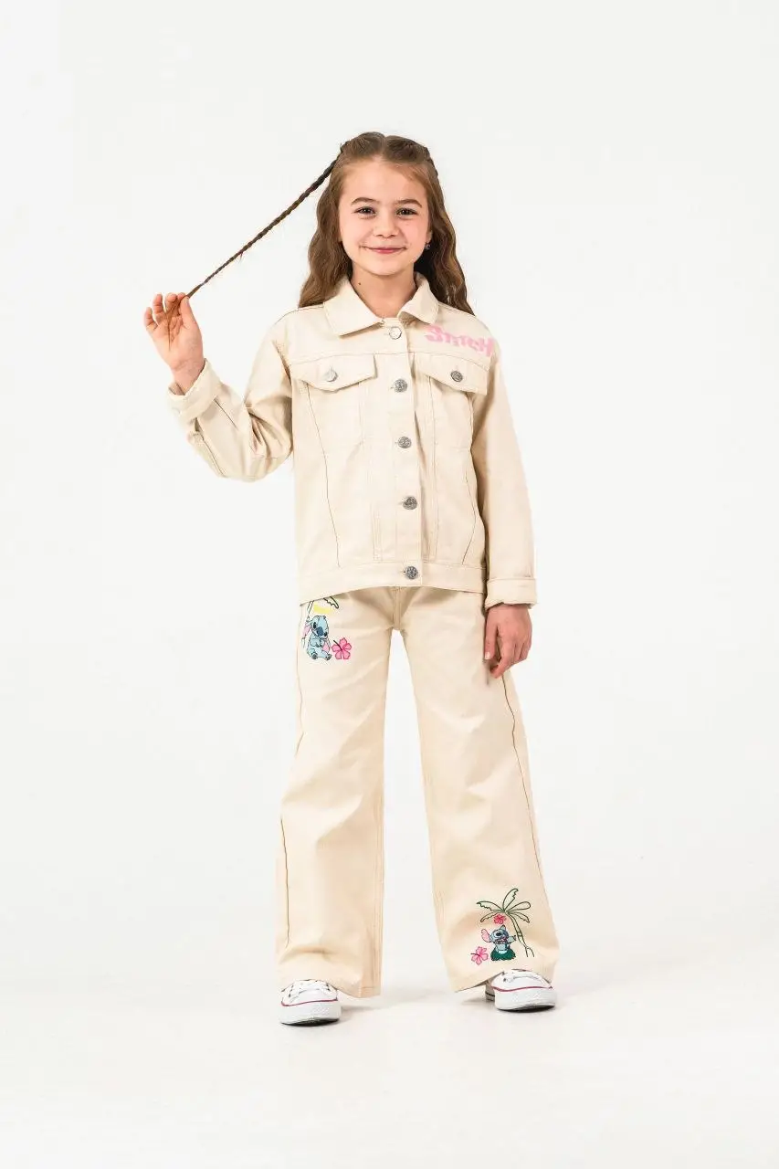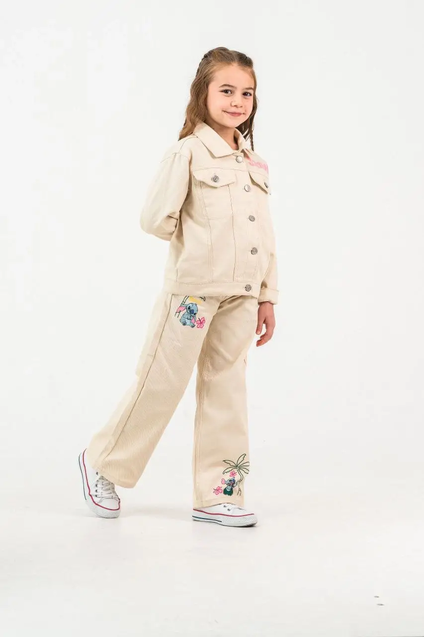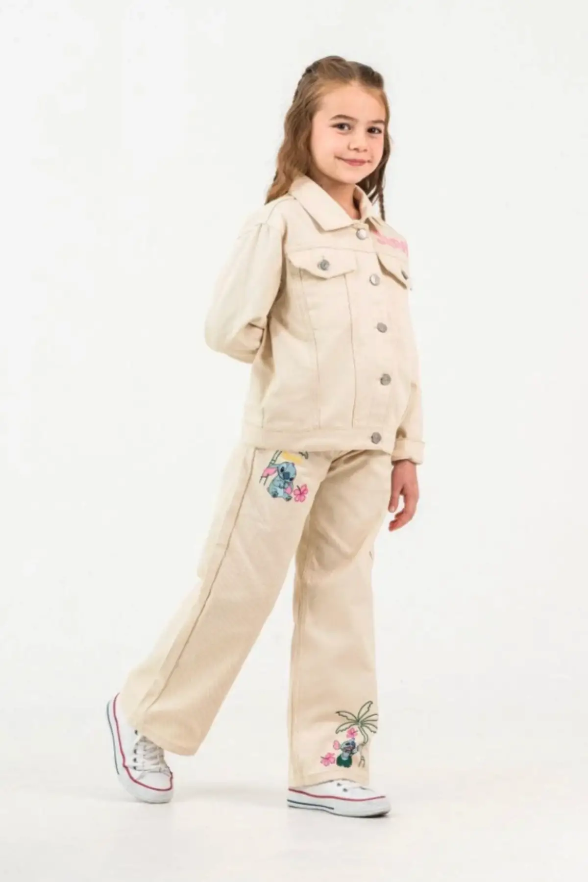 Kız Çocuk Stitch Baskılı Dokuma Takım