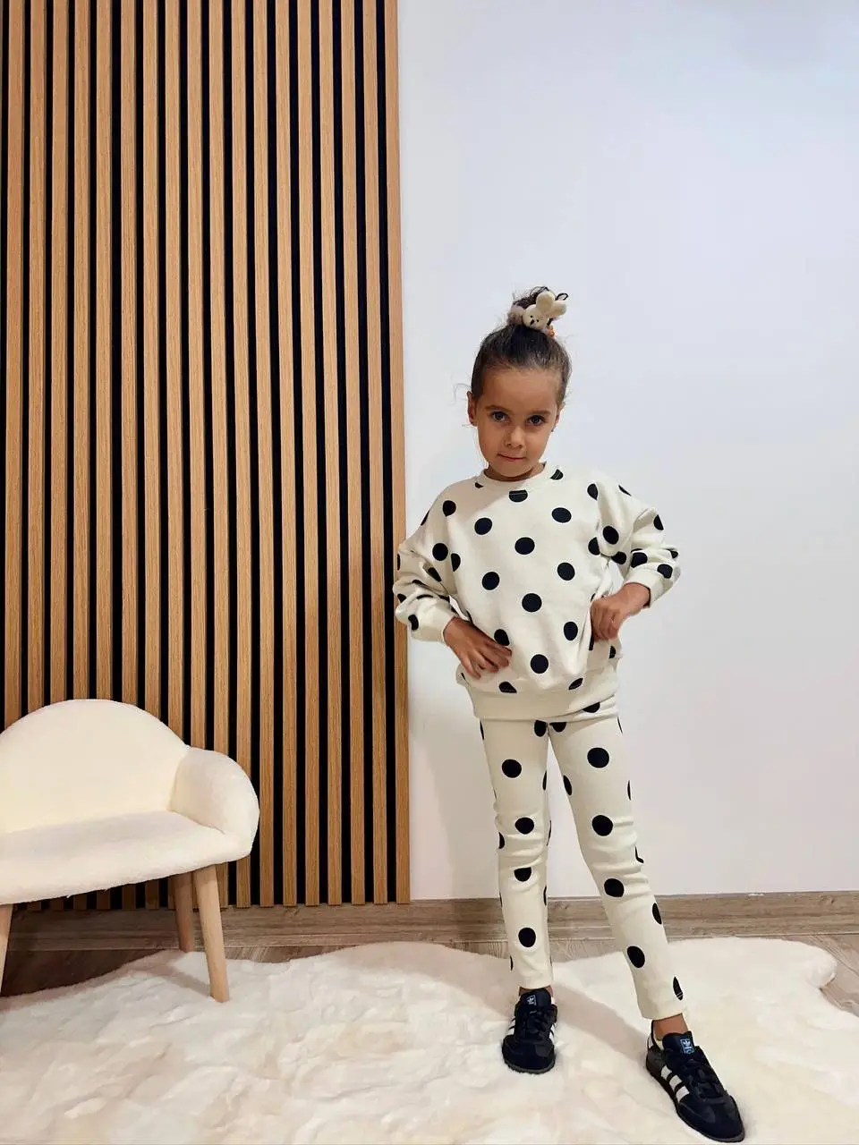 Kız Çocuk Puantiyeli Taytlı %100 Pamuk Alt Üst Takım
