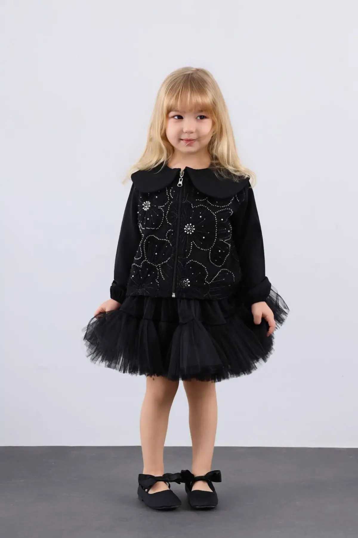 Kız Çocuk Siyah İşlemeli Tütü Etekli Takım