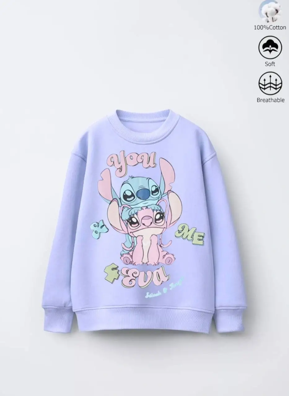 Kız Çocuk Stitch Angel Baskılı Lila Sweatshirt