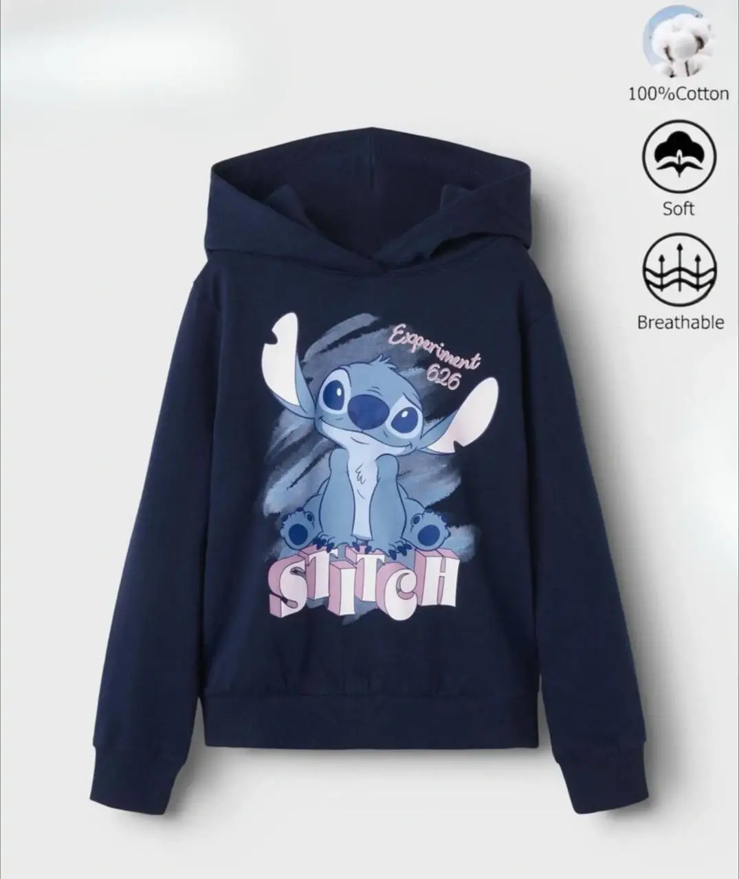 Kız Çocuk Stitch Baskılı %100 Pamuk Lacivert Sweatshirt