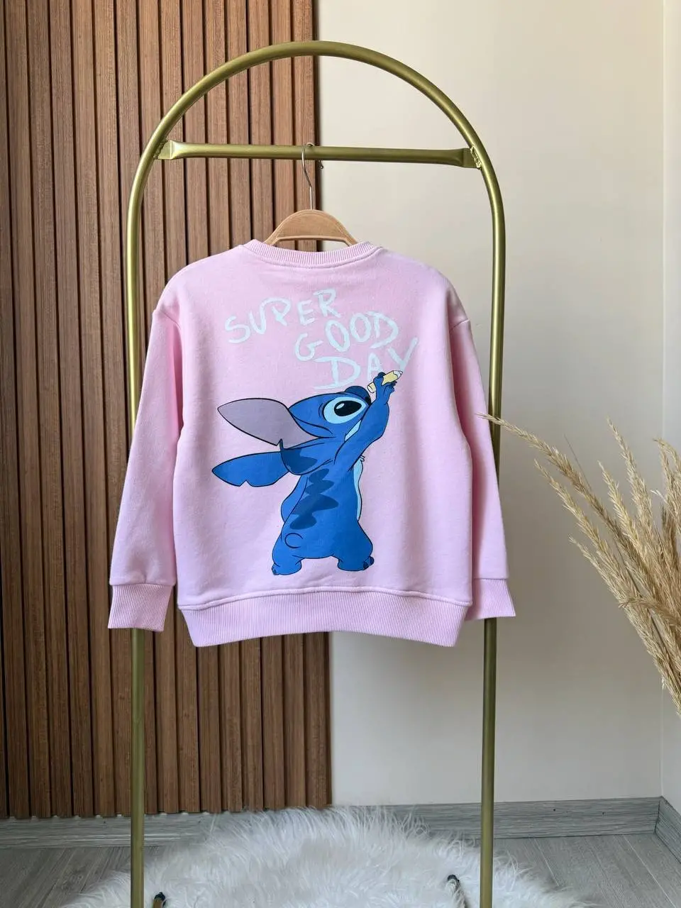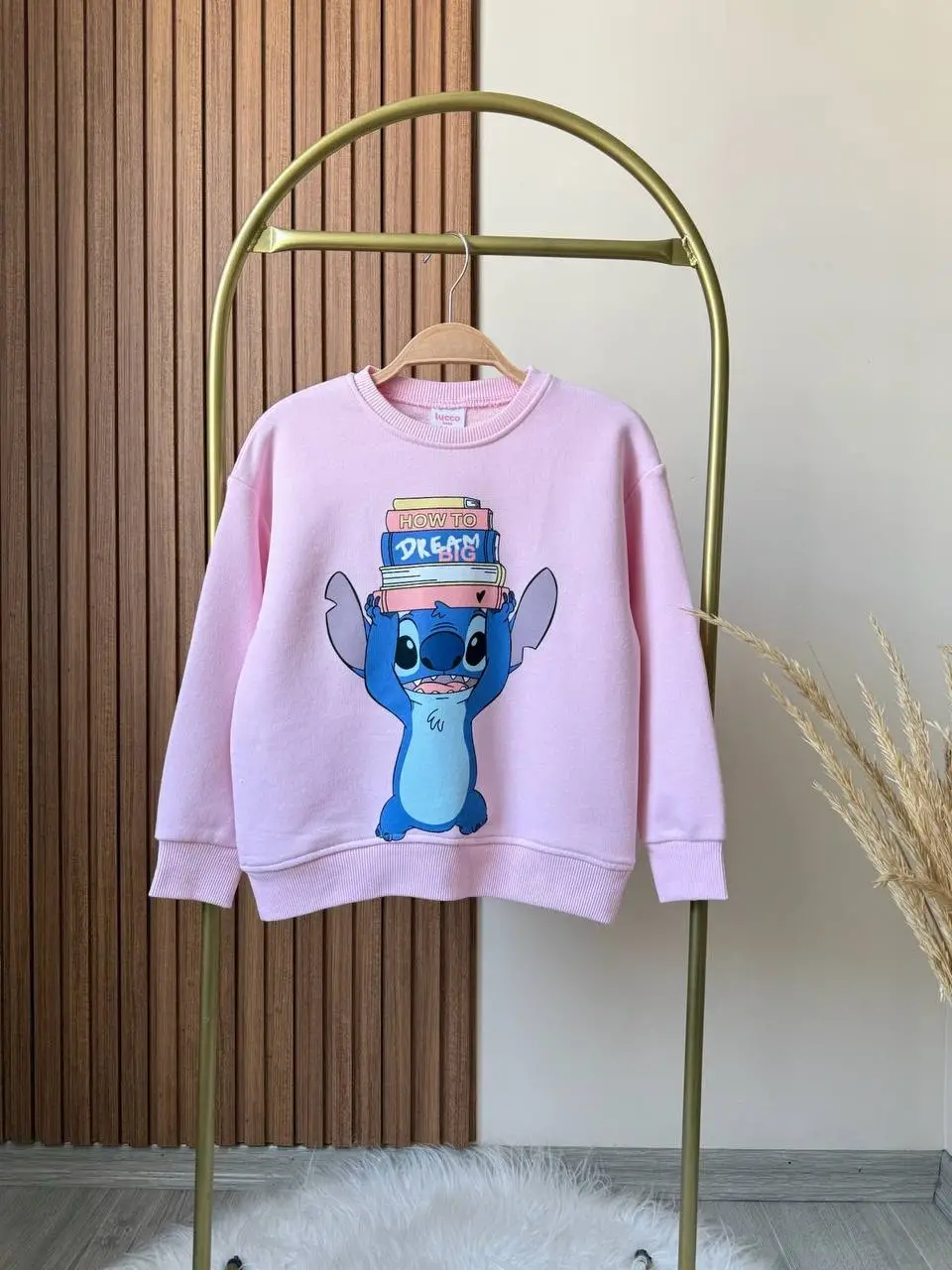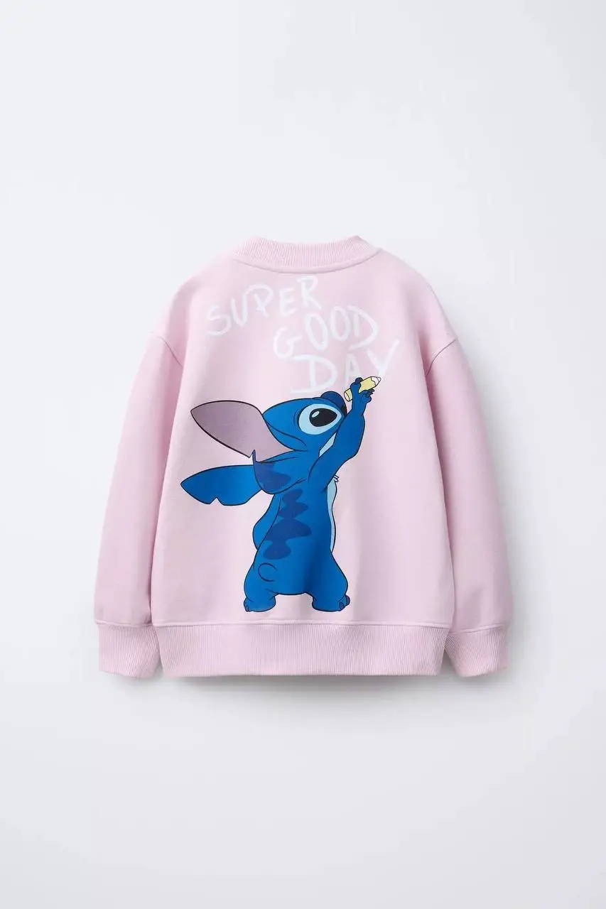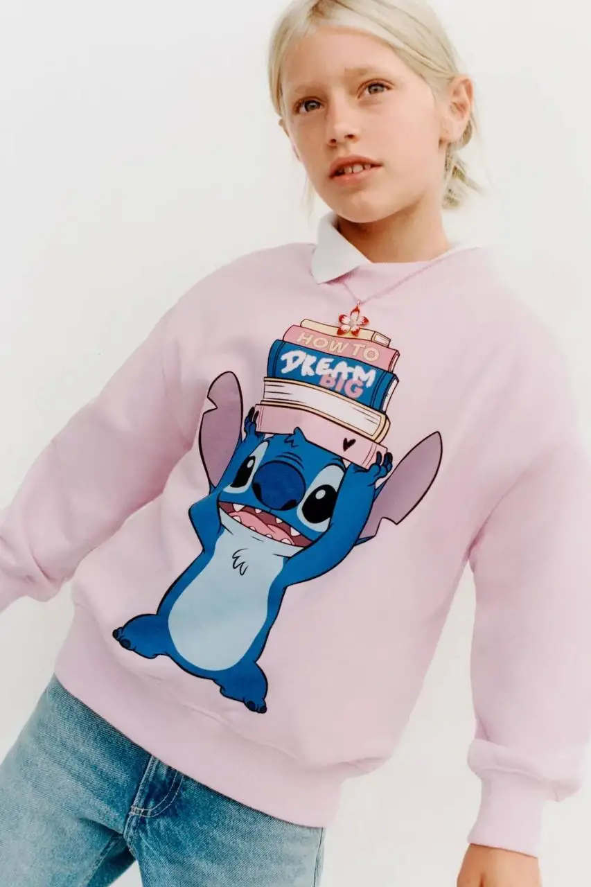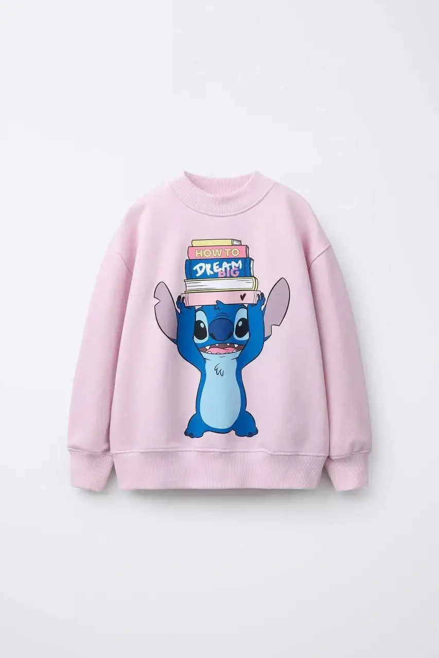 Kız Çocuk Stitch Baskılı %100 Pamuk Sweatshirt