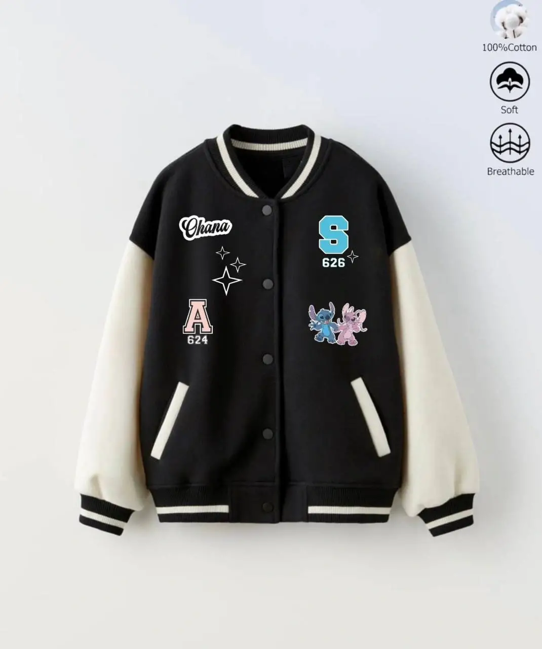 Kız Çocuk Stitch Baskılı Kolej Ceket