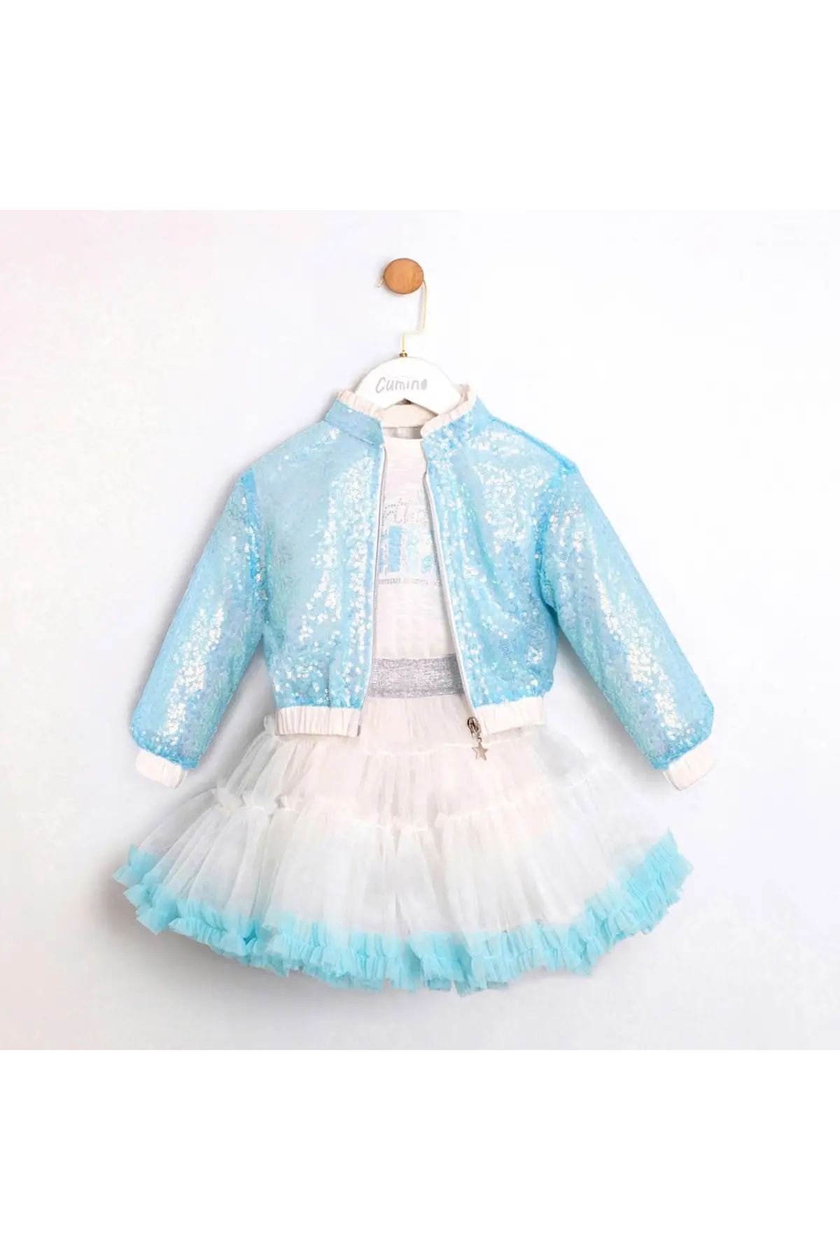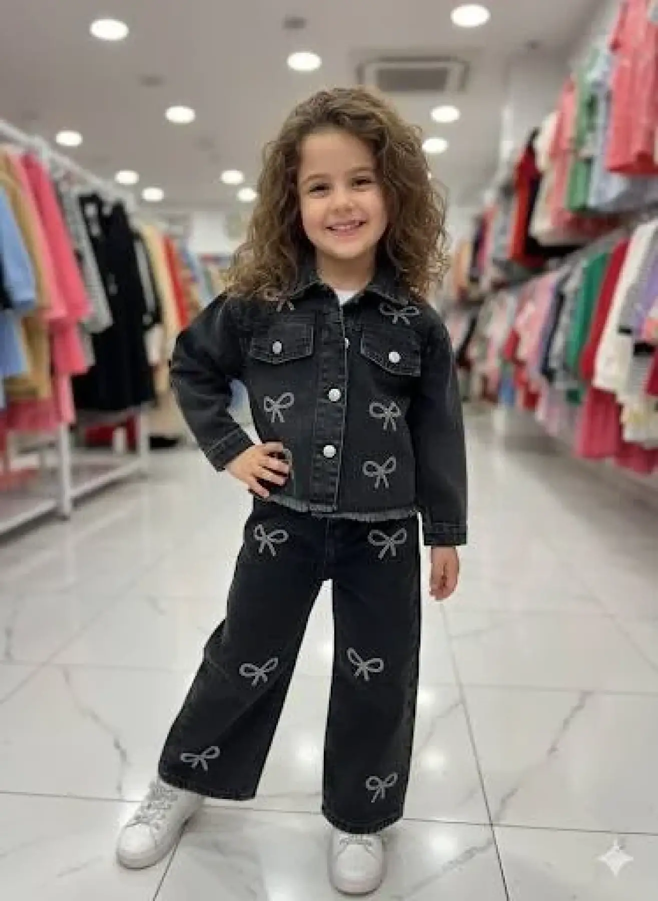 Kız Çocuk Taşlı Fiyonk Kot Takım
