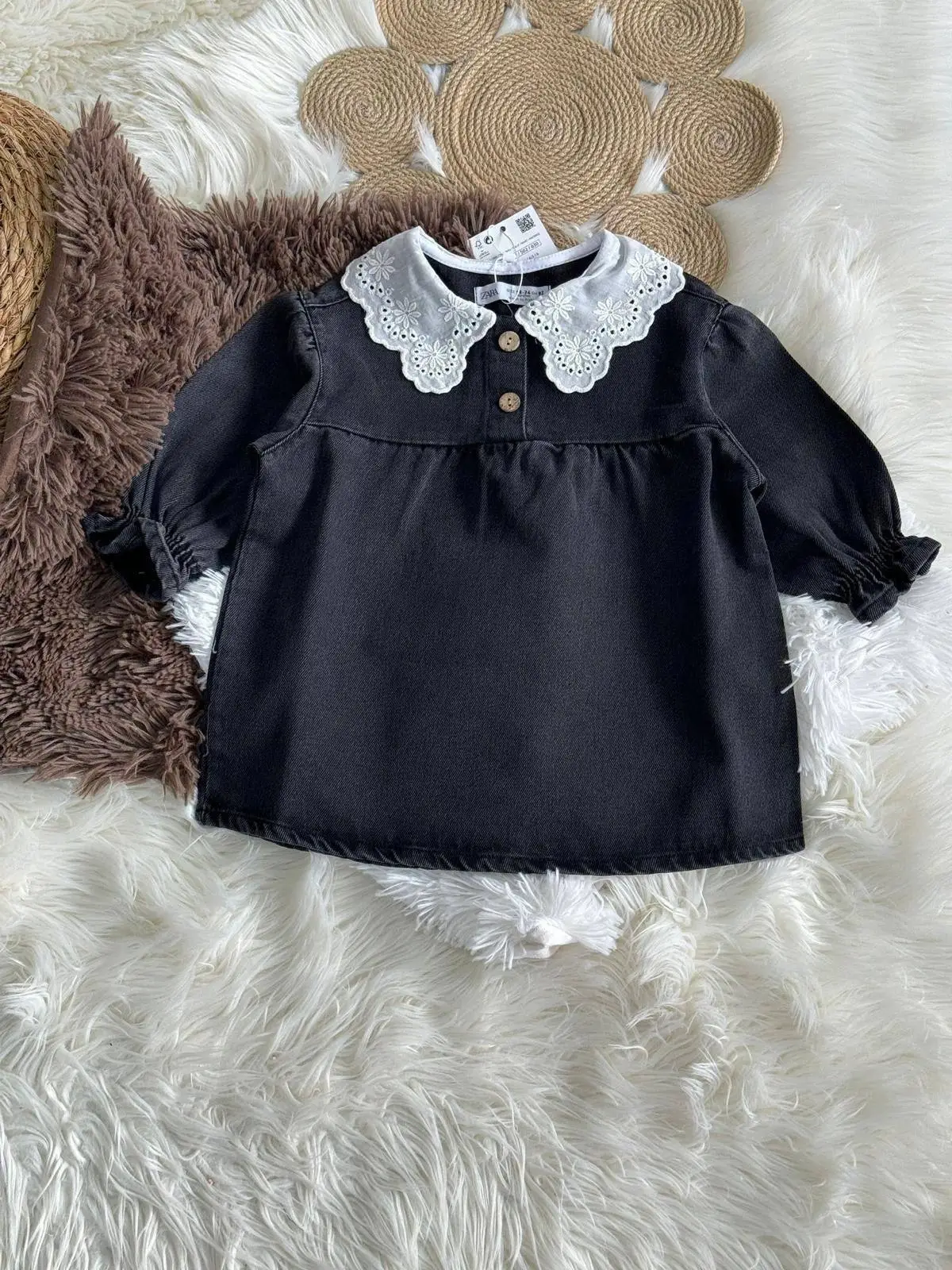 Kız Çocuk Yaka Detaylı Siyah Kot Elbise