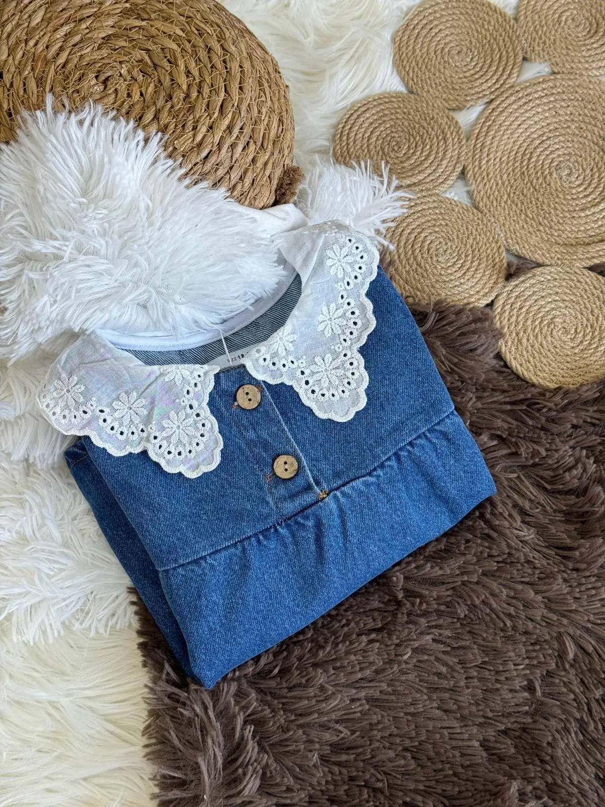 Kız Çocuk Yaka Detaylı Mavi Kot Elbise
