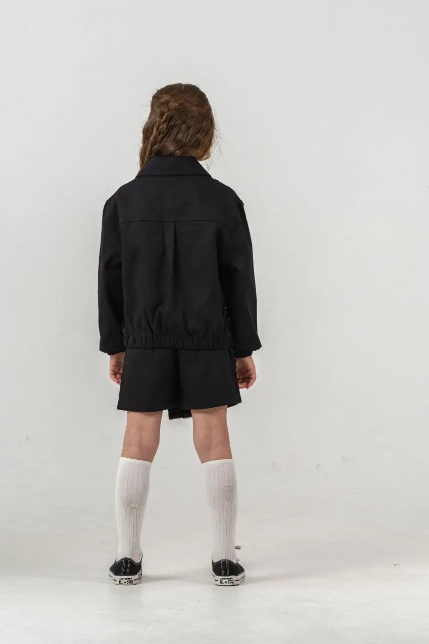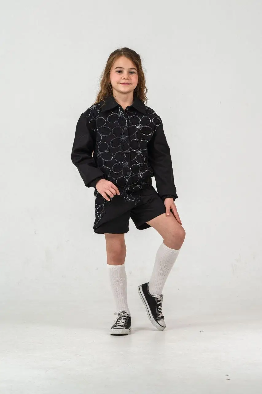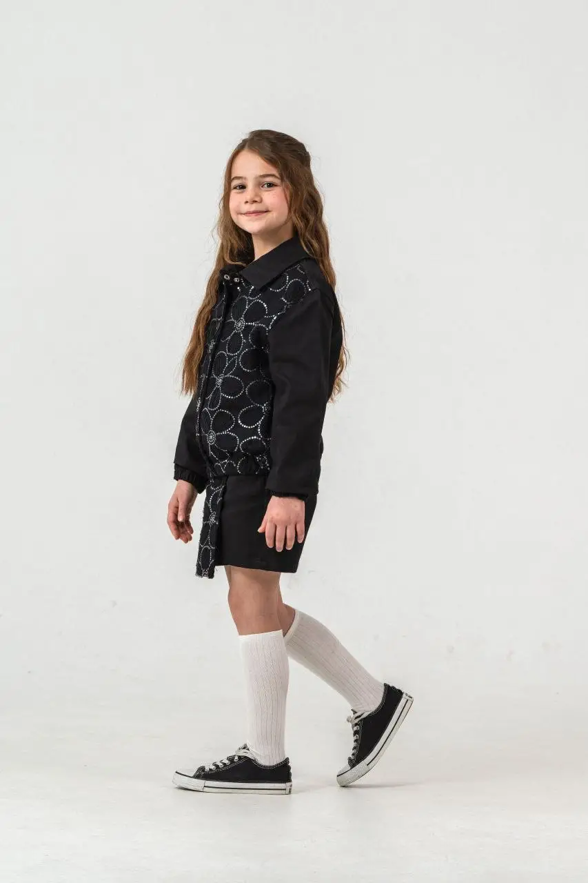 Kız Çocuk Payet İşlemeli Şort Etek Siyah Takım
