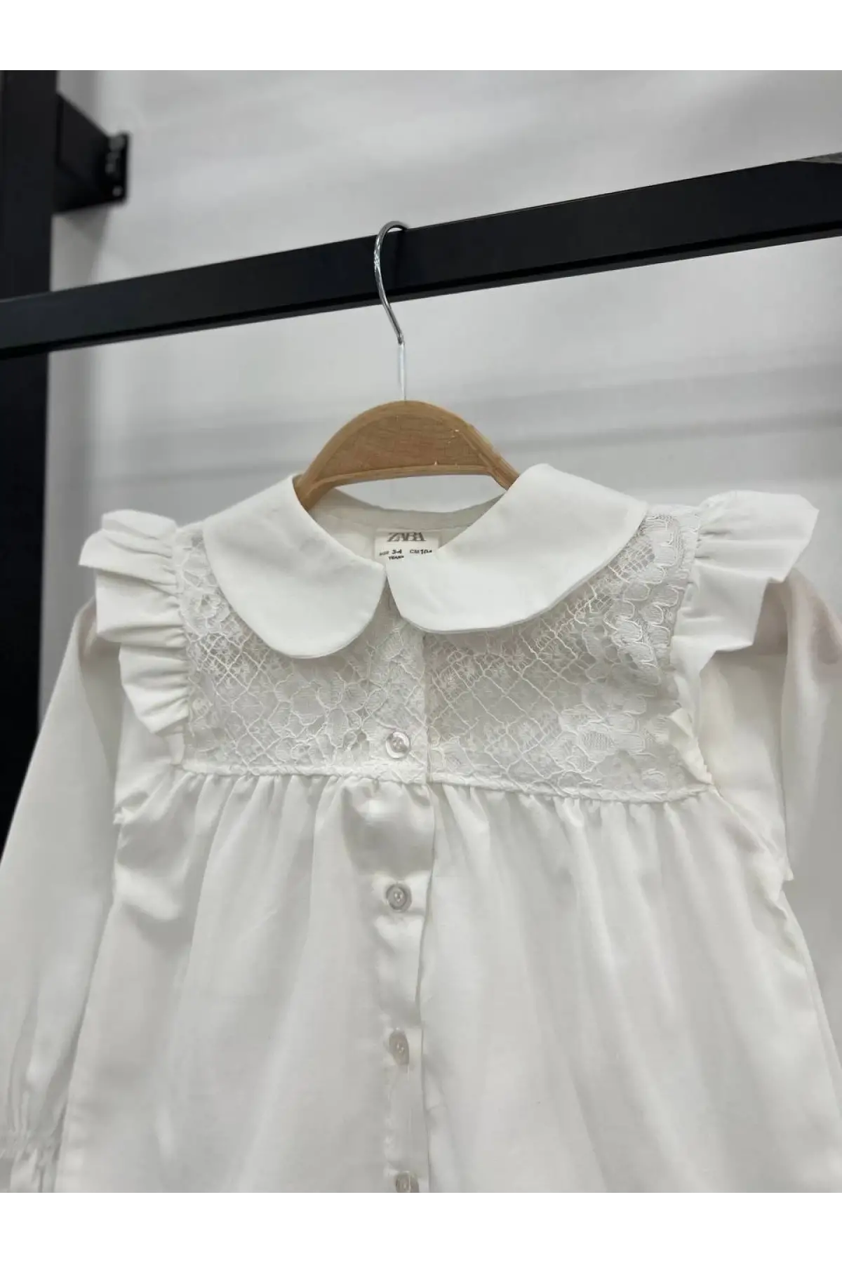 Kız Çocuk Dantel İşlemeli Yakalı Gömlek