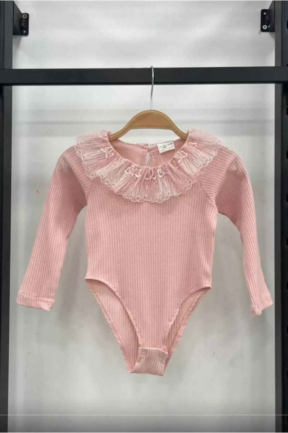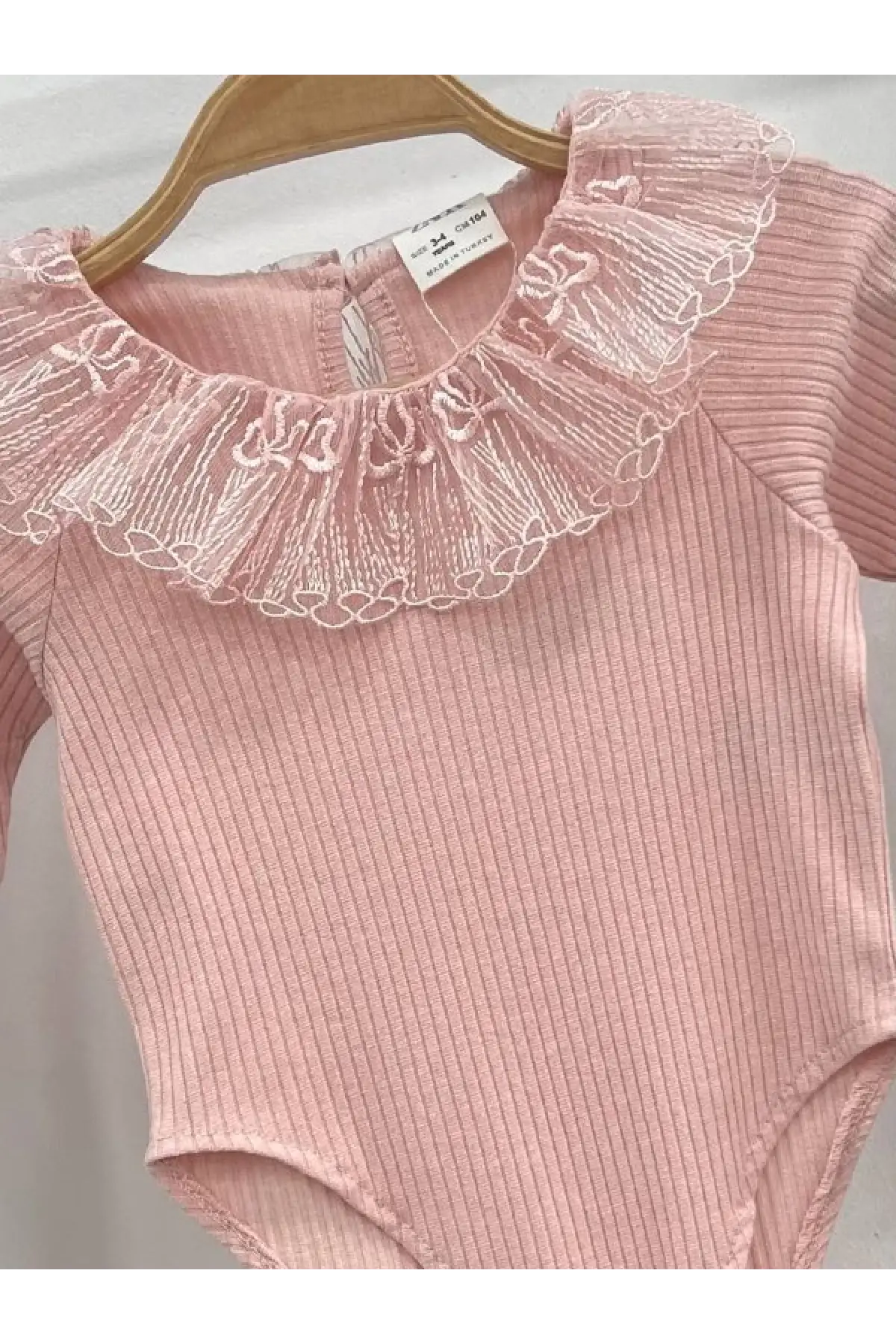 Kız Çocuk Dantel Yaka Pembe Bluz