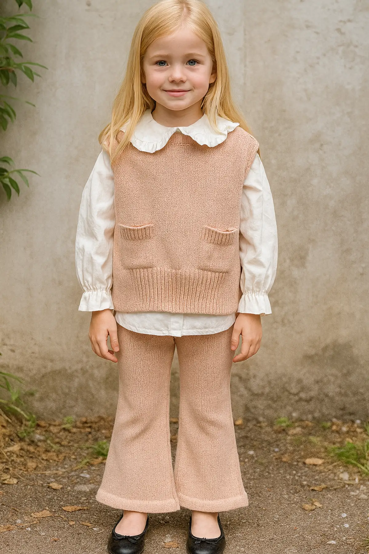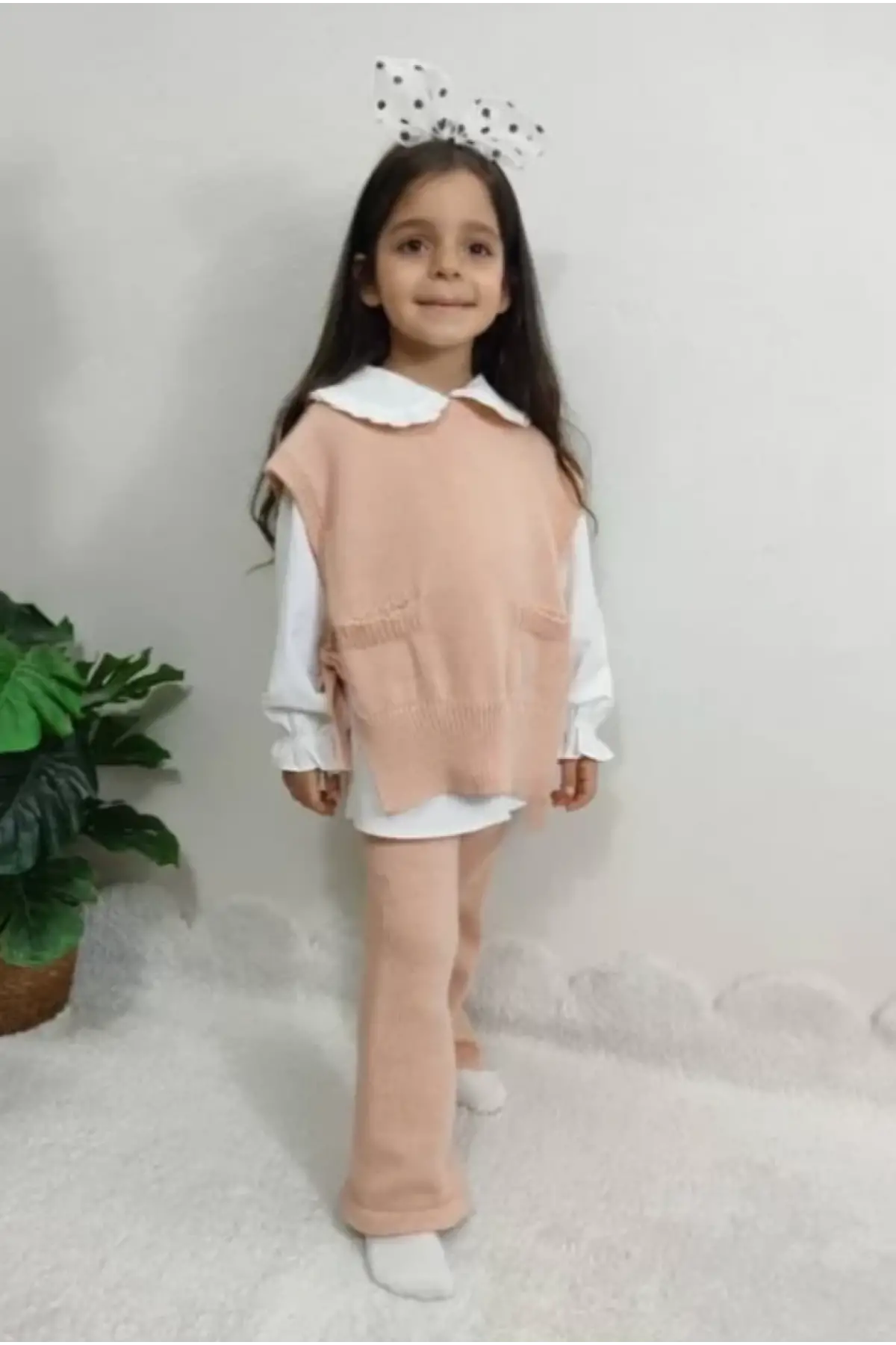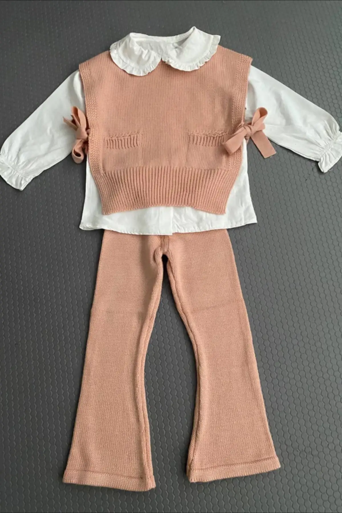 Kız Çocuk Gömlekli Triko İspanyol Paça Pembe İkili Takım