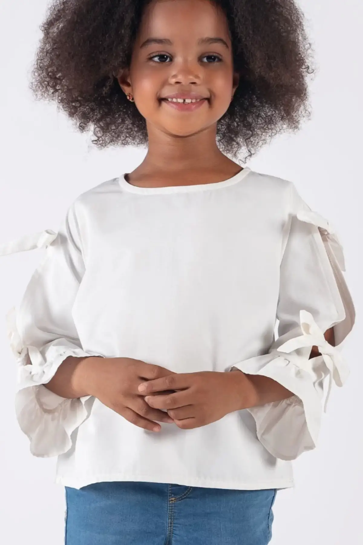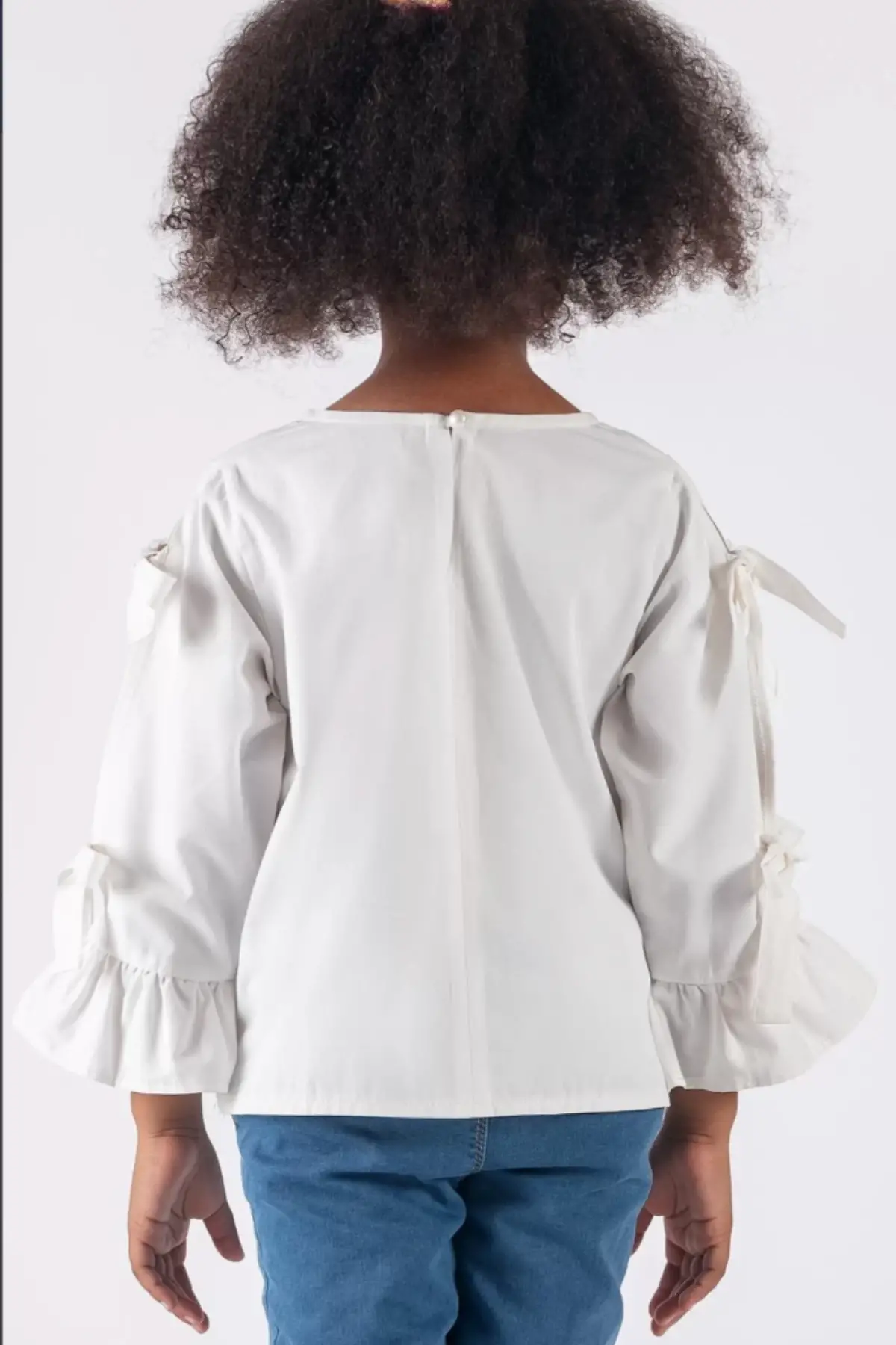 Kız Çocuk Kol Detaylı Bisiklet Yaka Gömlek
