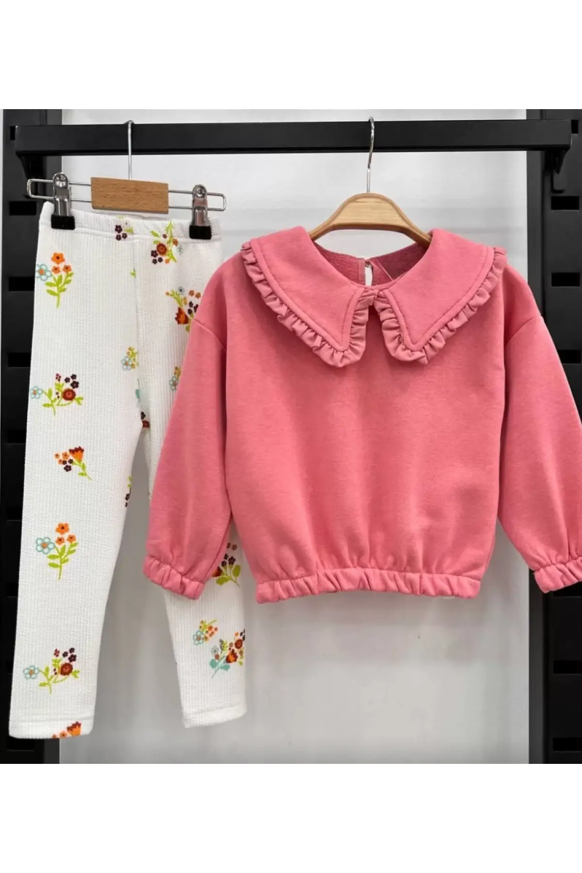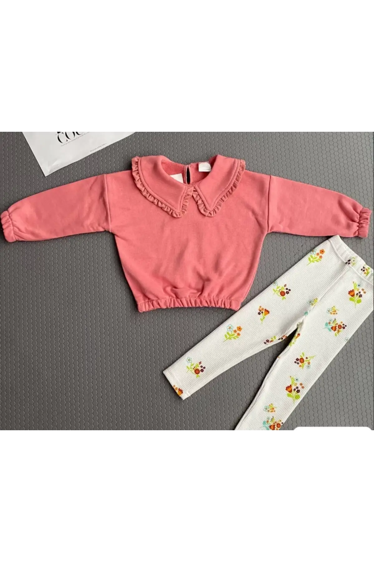 Kız Çocuk Yaka Detaylı Taytlı Alt-Üst İkili Takım