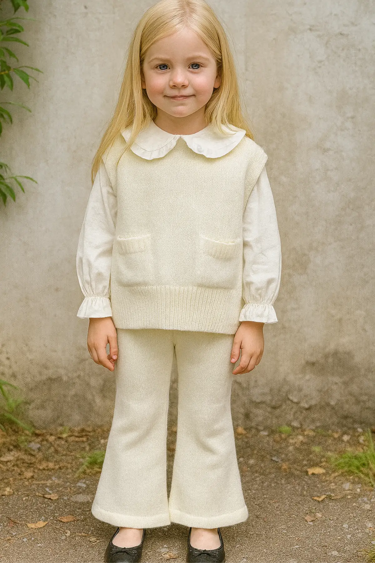 Kız Çocuk Gömlekli Triko İspanyol Paça Krem İkili Takım