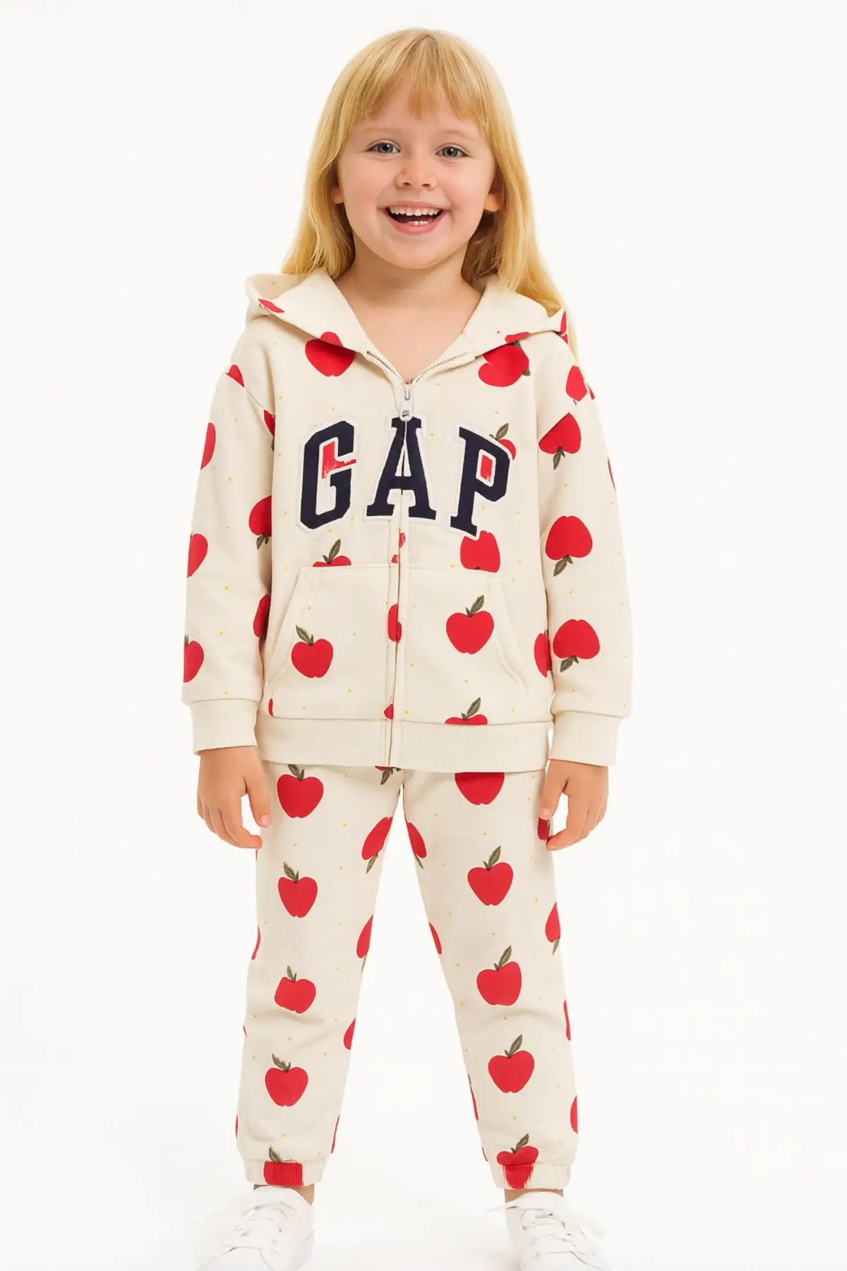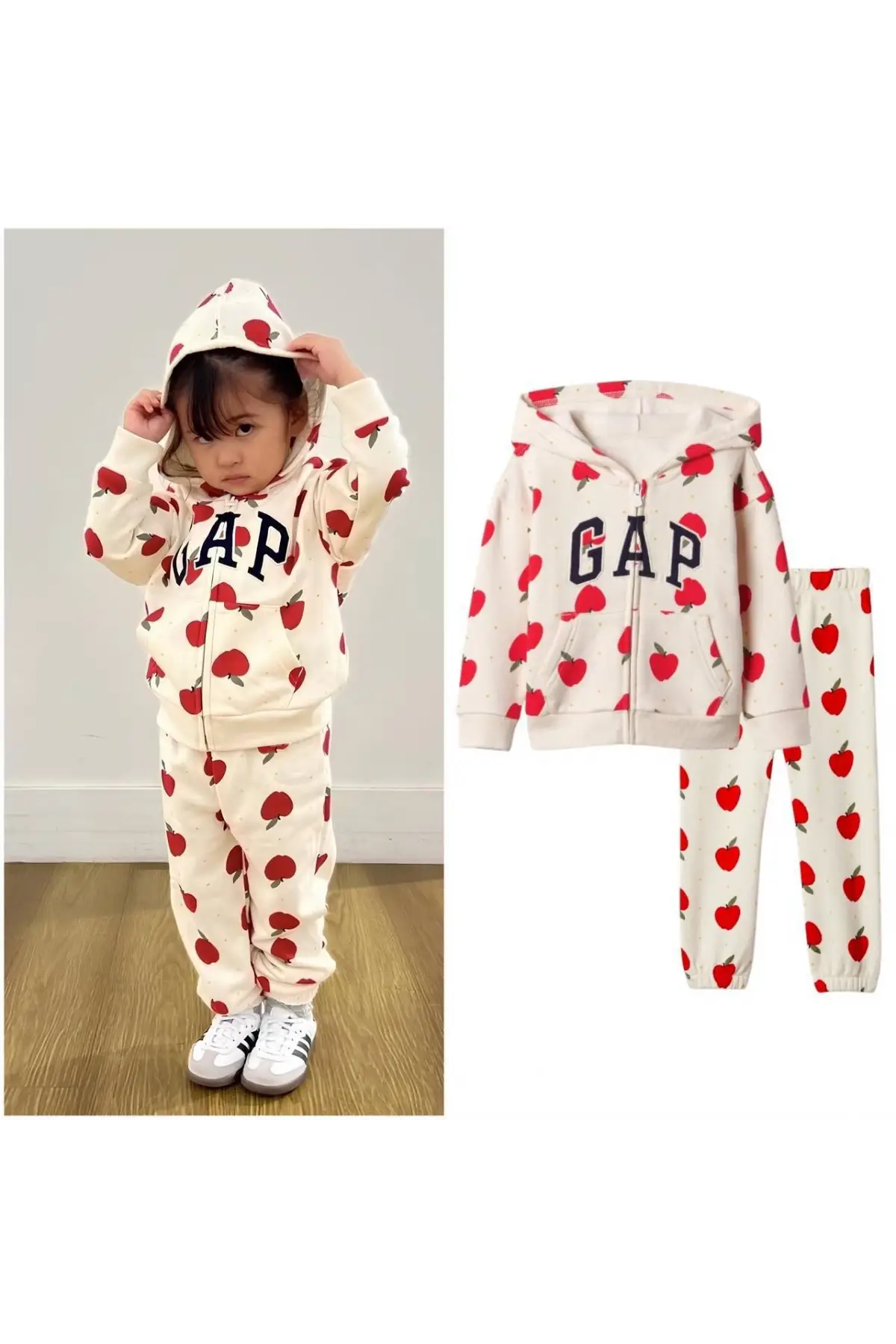 Kız Çocuk Fermualı Elma Desenli %100 Pamuk Takım