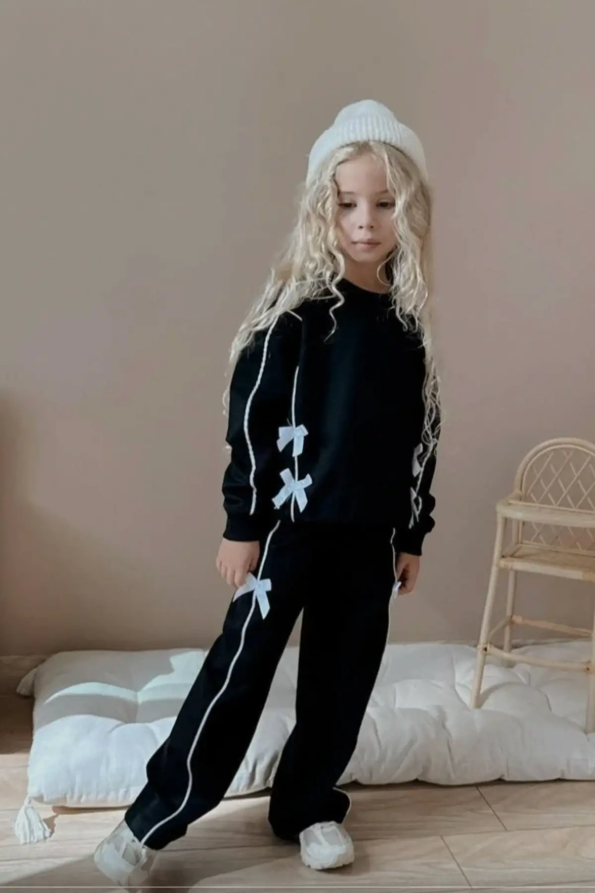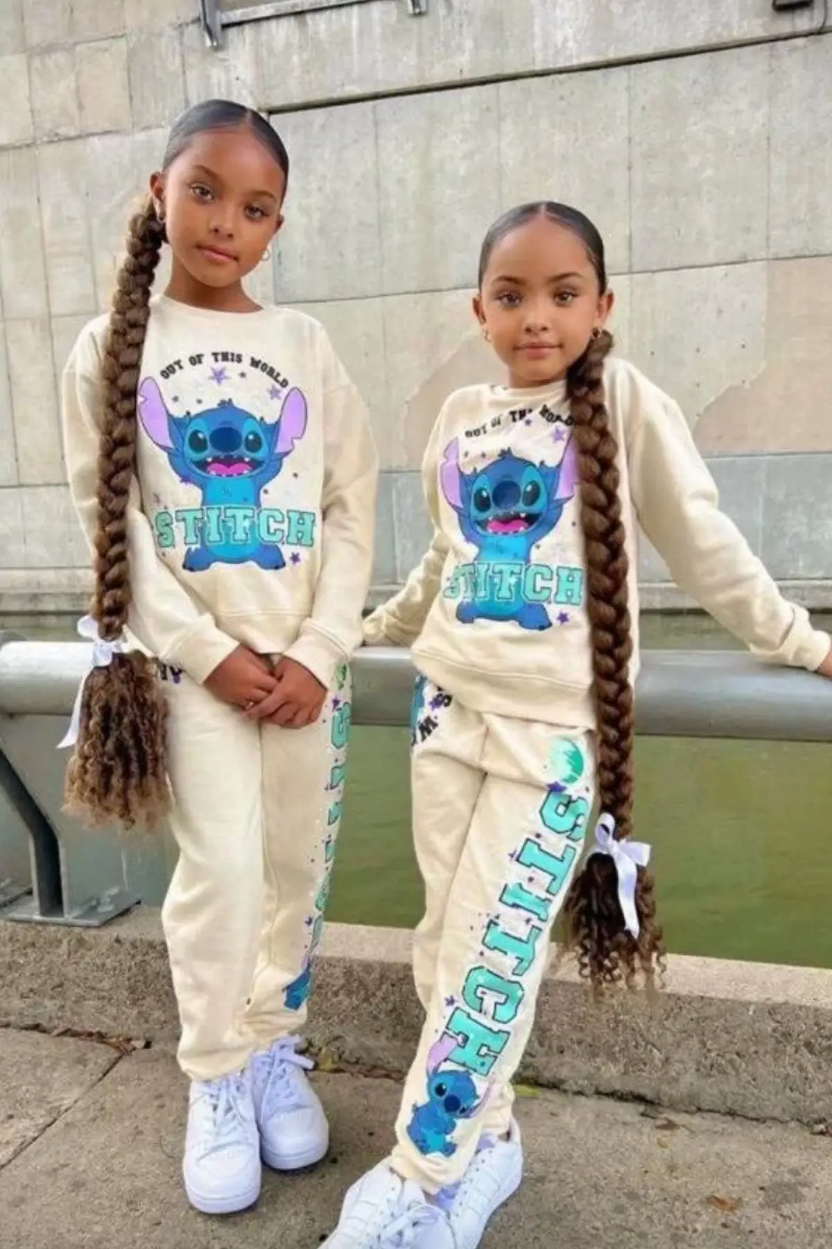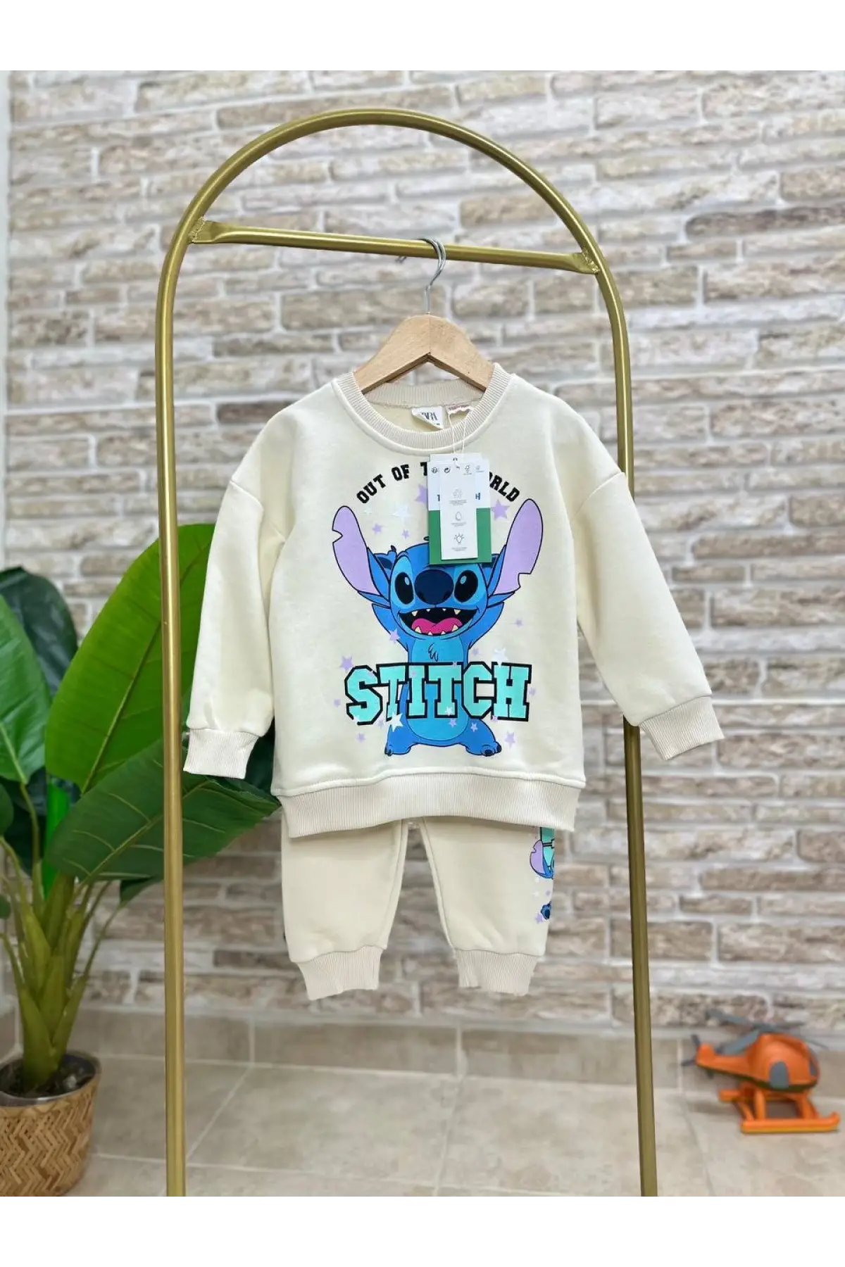 Çocuk Unisex Stitch Baskılı %100 Pamuk Krem Takım