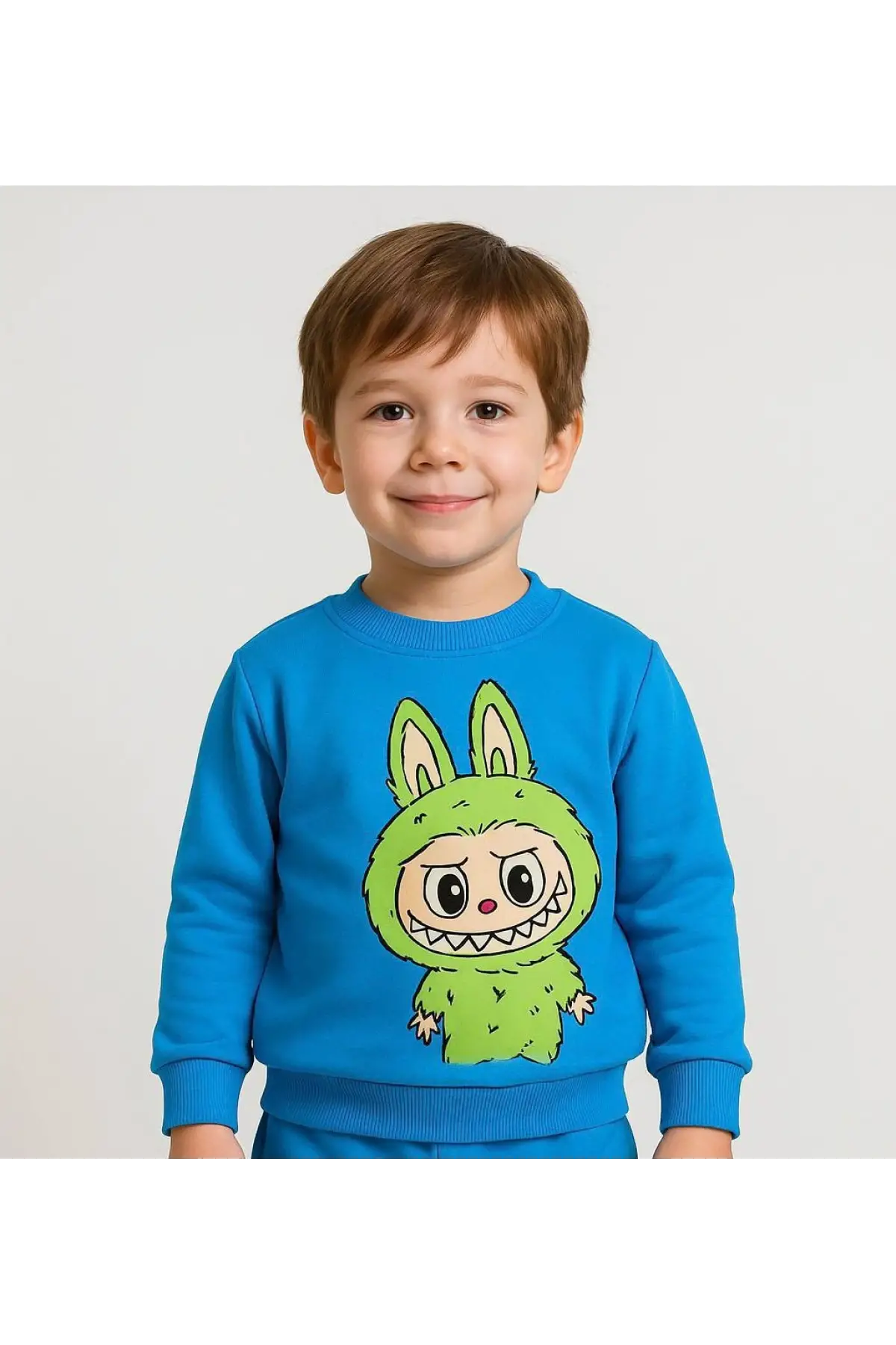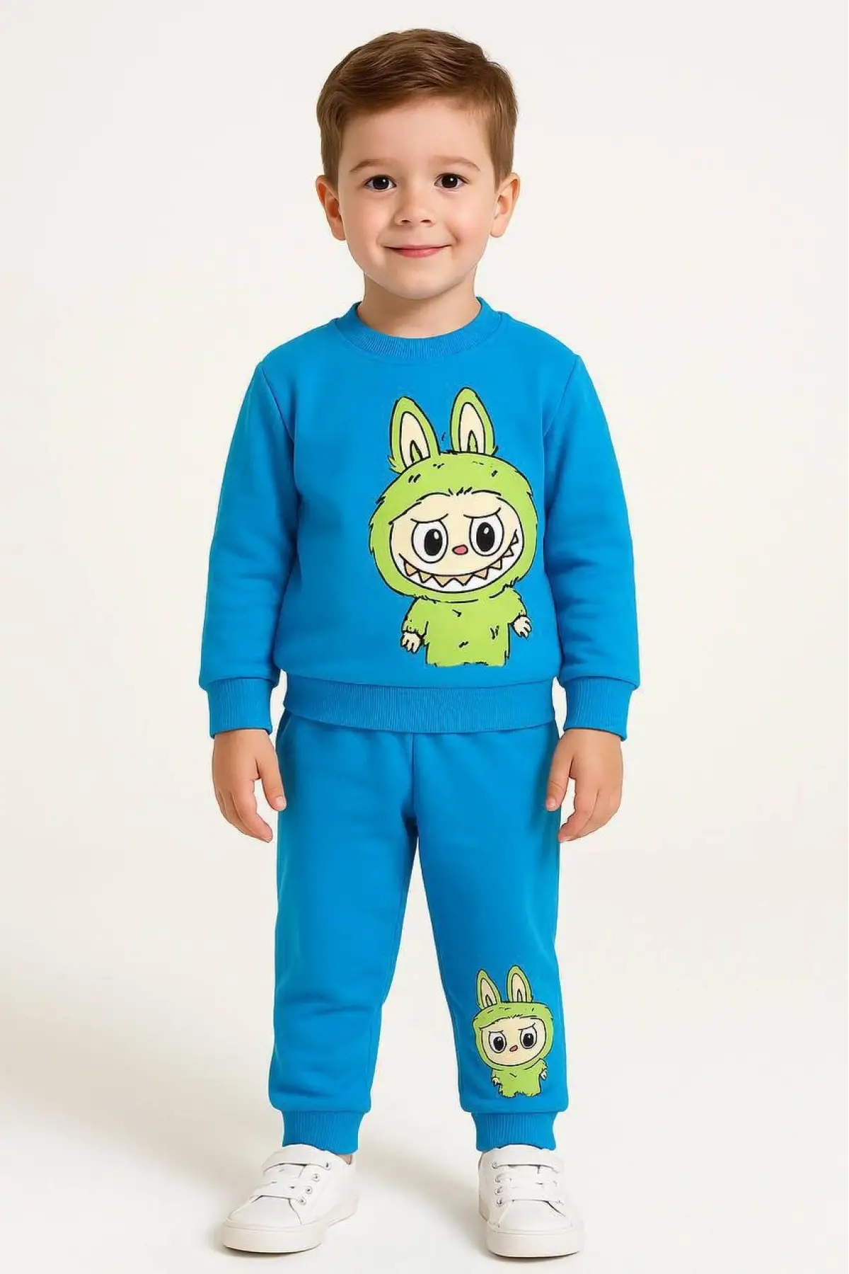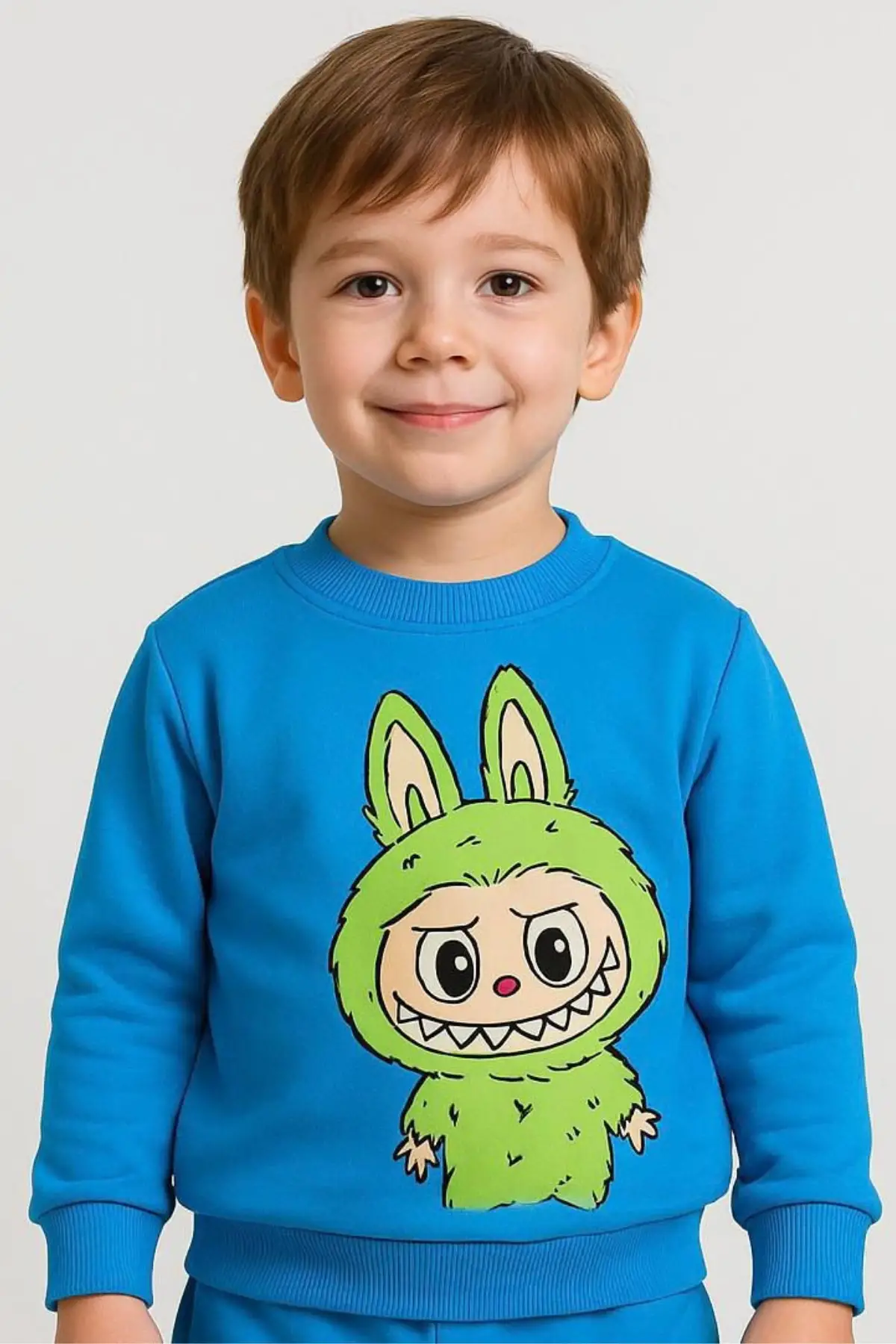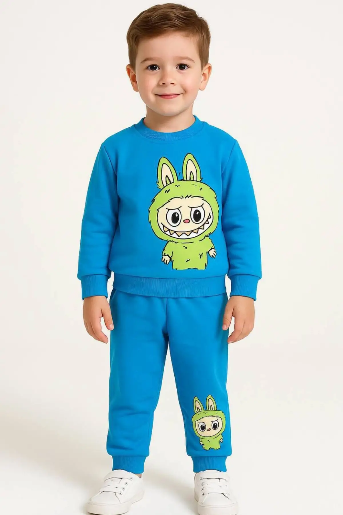 Unisex Bisiklet Yaka Labubu Baskılı %100 Pamuk Alt-Üst Takım