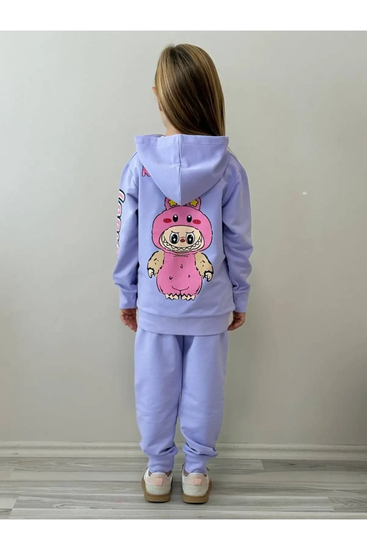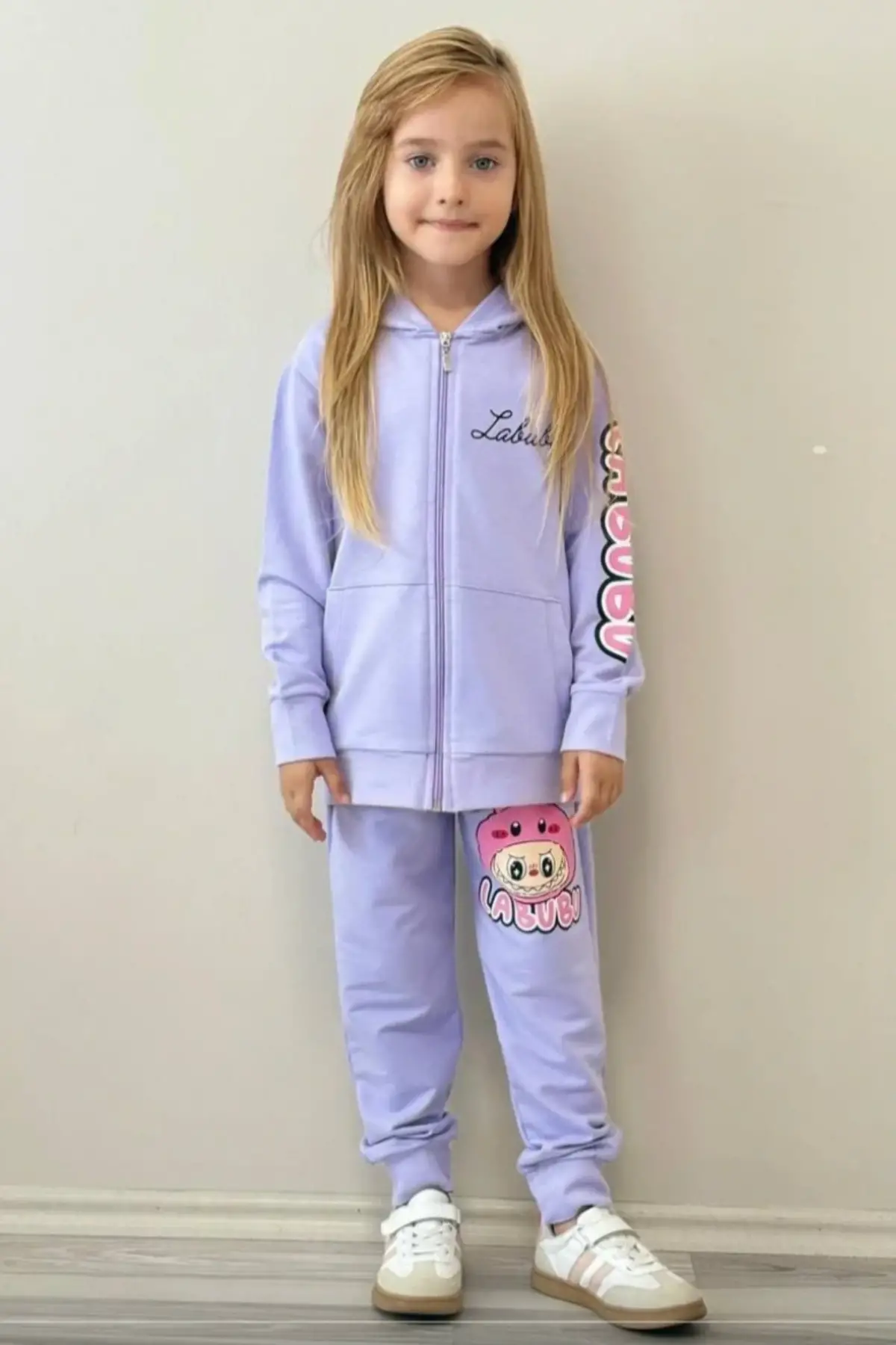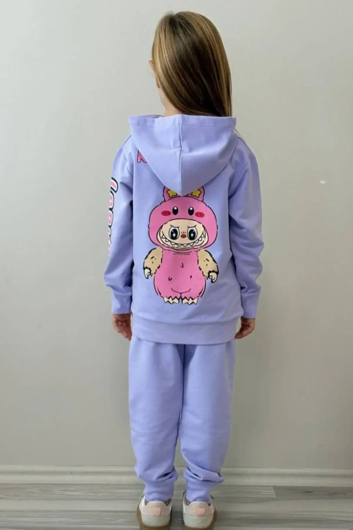 Kız Çocuk Labubu Baskılı %100 Pamuk Fermuarlı Lila Alt Üst Takım
