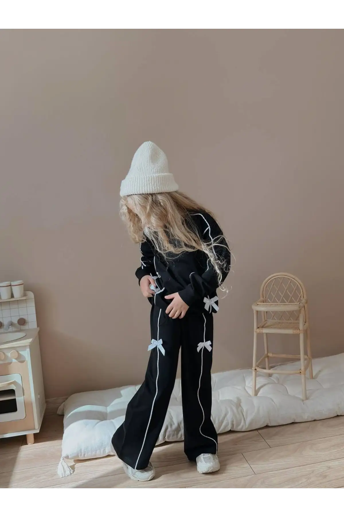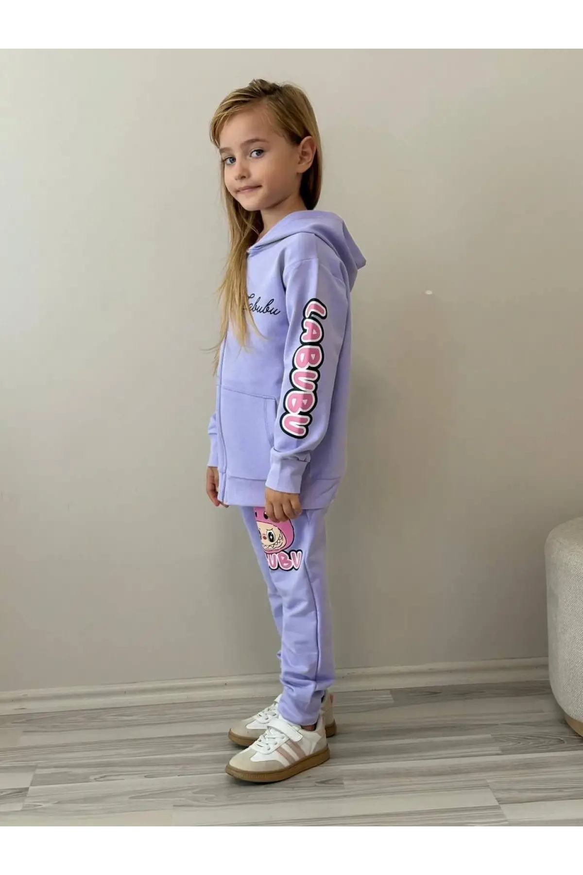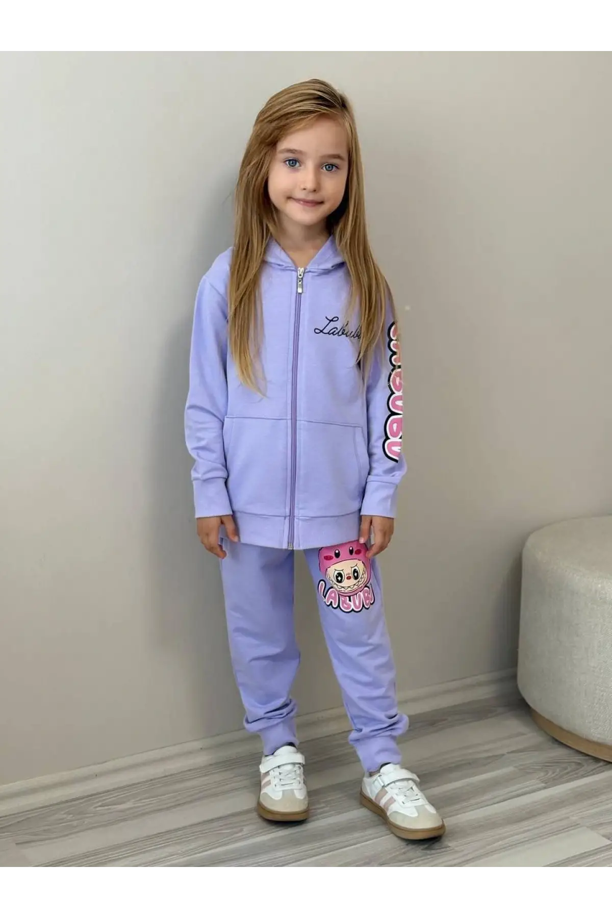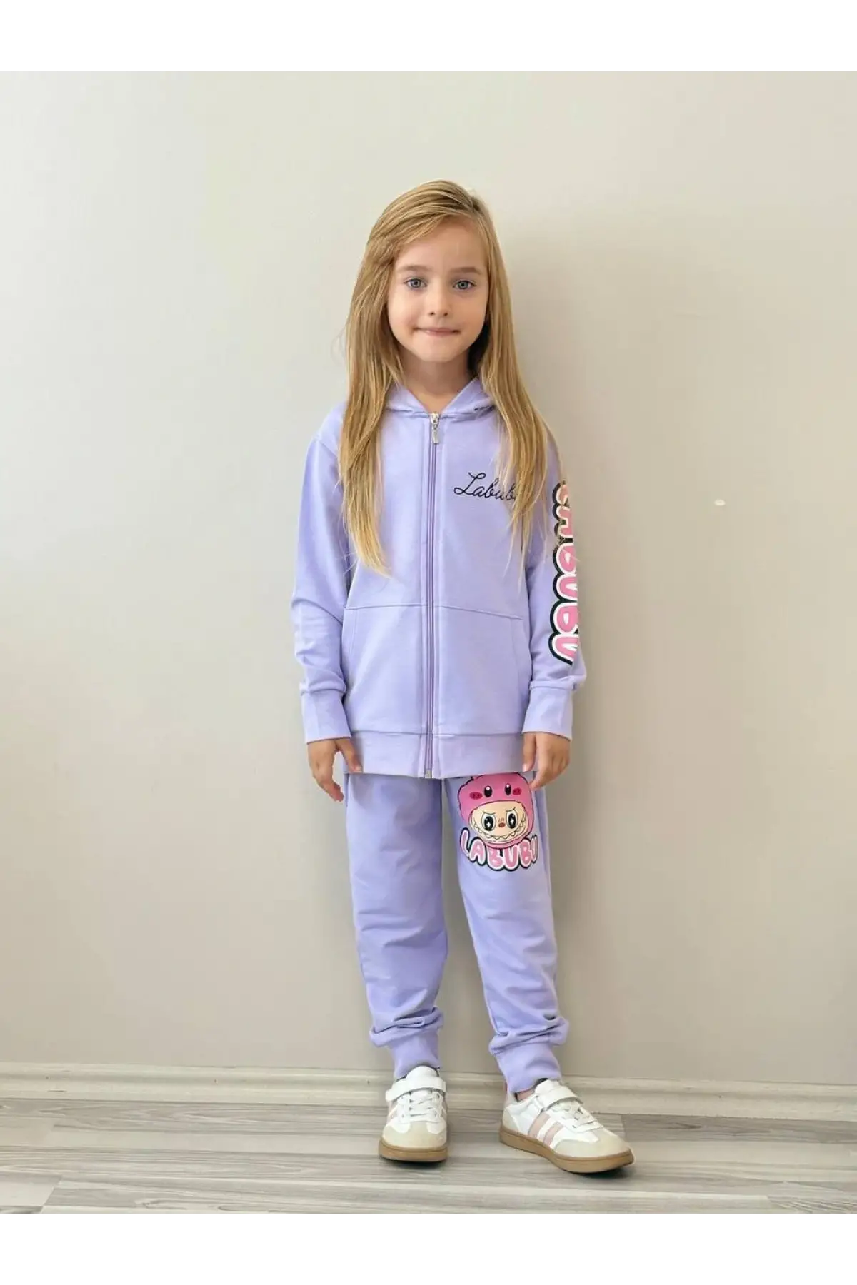 Kız Çocuk Labubu Baskılı %100 Pamuk Fermuarlı Lila Alt Üst Takım
