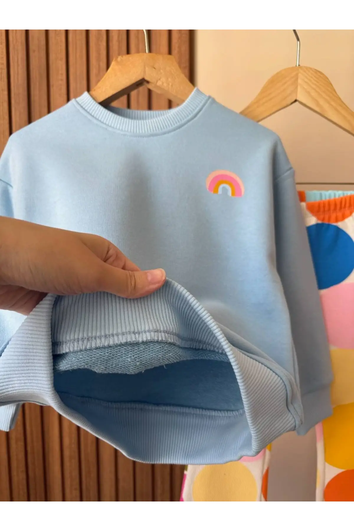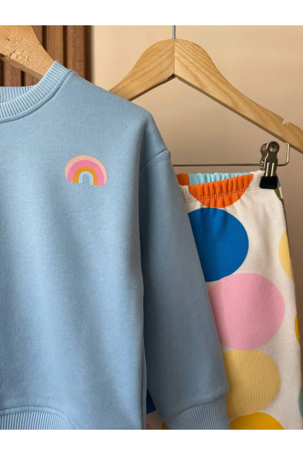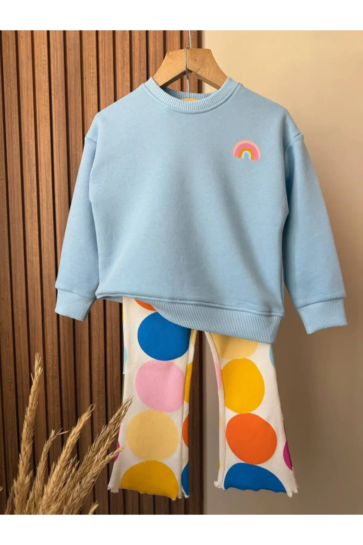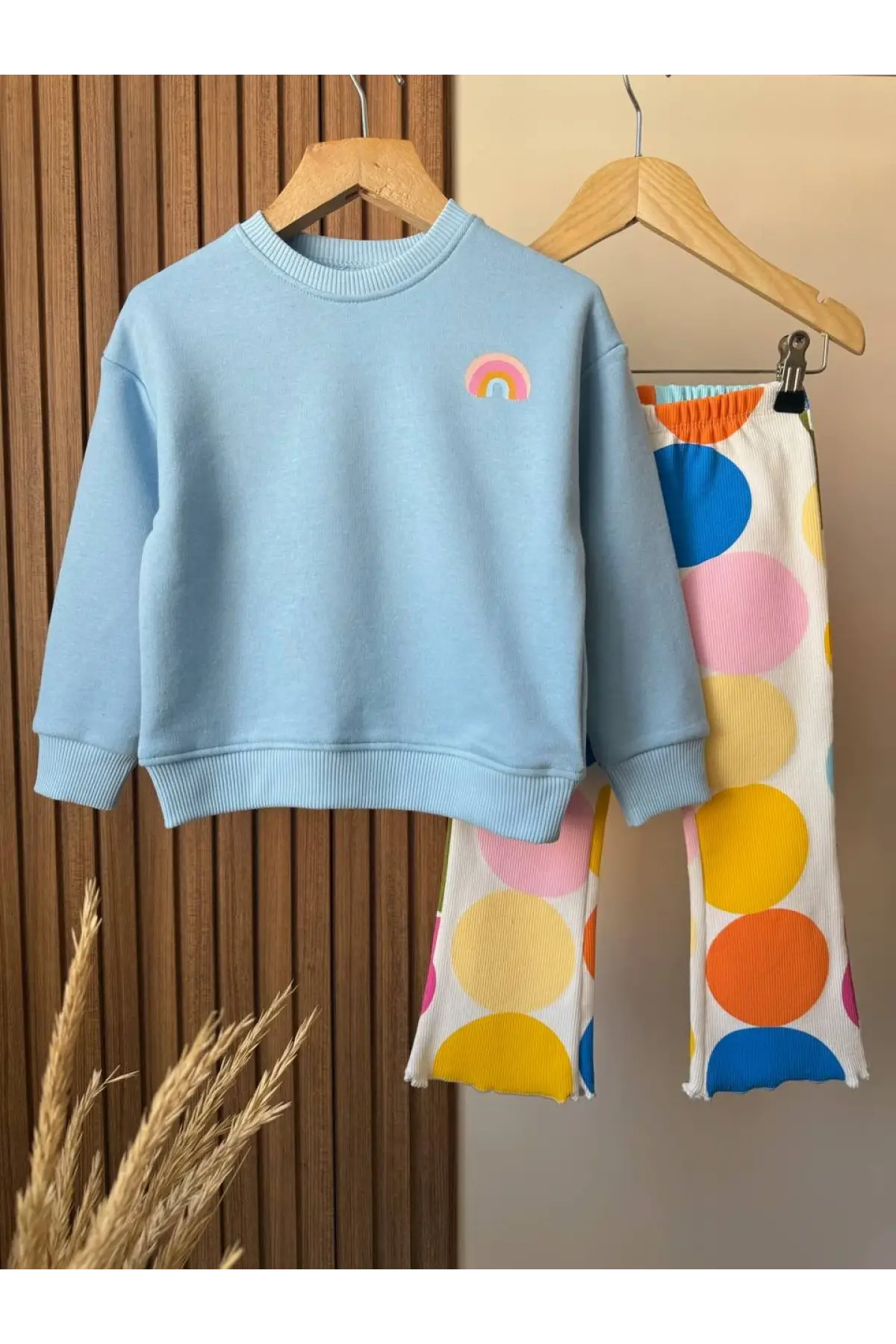 Kız Çocuk Gökkuşağı Temalı %100 Pamuk Taytlı Takım