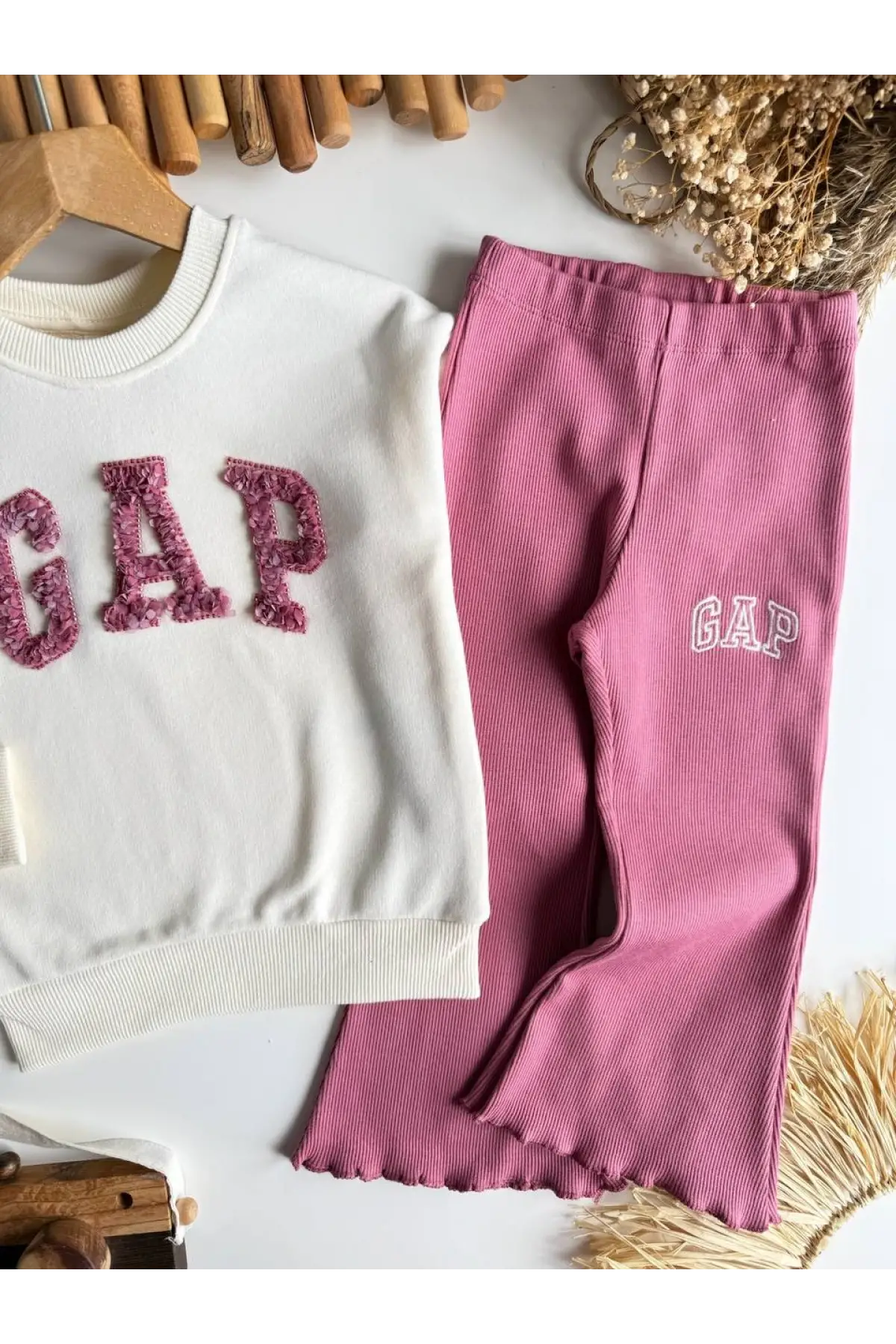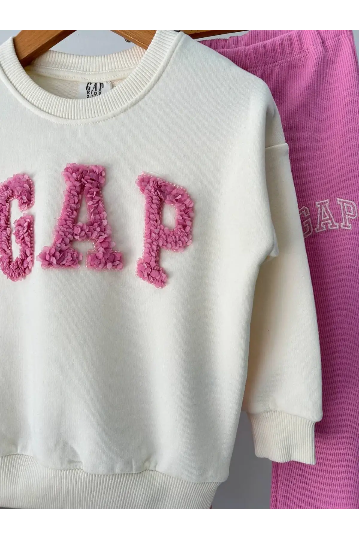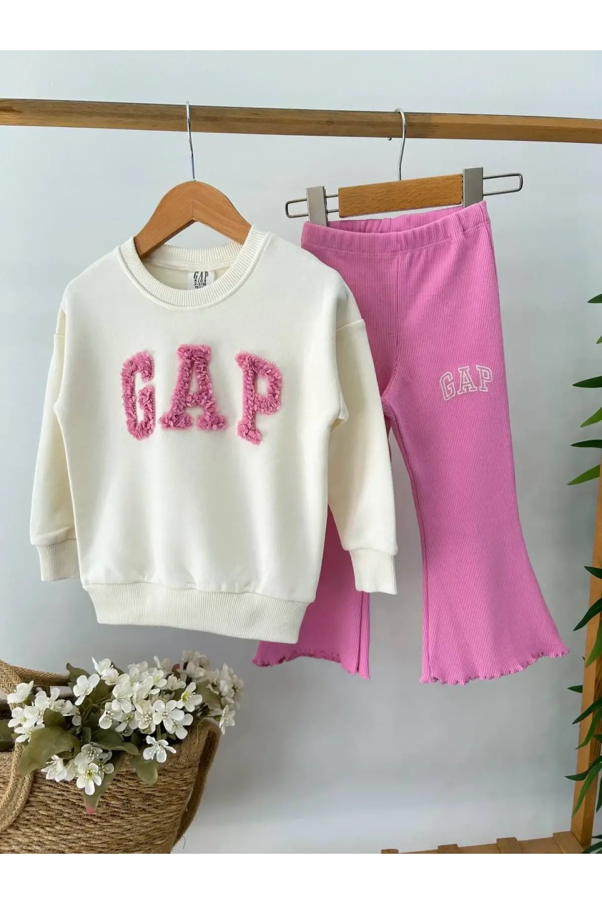 Kız Çocuk 3D Renkli Çiçek İşlemeli %100 Pamuk Takım