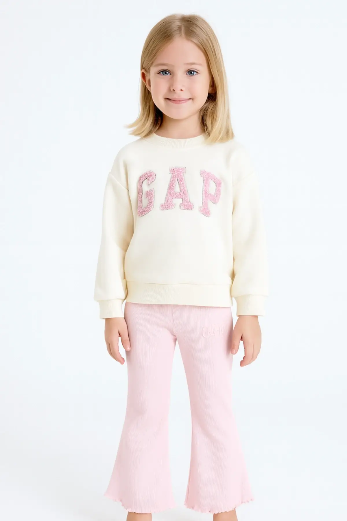 Kız Çocuk Fırfır Detaylı Krem Sweatshirt