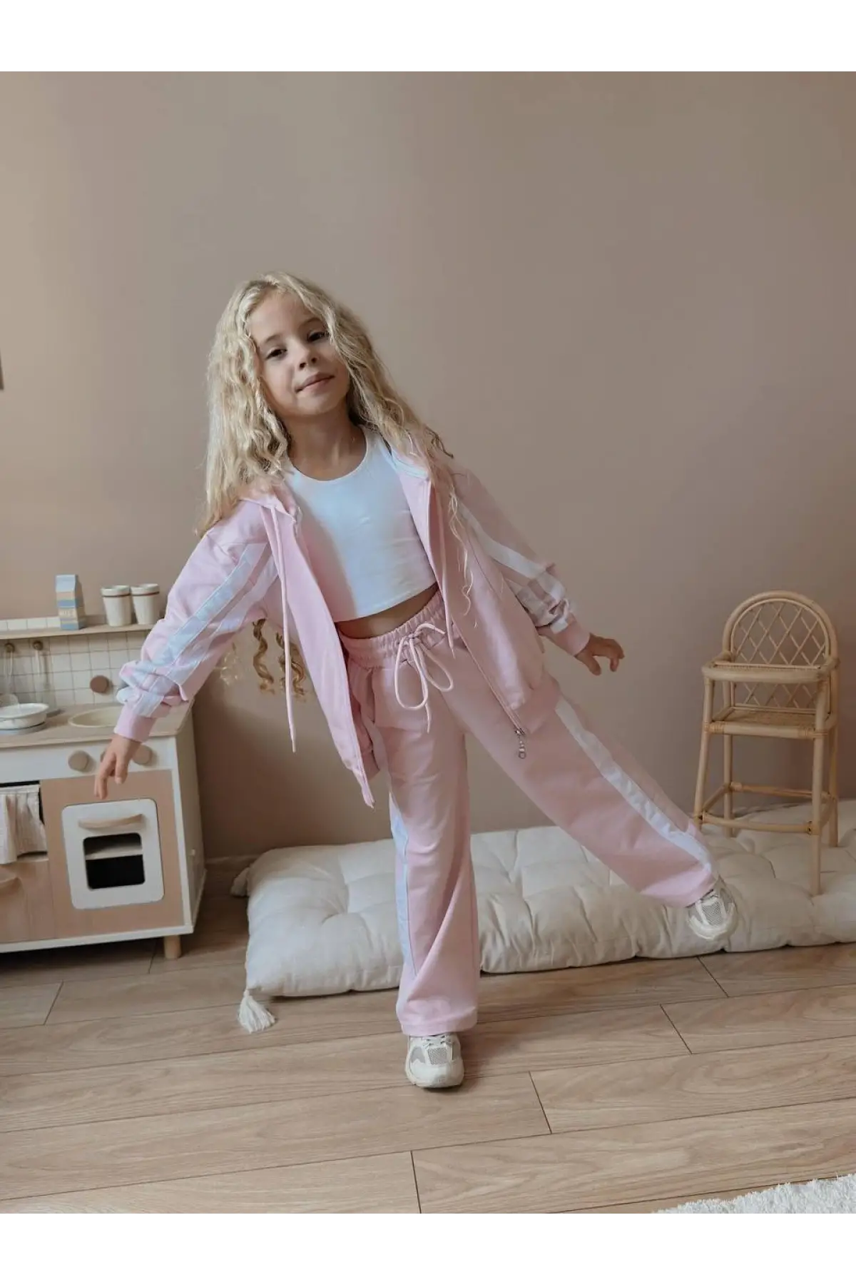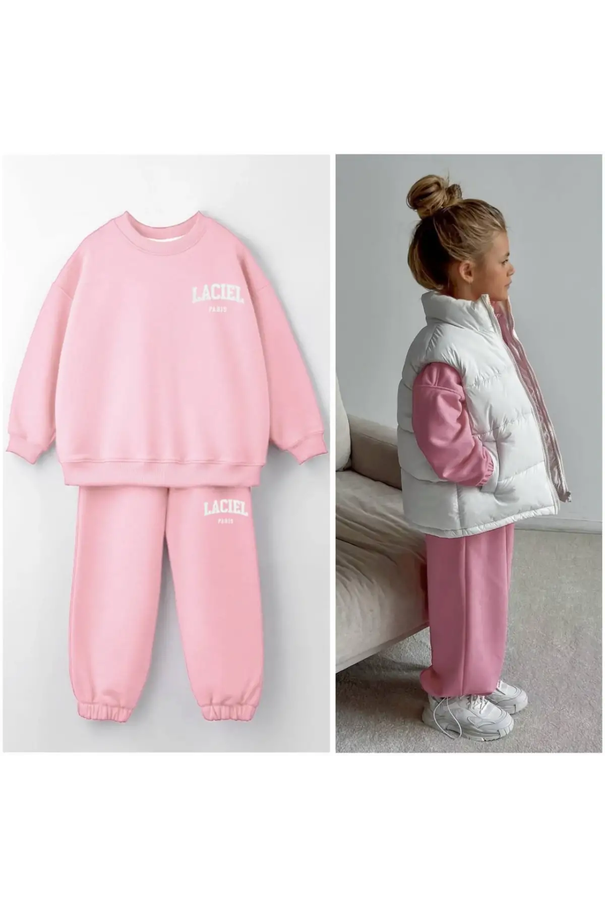 Kız Çocuk Bisiklet Yaka Pembe Alt-Üst Takım