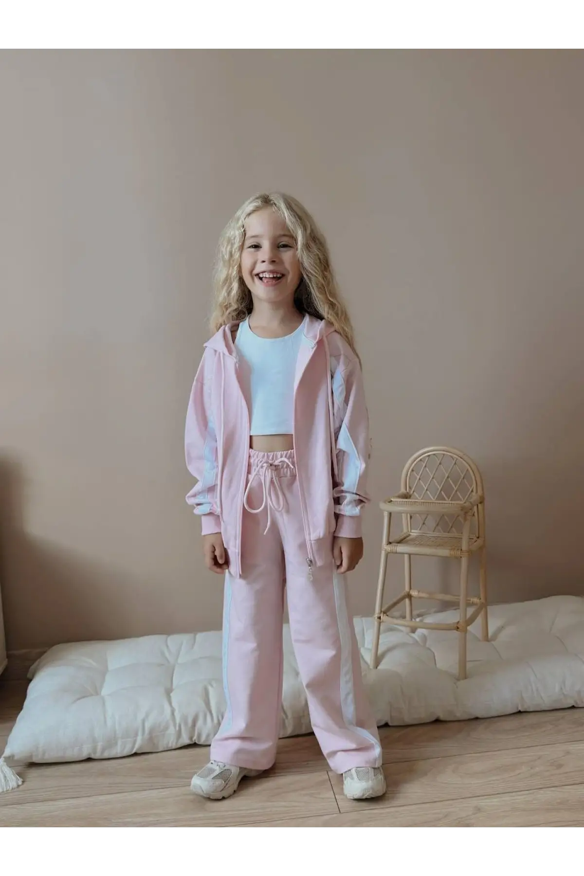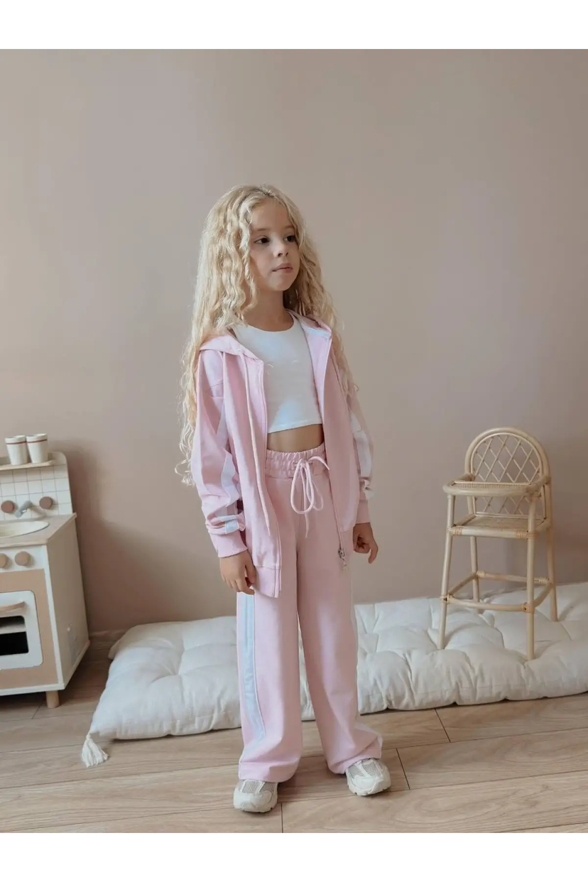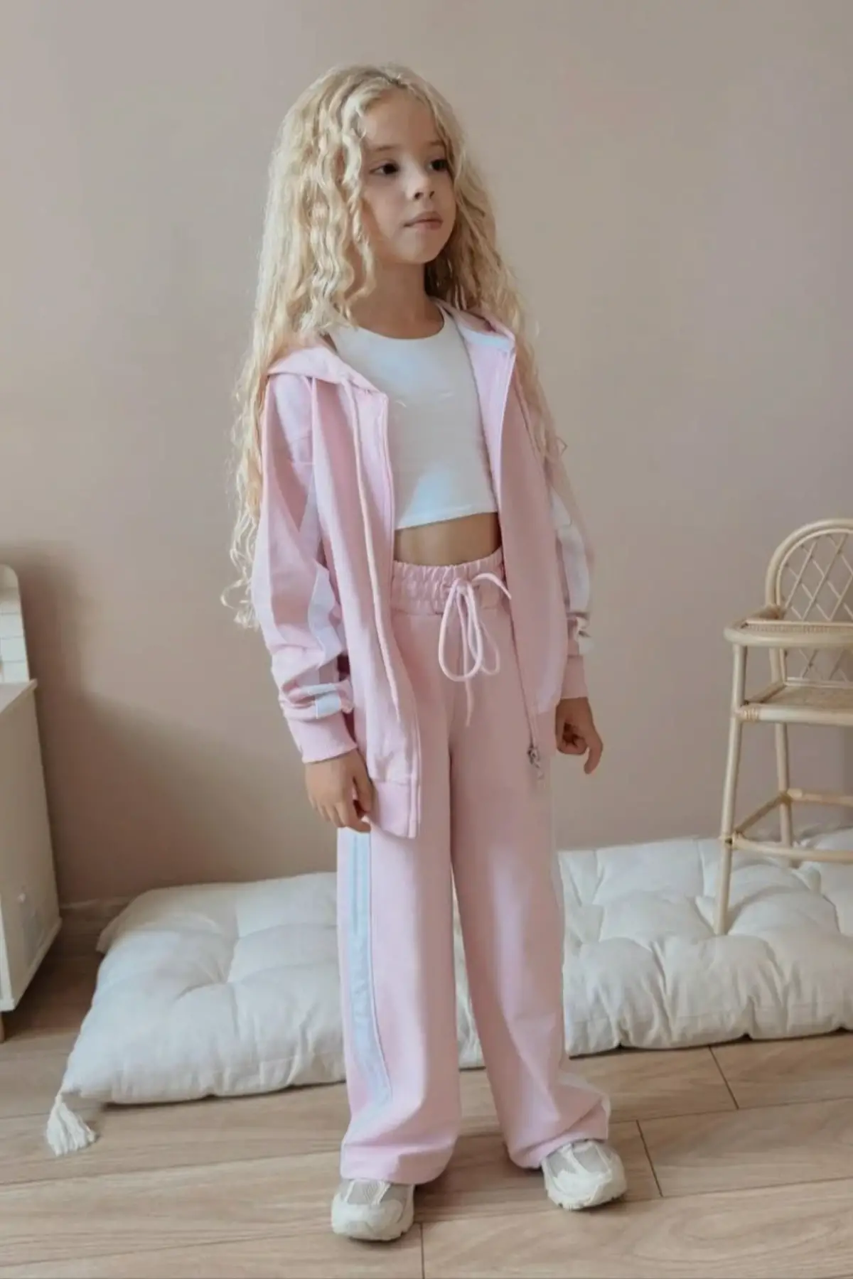 Kız Çocuk Çizgili Kapüşonlu %100 Pamuk Alt Üst Takım