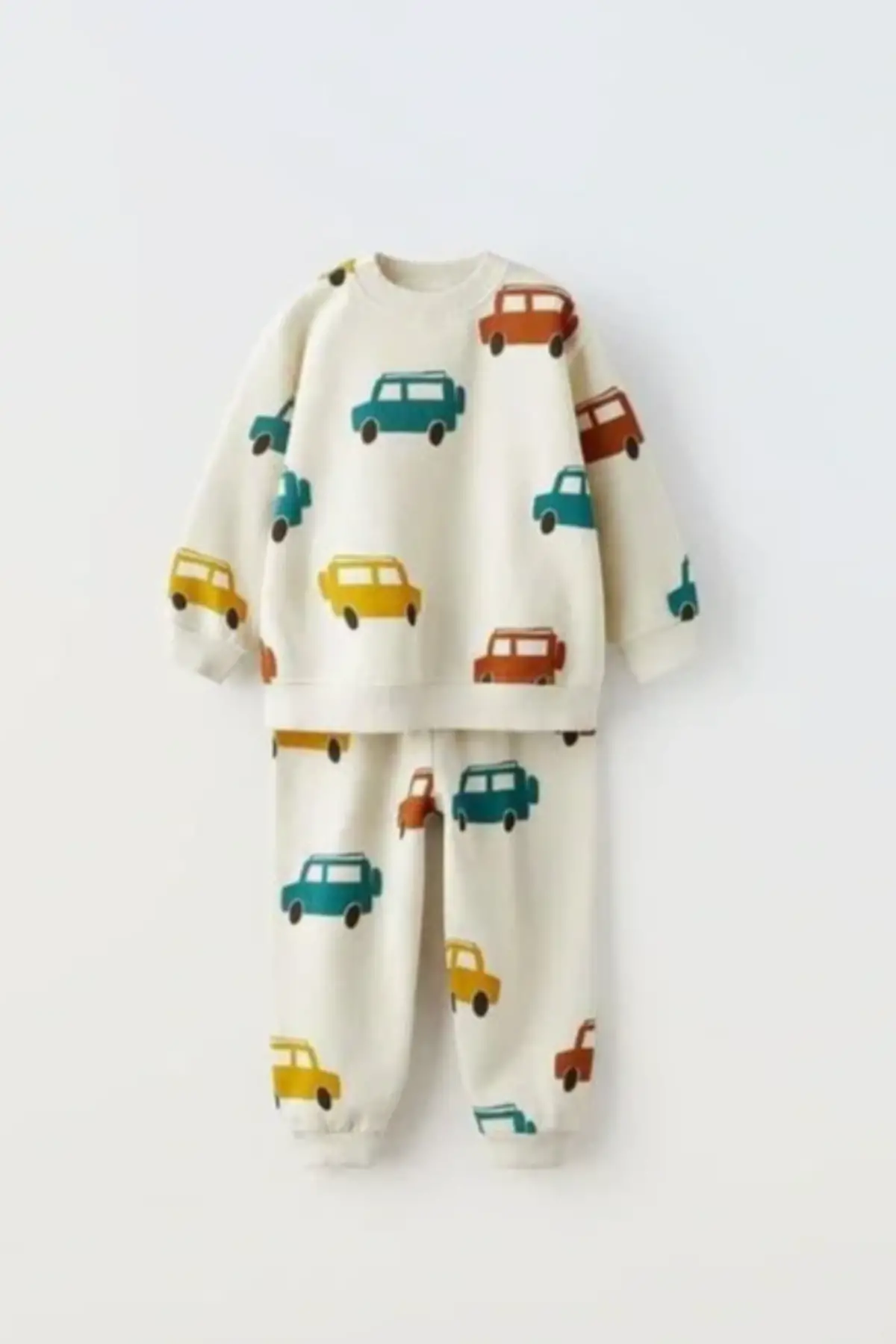 Unisex Çocuk Renkli Araba Baskılı %100 Pamuk Takım