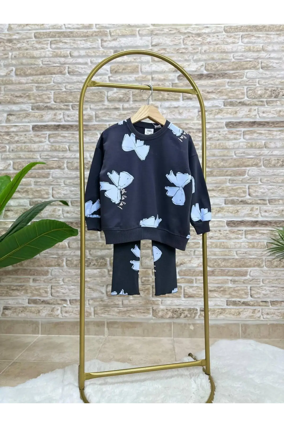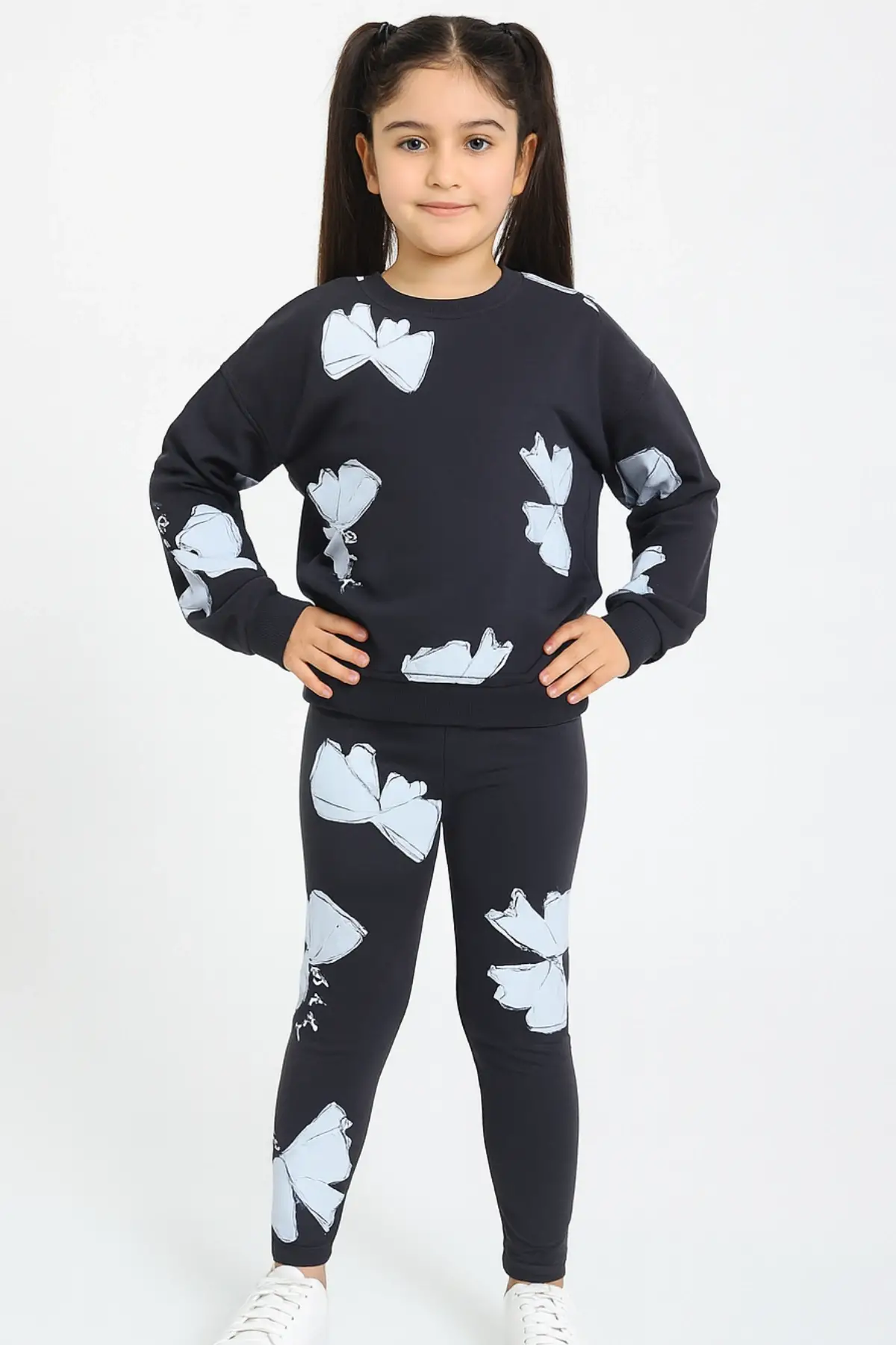 Kız Çocuk Kurdele Detaylı Taytlı Alt-Üst Takım