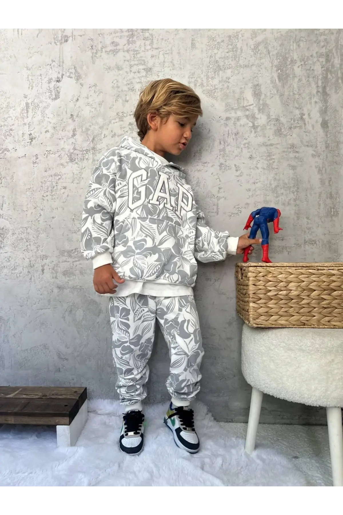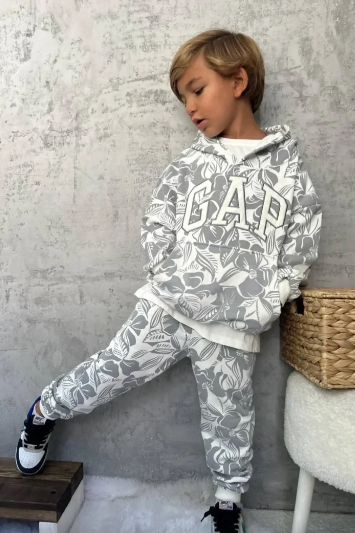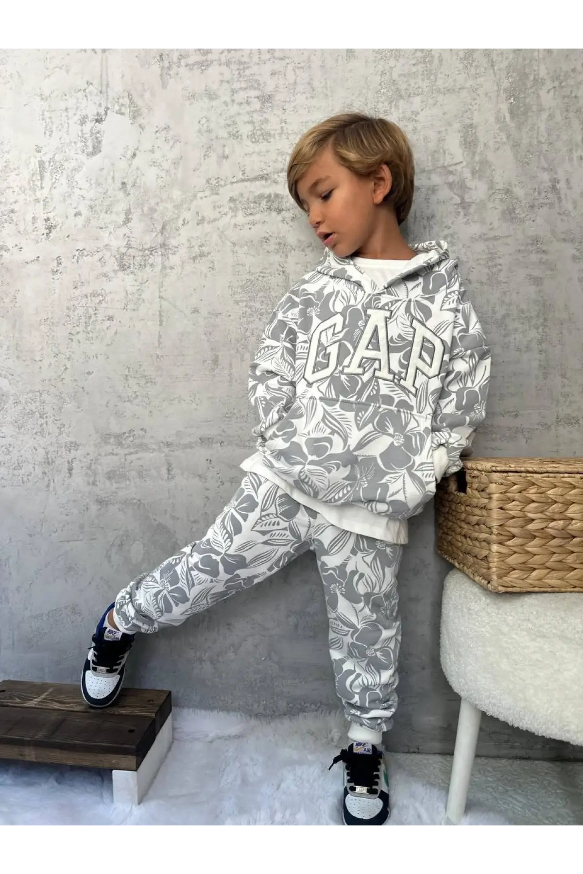 Çocuk Unisex Çiçek Desenli Kapüşonlu Alt-Üst Takım