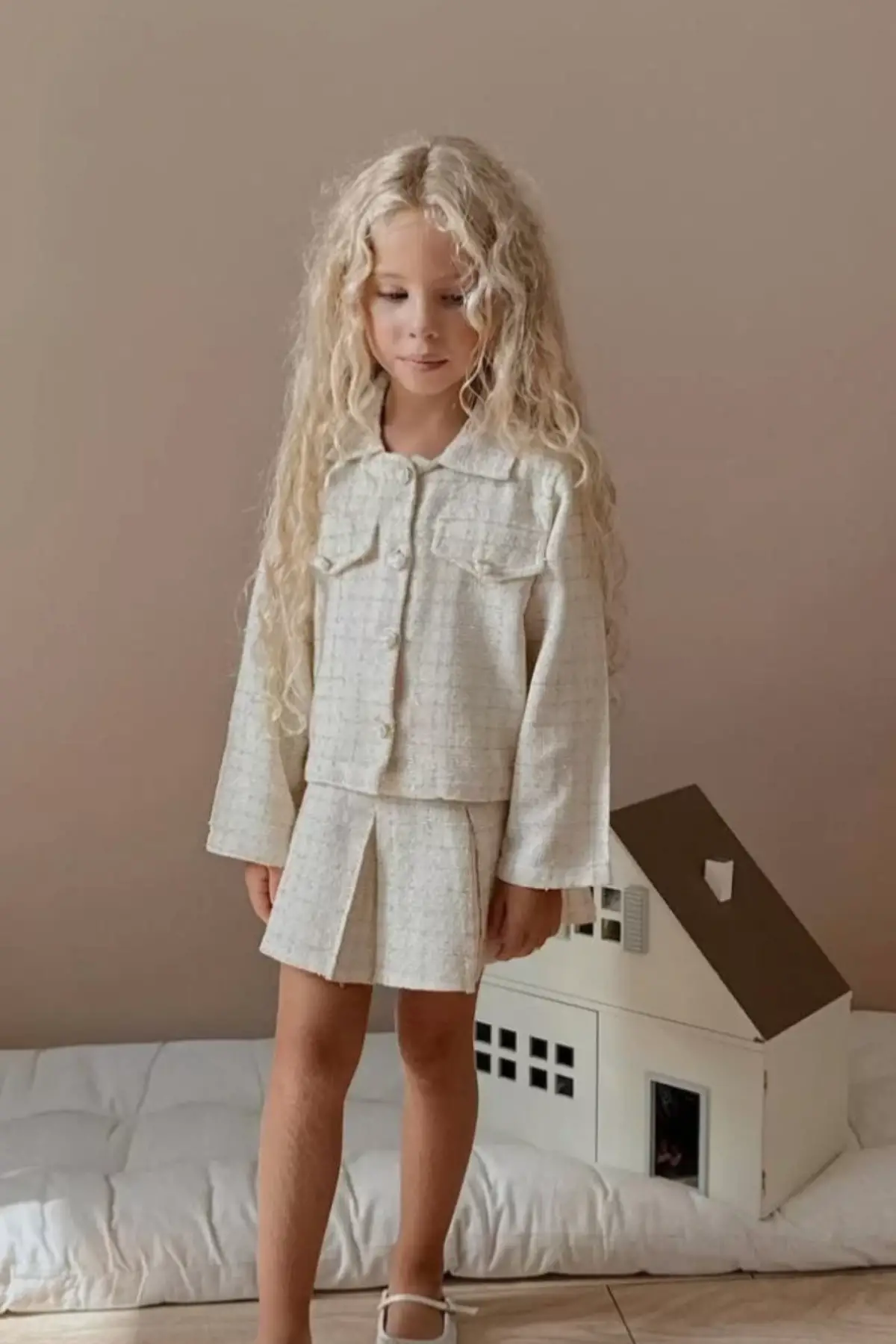 Kız Çocuk Krem Ceket Etek Alt-Üst Takım